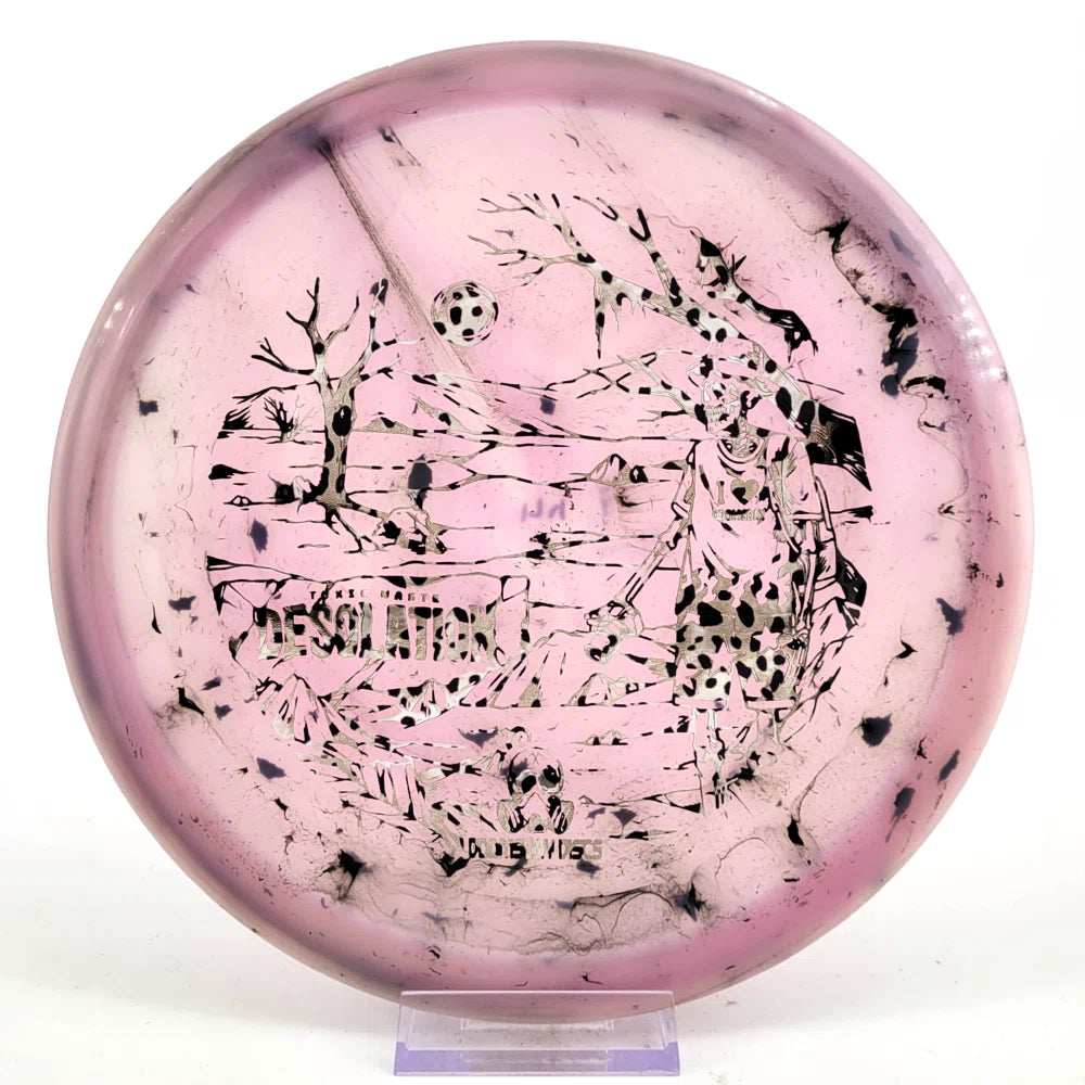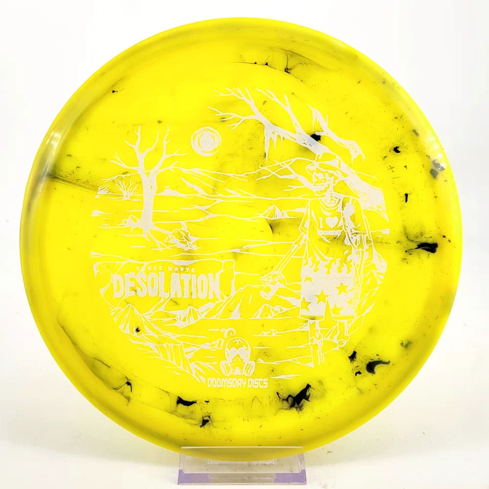 The Desolation, from Doomsday Discs, is an all-purpose, overstable midrange. It has a straight flight that finishes with a moderate, consistent fade. It has smoothed-rim edges and a semi-deep rim to make it very comfortable for throwing and a go-to for seasoned players. It is part of the Catastrophic Line, and made in the USA for high performance that will last to the end of the world (which may come sooner rather than later).