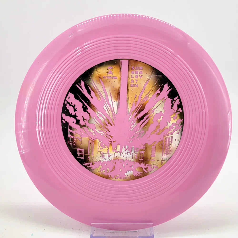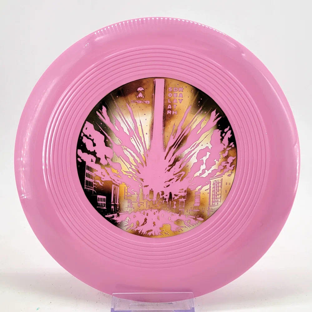 The Solar Death Ray by Doomsday Discs is a one-of-a-kind fairway driver that features flight rings on the top of the flight plate. Those grooves provide an extra grip and unique texture when holding and releasing the disc. It has a neutral flight that will take the path upon which the thrower releases it, providing some understable turn before a nearly equal end-fade. Though the Solar Death Ray will do your bidding on the disc golf course, it may likely signal the destruction of modern civilization as we know it.
