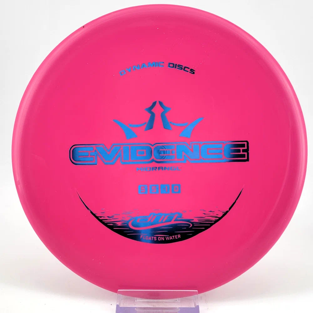 The Evidence is a slightly understable midrange disc that is very controllable. Where the Verdict and the Truth take care of your straight to overstable midrange needs, the Evidence will handle the other side of the spectrum. It will hold the anhyzer angle through a full glide while slowly coming back to a flat flight. The Verdict, Truth, and Evidence feel very similar in the hand with complementary flights to carve around any obstacle you face. When your scores are accusing you of bad shots, you need the Evidence to set the record straight.