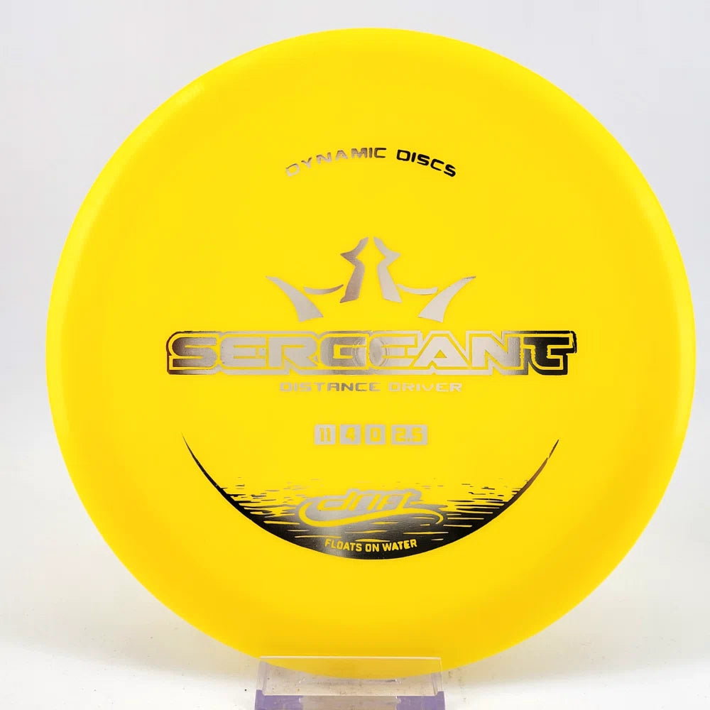 The Sergeant is an excellent hybrid-style distance driver - like a faster Getaway or a slower Raider. It's perfect for those shots that a fairway just won't reach but you don't want to power down on a distance driver. The Sergeant forms a bridge between fairway drivers and distance drivers with a comfortable rim for both backhands and forehands and enough stability to work out of a turn, but not so much that it will always dive left at the finish. Pick up a Sergeant and experience full command of your drives!