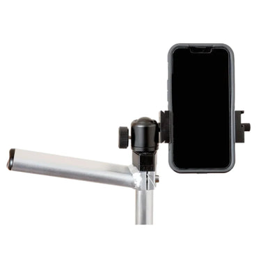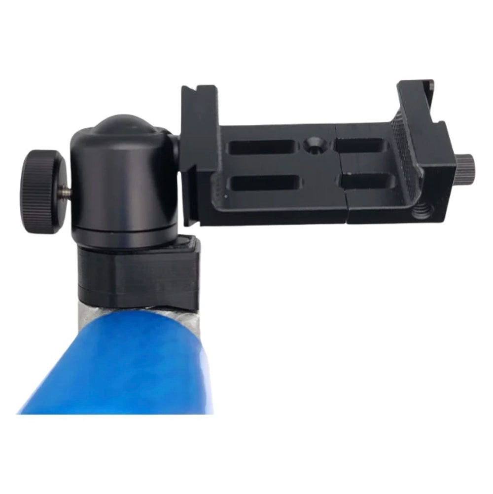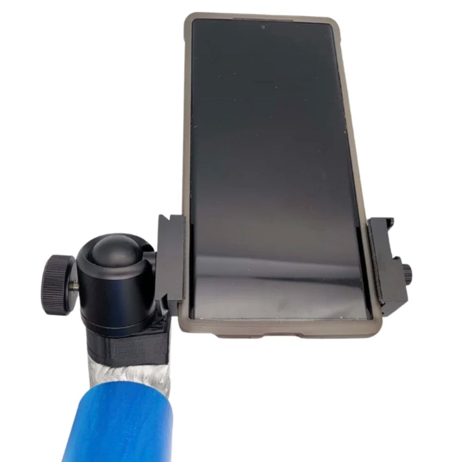 The ZÜCA Cart Stud and Phone Mount setup by Sector1 3D is a beast! It starts with a custom made base that has a standard 1/4 20 stainless steel screw mount. That alone is pretty awesome, you can attach so many different photo mounts to it. It's so versatile! Next, we added a beefy ball mount that allows you to swivel your phone to whatever position you like. With a twist of the knob you can go from portrait to landscape mode, and every angle in between. Finally, all this leads up to the phone mount itself. This aluminum mount is stout and accepts phones from 2.5" - 3.5" wide, making it perfect for phones with or even without a case (although we highly recommend a case).