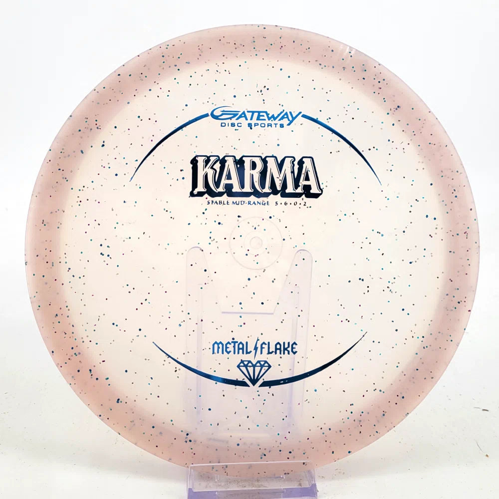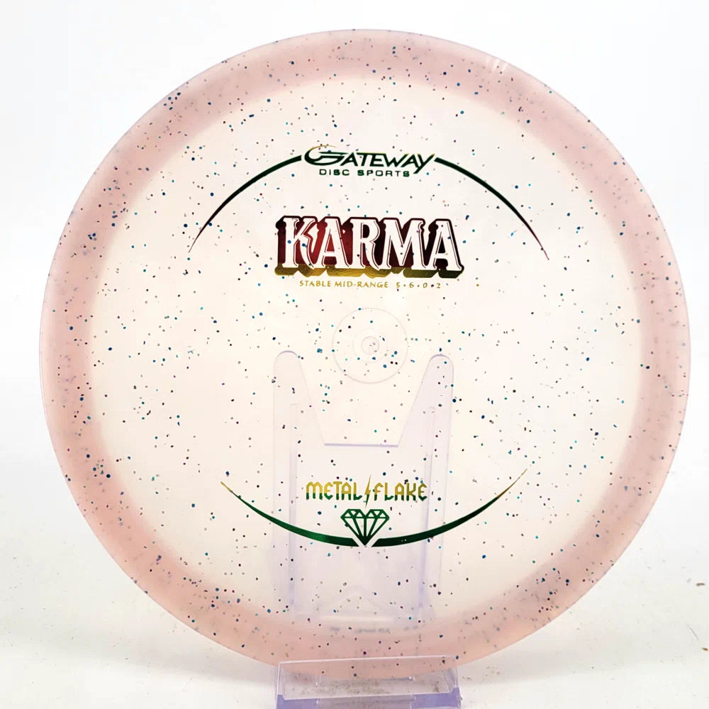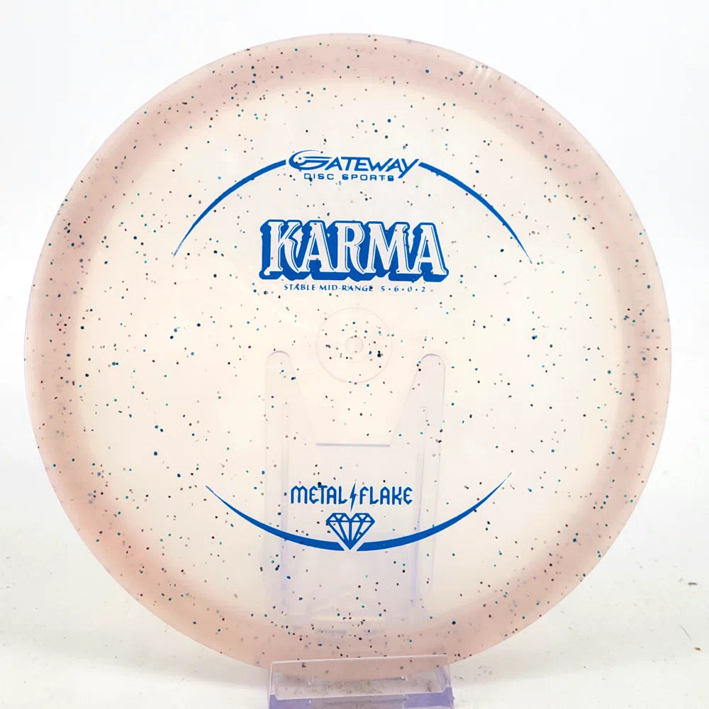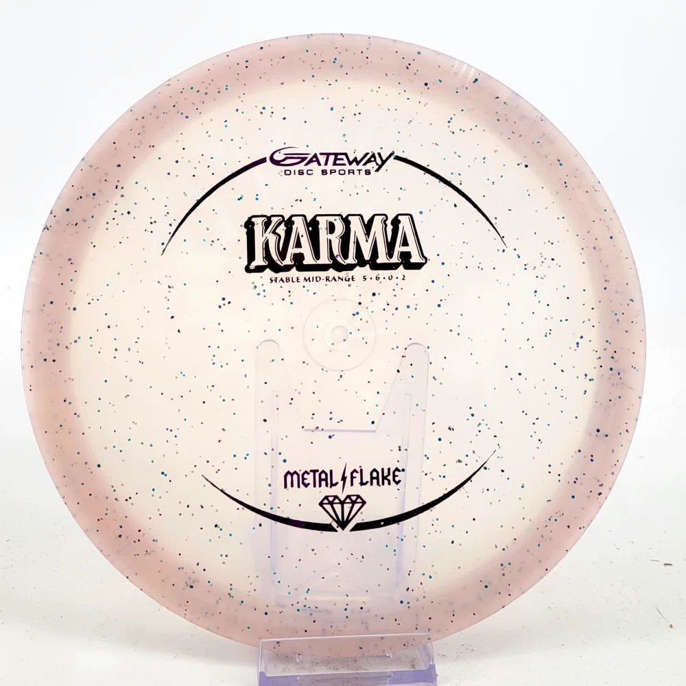The Karma is one of Gateway's slightly overstable mid-range discs with a wide diameter. This mid is more overstable than the Element, but less stable than the Warrior. This disc is great for windy conditions and sidearm throws.