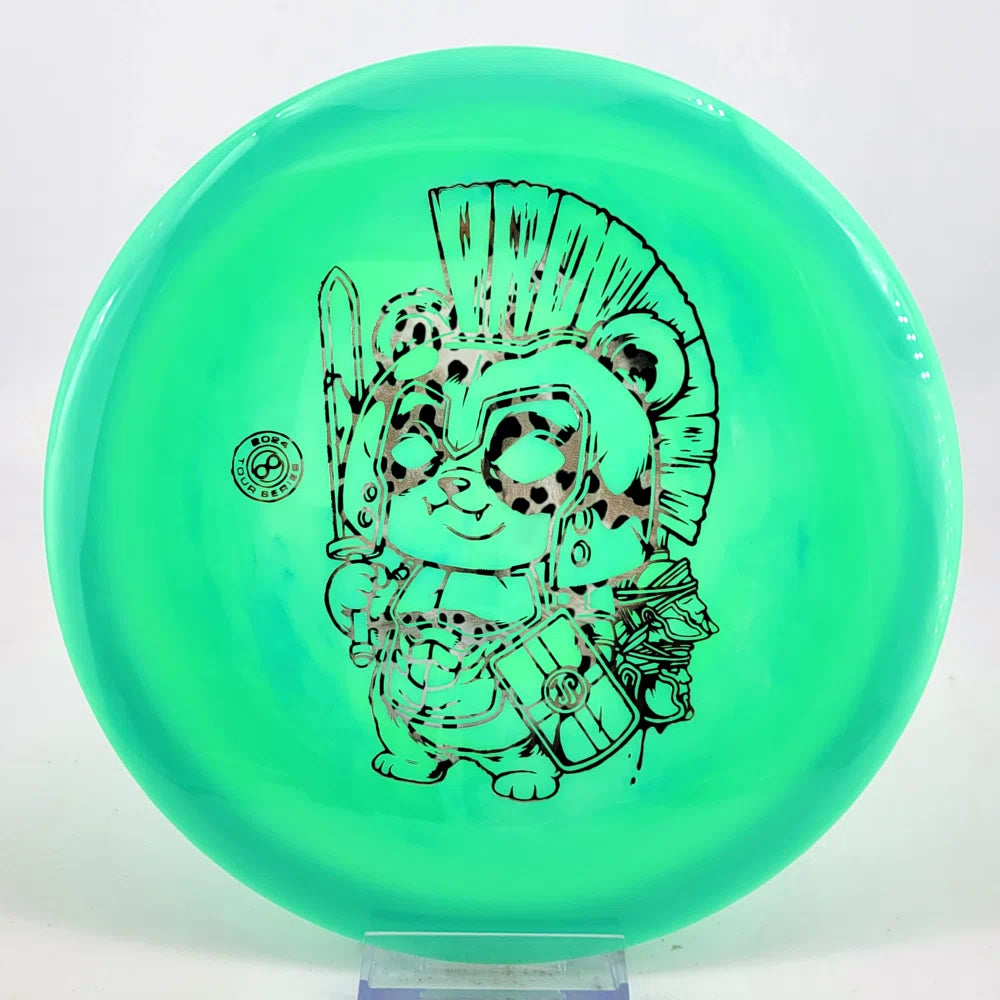 We're excited to present this year's Signature edition CENTURION supporting Team Infinite player James Proctor. This year his signature edition features his panda bear ready for battle, wielding a sword and shield with his "JP" logo. Again, your customers will notice this stamp on the shelf and the Centurion is a fairway driver that any player can handle for straight shots.