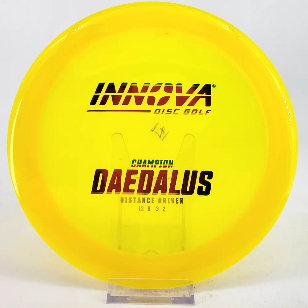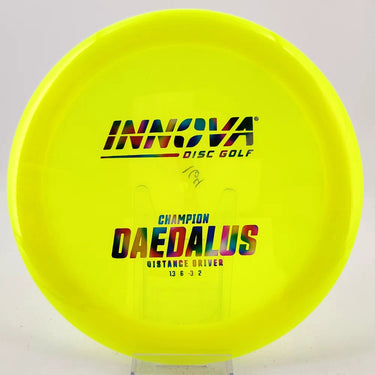 The Daedalus is a new maximum downwind distance driver crafted for less powerful players, and doubles as a long distance roller for more advanced players. The Daedalus likes to be thrown low, make sure it doesn't soar too close to the sun.