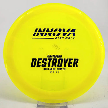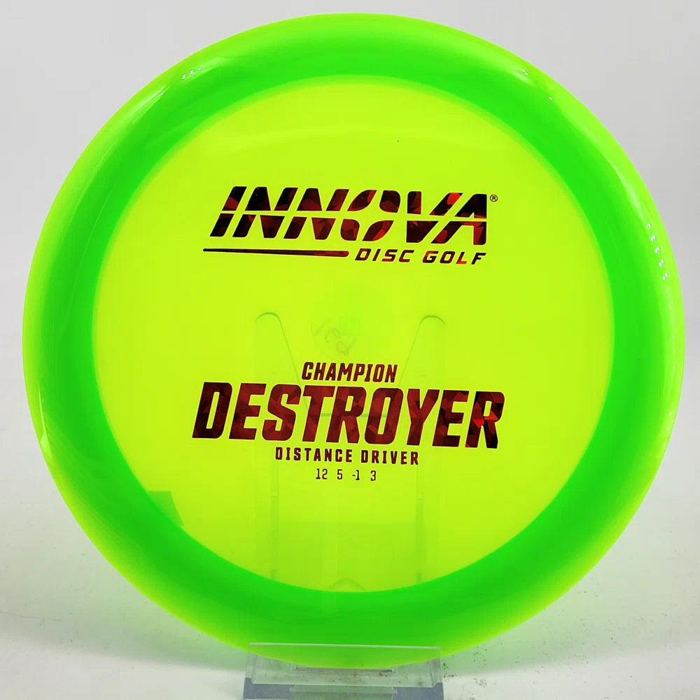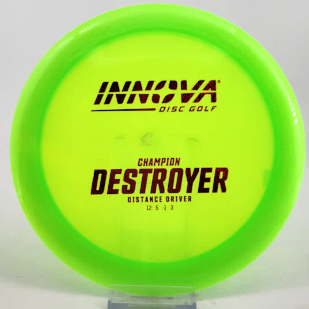 The Destroyer is a very fast stable long distance driver. This disc is much like a faster Wraith, but with a little more high and low speed stability. Great disc for sidearm throwers and those with lots of power. Can handle headwinds and throws with off axis torque. Not suggested for beginning players.