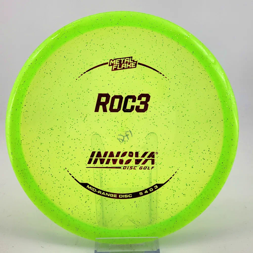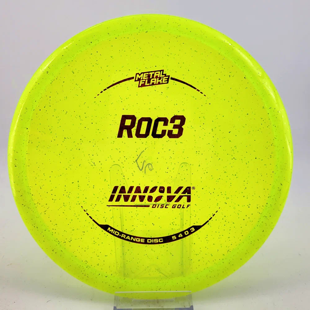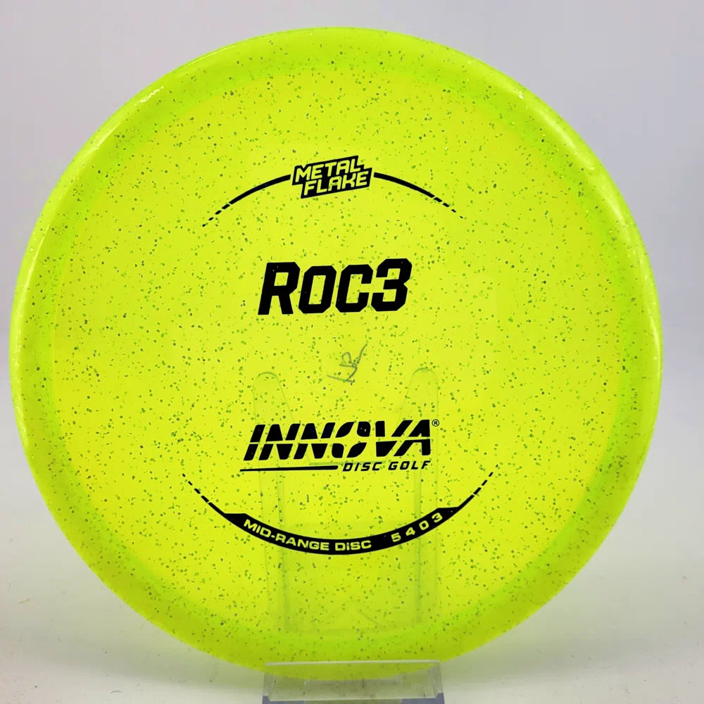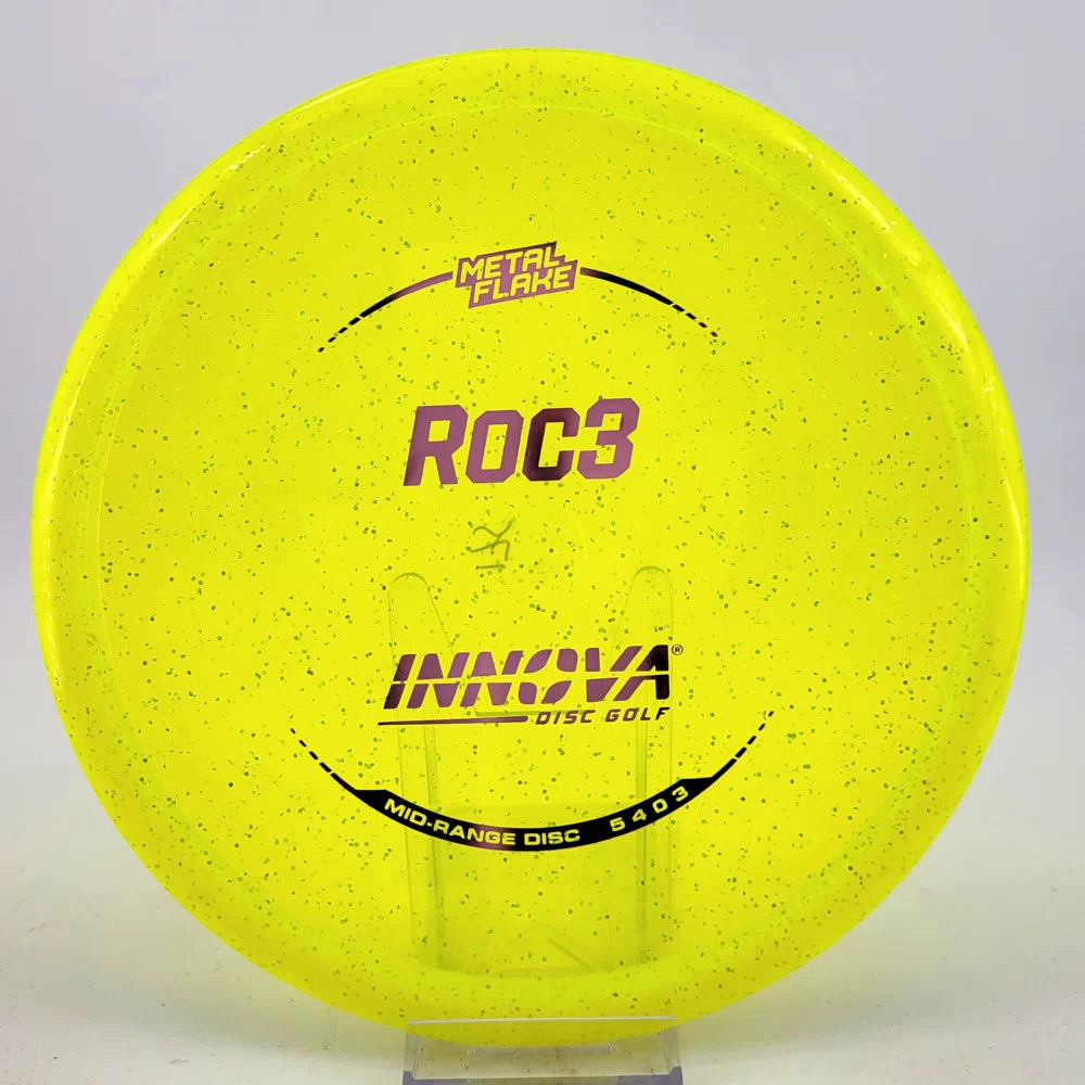 About the plastic: Metal Flake is based on our Champion line with the addition of sparkling flakes. These discs also retain their original flight characteristics for an extended period of time and look great doing it. These are typically the most overstable plastic that Innova makes.