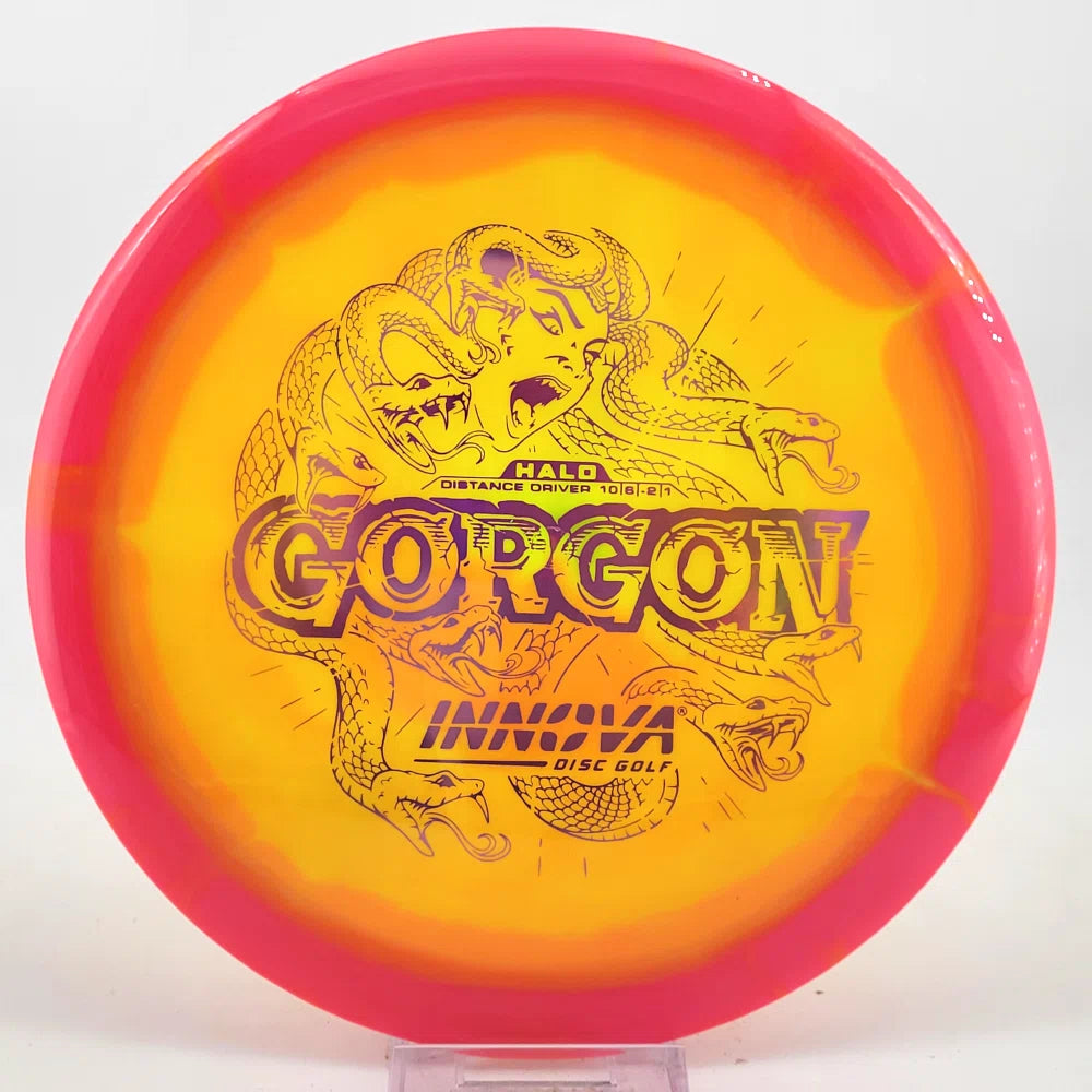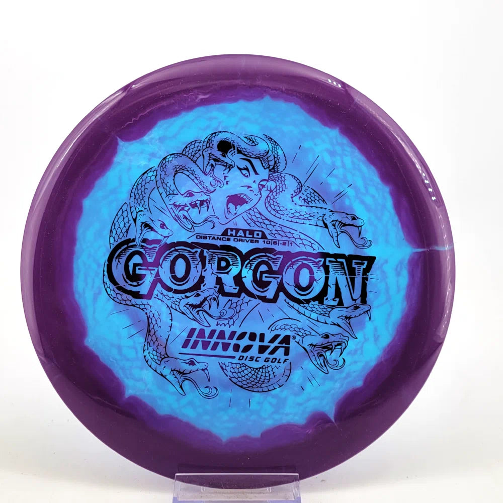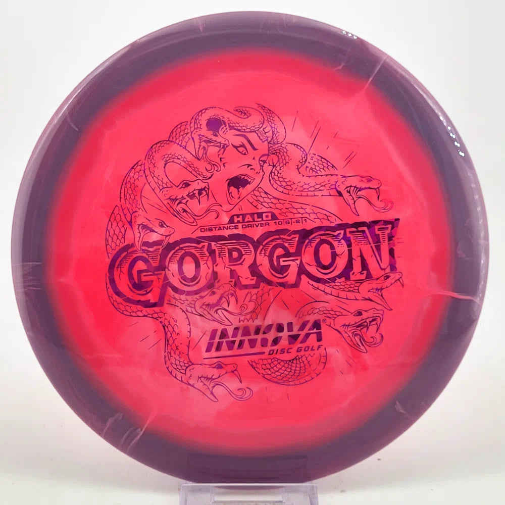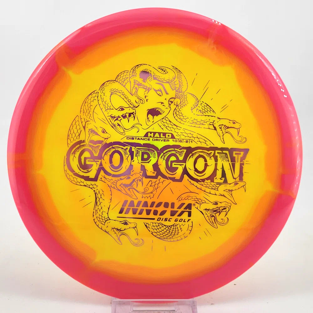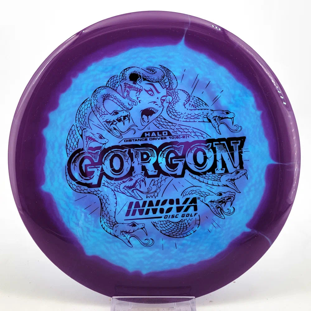 Introducing the Gorgon, a disc that merges the feel, precision, and ease of a Fairway Driver with the reach of a Distance Driver. Its flight? Arrow-straight glide with a steadfast fade, mirroring the Gorgon's unwavering gaze. Experience the legend—drive like a deity, conquer the course.