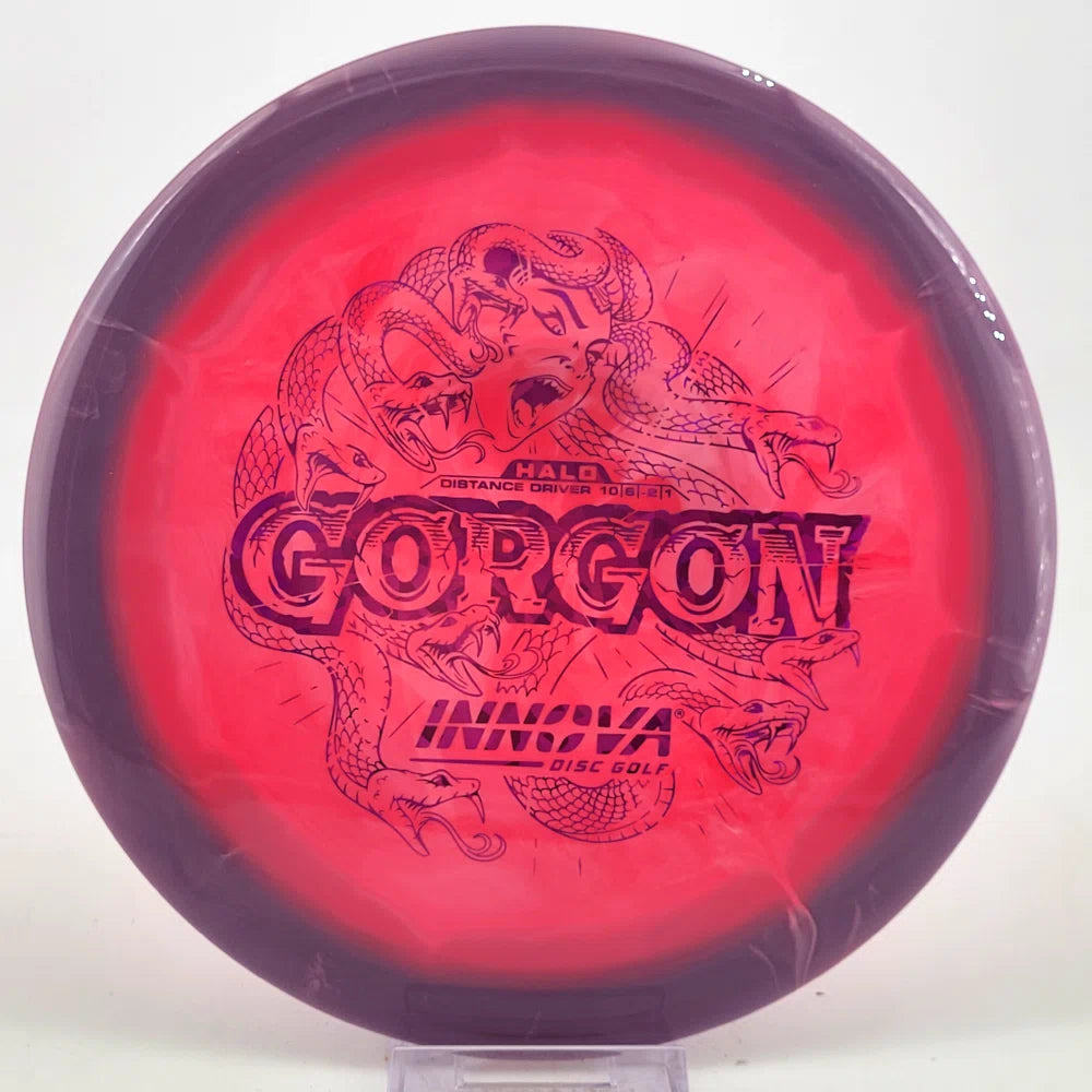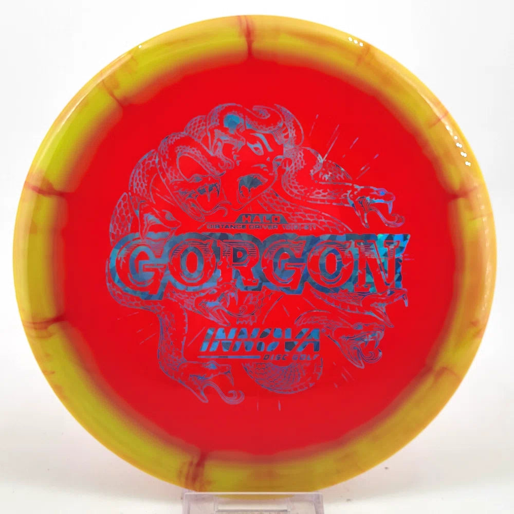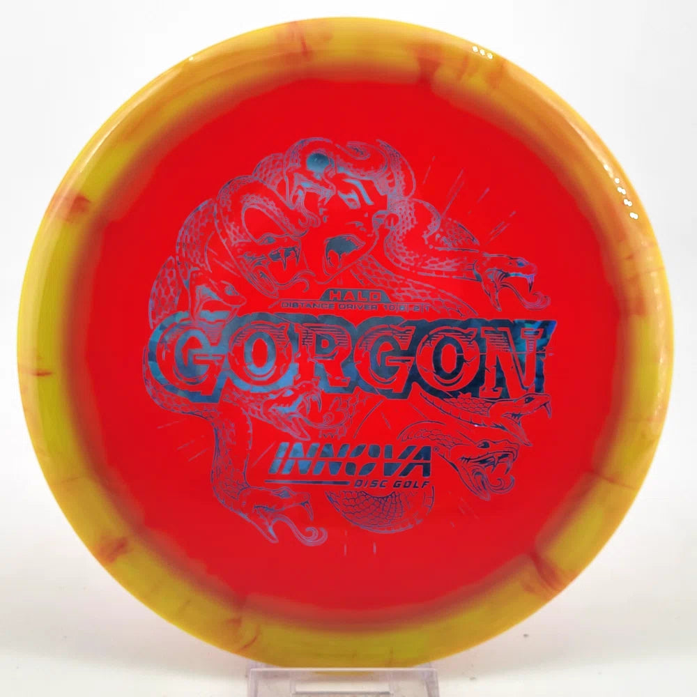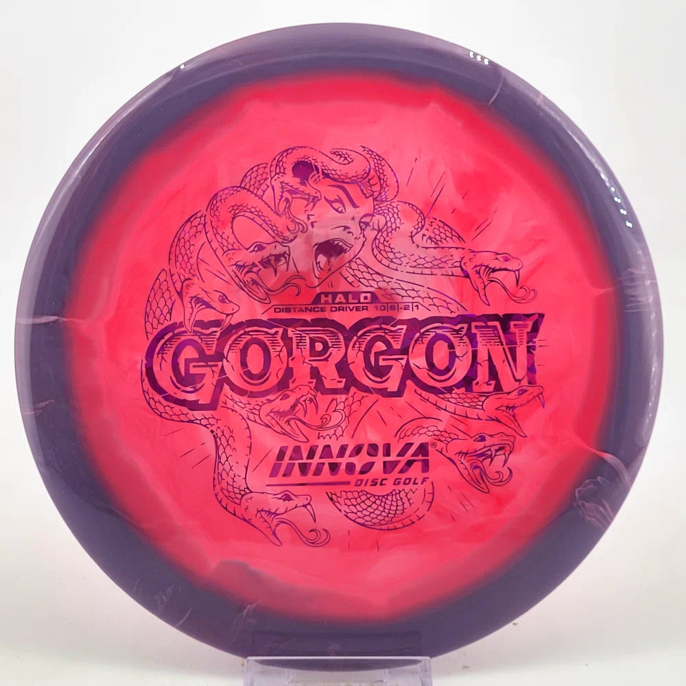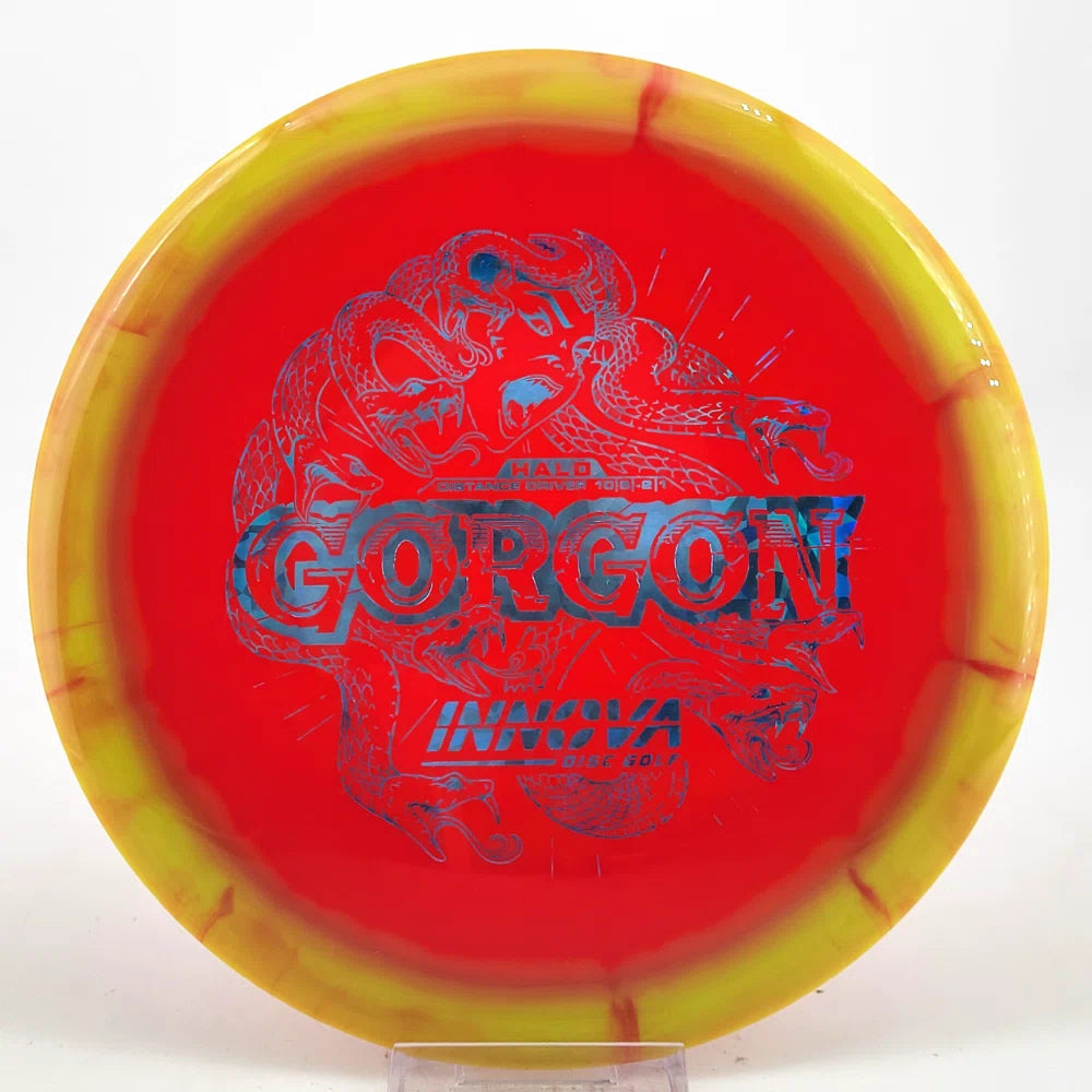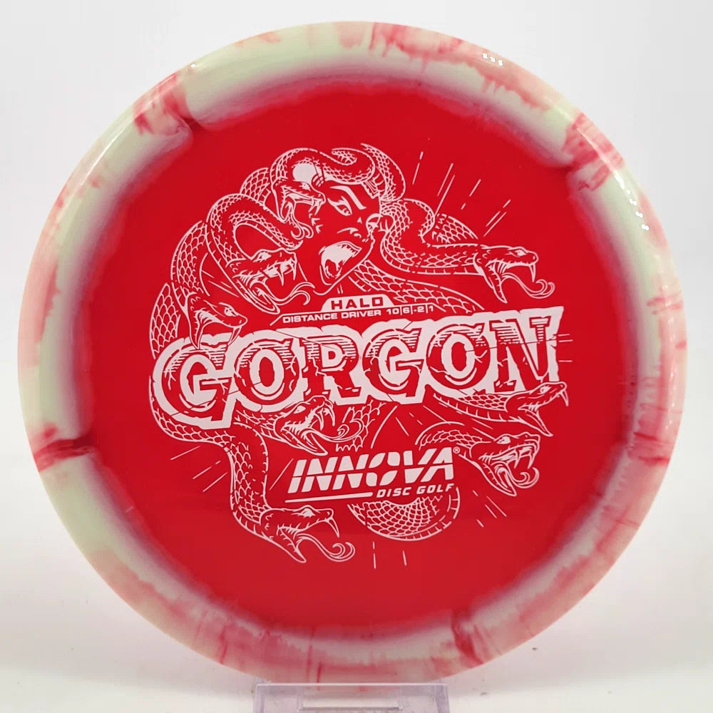 Introducing the Gorgon, a disc that merges the feel, precision, and ease of a Fairway Driver with the reach of a Distance Driver. Its flight? Arrow-straight glide with a steadfast fade, mirroring the Gorgon's unwavering gaze. Experience the legend—drive like a deity, conquer the course.