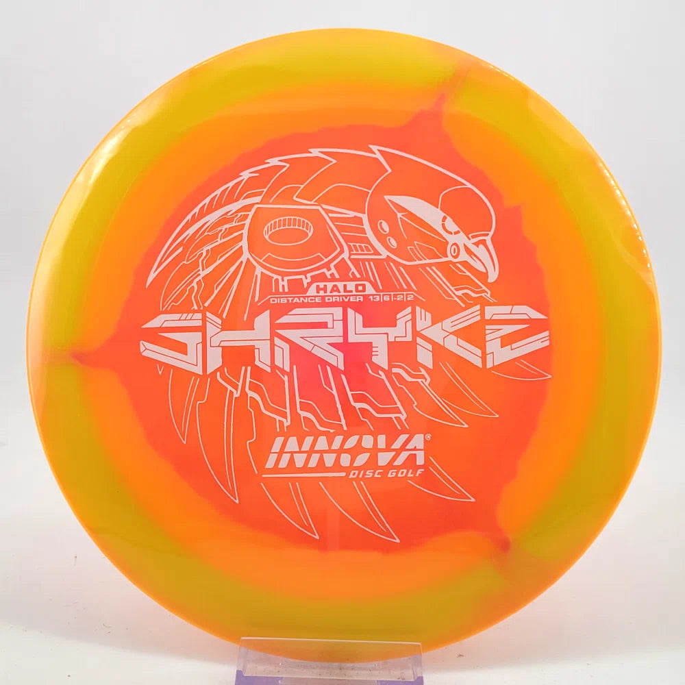 About the plastic: Halo is a one of the most premium and sought-after plastics on the market. Typically this is the most overstable plastic in Innova's lineup, and it is extremely durable and has a great grip. Halo is the very similar to Star in feel, except it is the far more beautiful with its multi-color swirls and 'halo' effect.