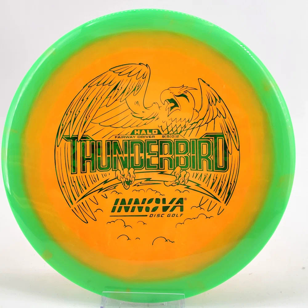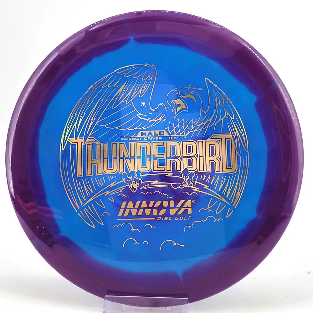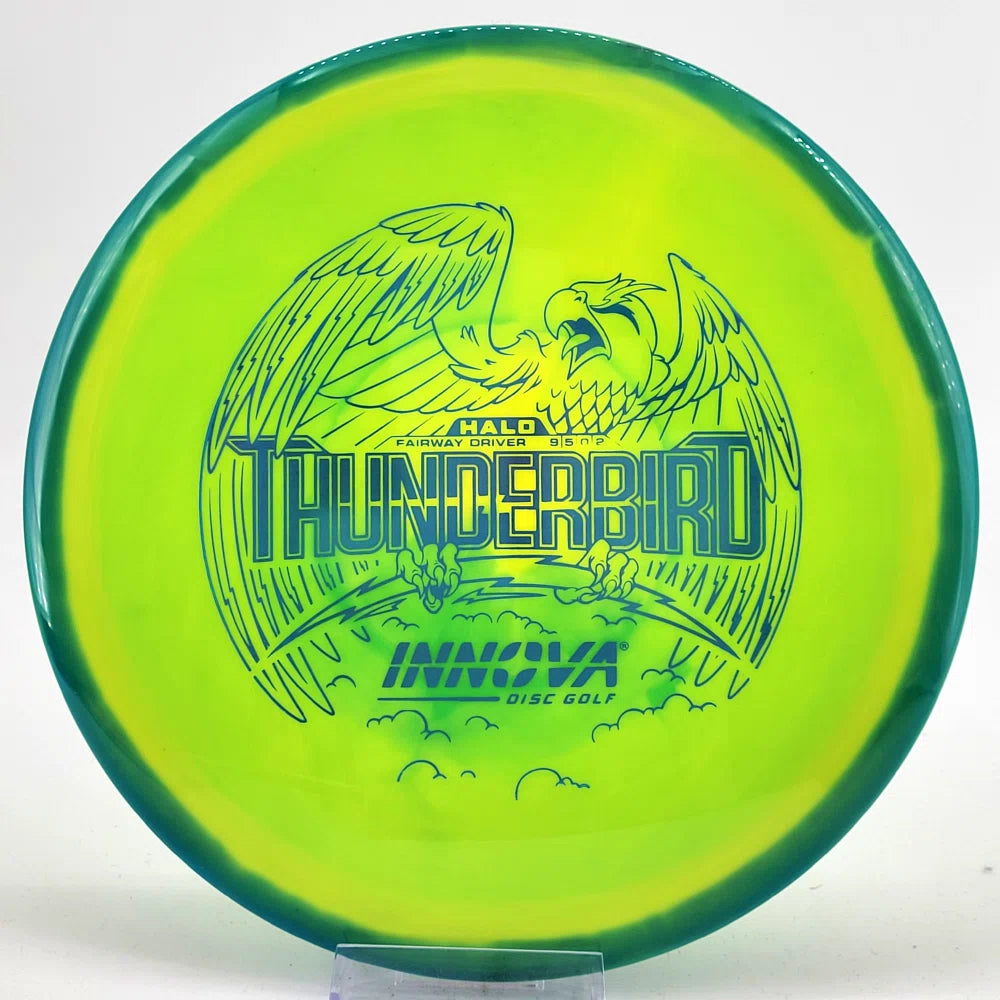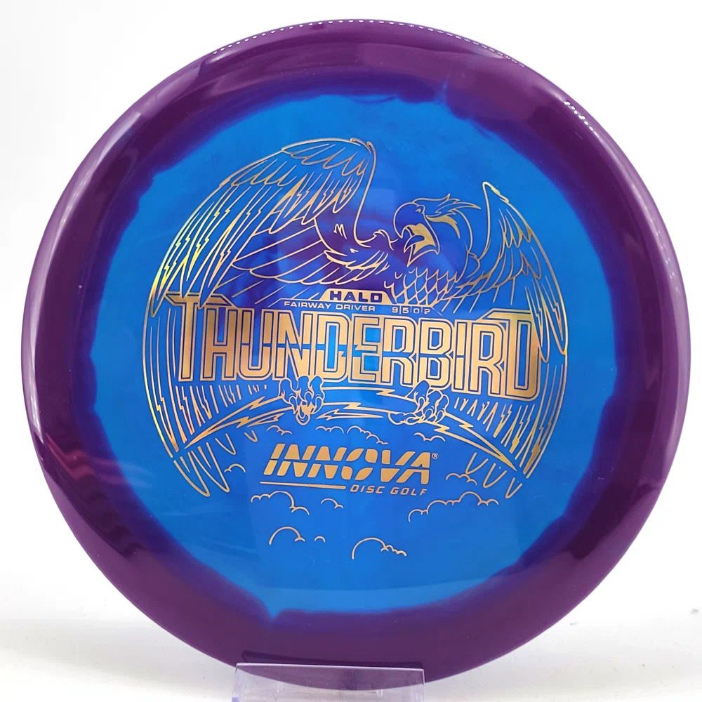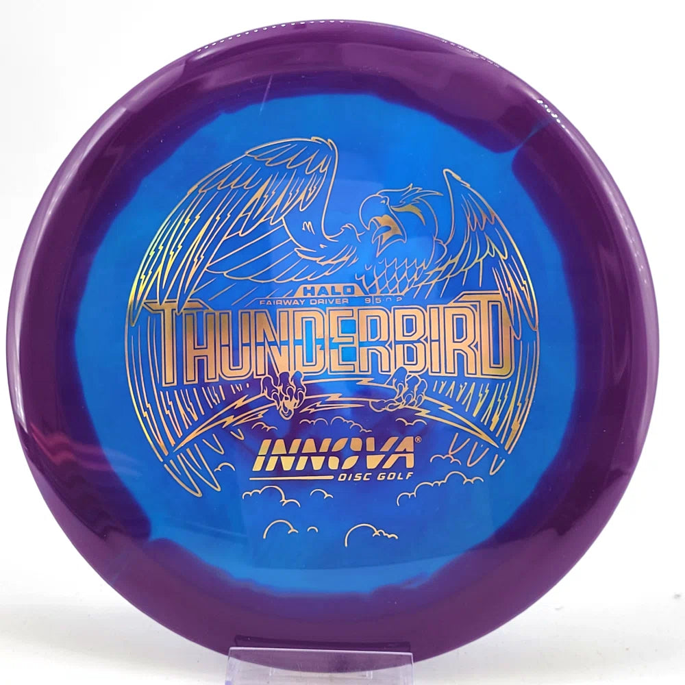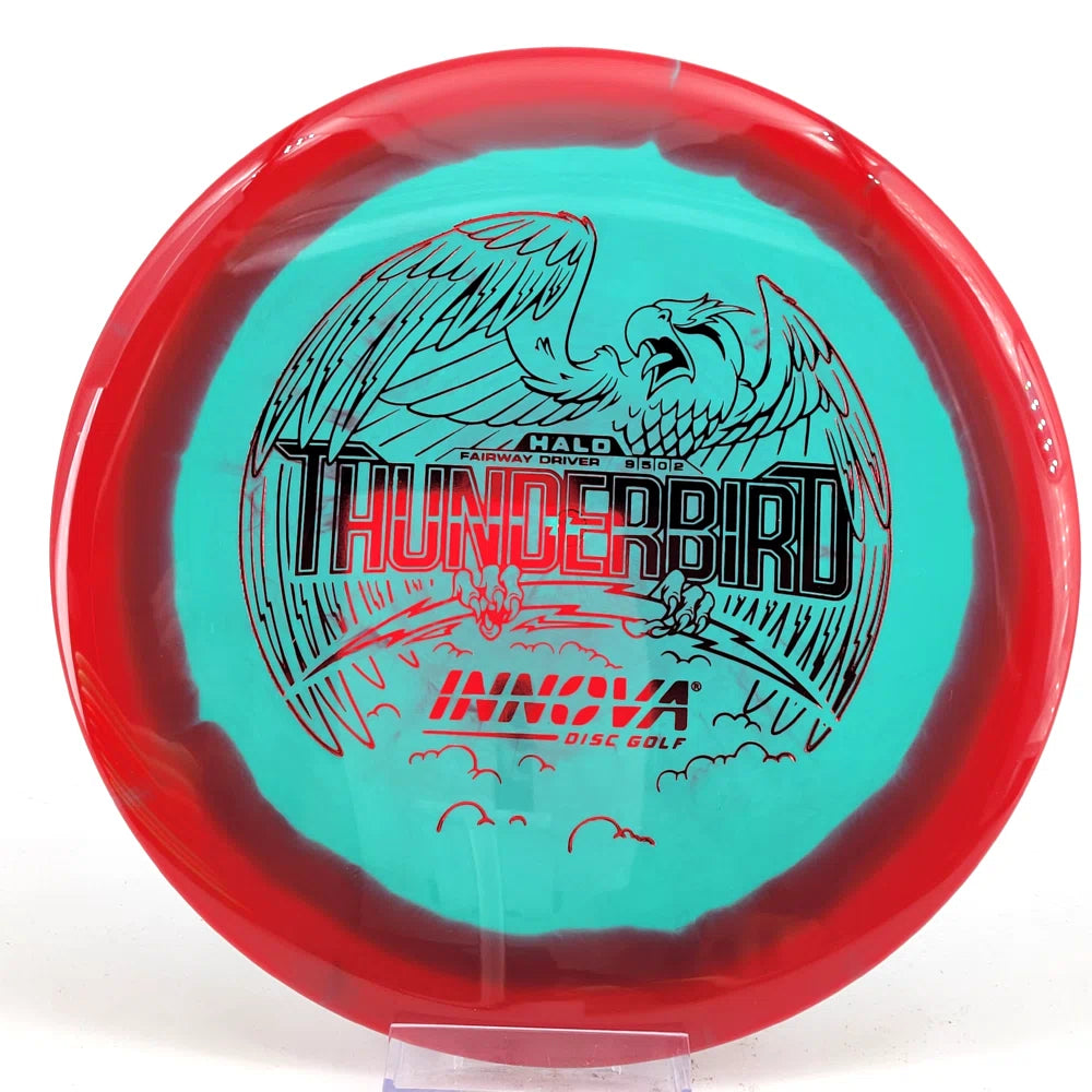 The Halo Thunderbird w/flight numbers is now available as a Limited Production offering. One of our most versatile discs for backhand and forehand shots, the Innova Thunderbird is a must have. The stability of a TeeBird with the speed of a Valkryie. Grab the extra glide and superior looks with the Halo Star material!