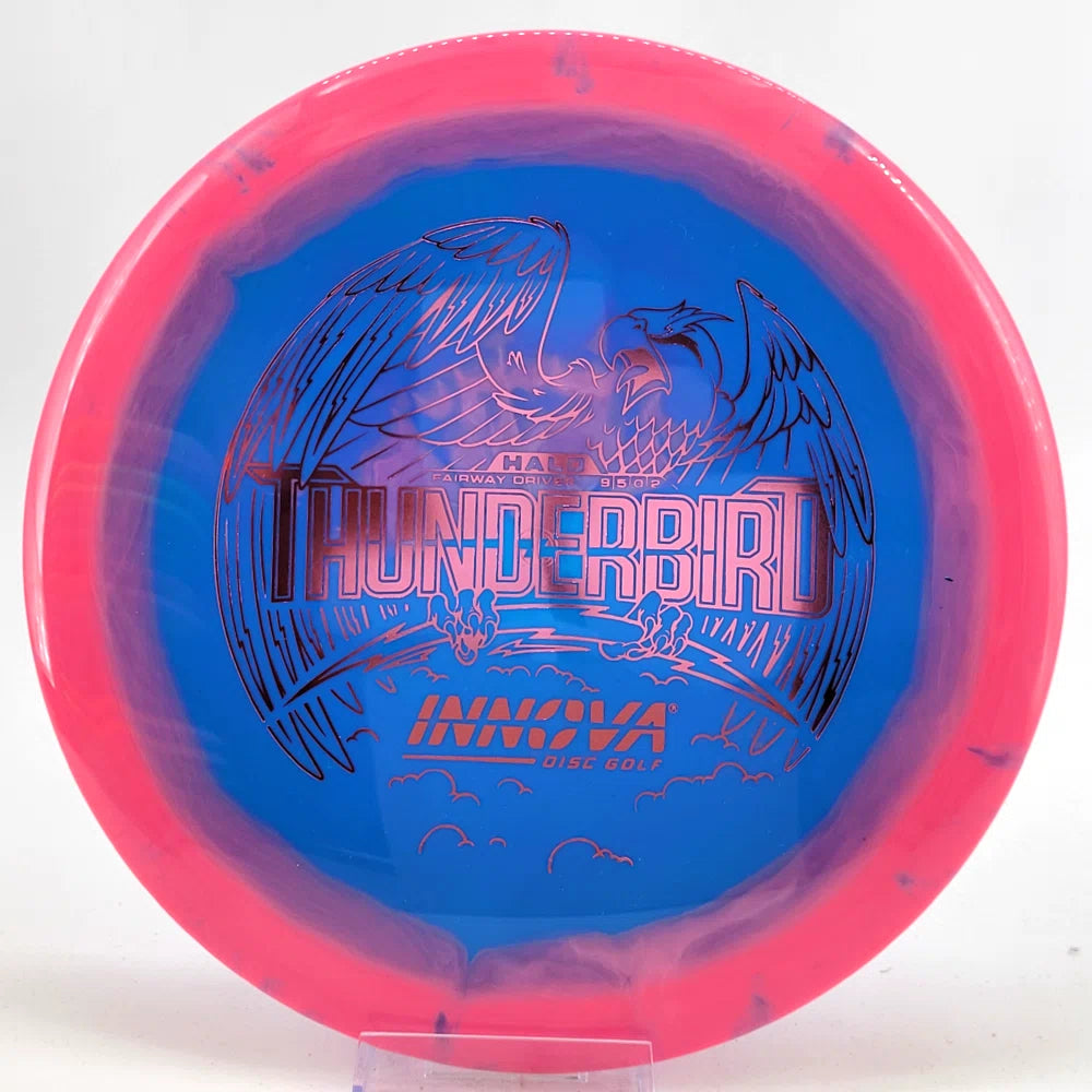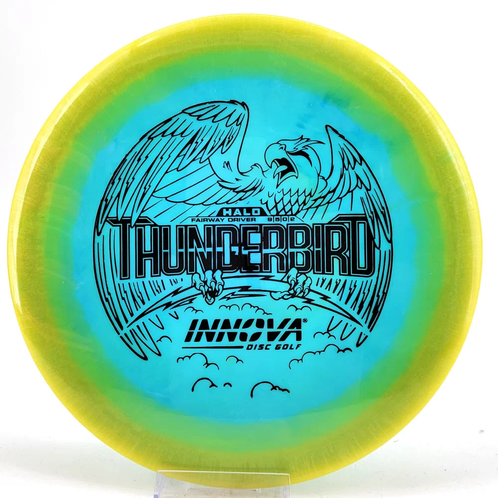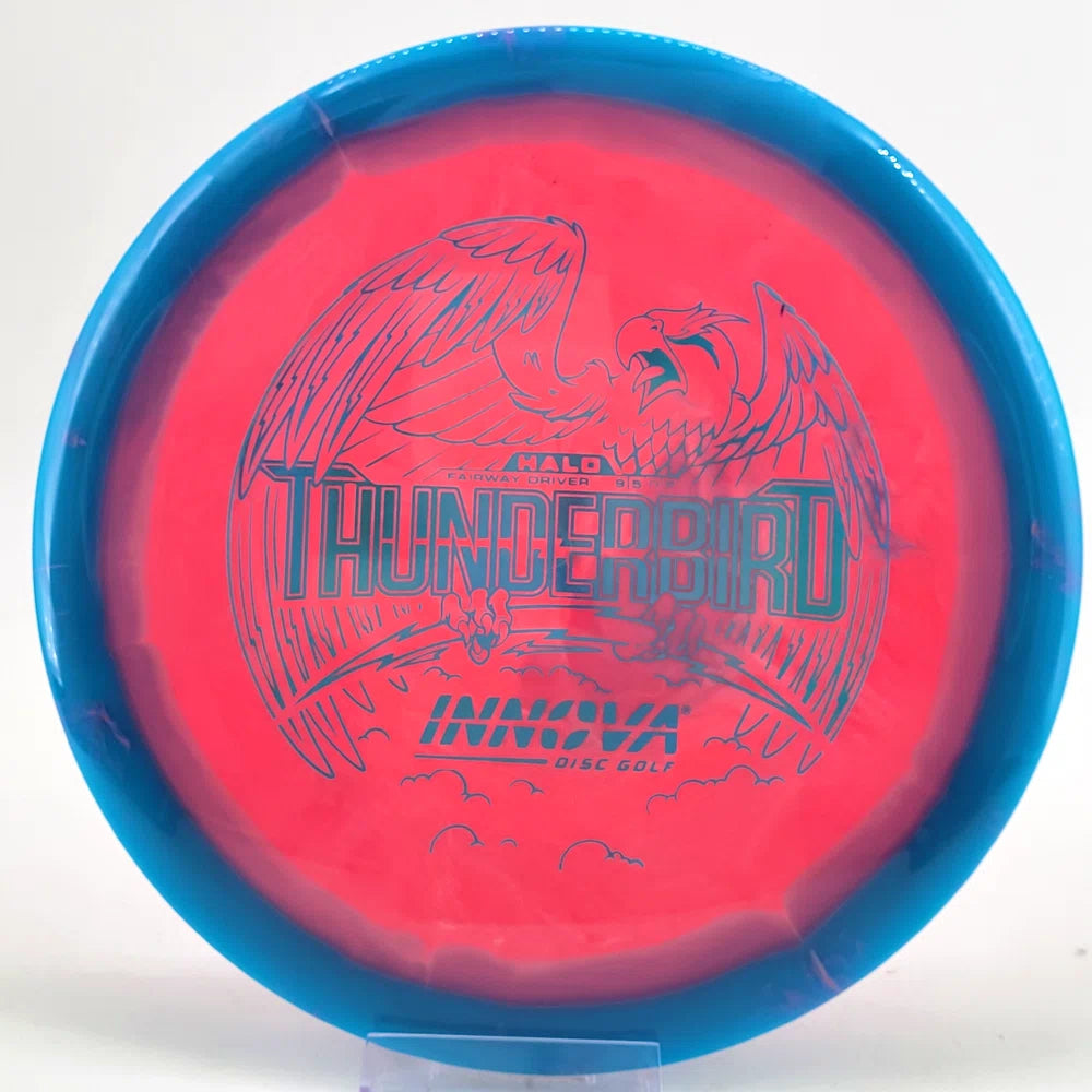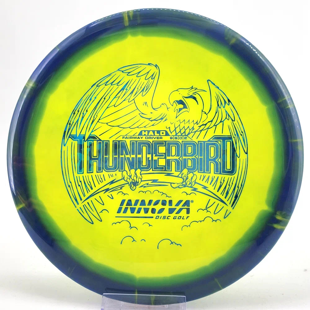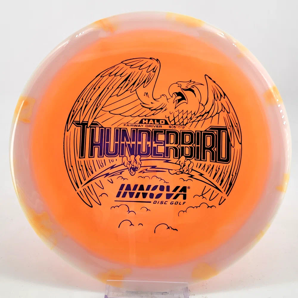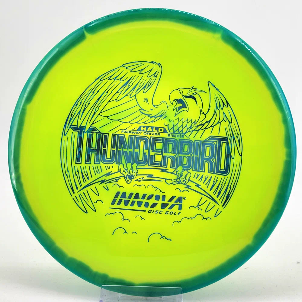 The Halo Thunderbird w/flight numbers is now available as a Limited Production offering. One of our most versatile discs for backhand and forehand shots, the Innova Thunderbird is a must have. The stability of a TeeBird with the speed of a Valkryie. Grab the extra glide and superior looks with the Halo Star material!