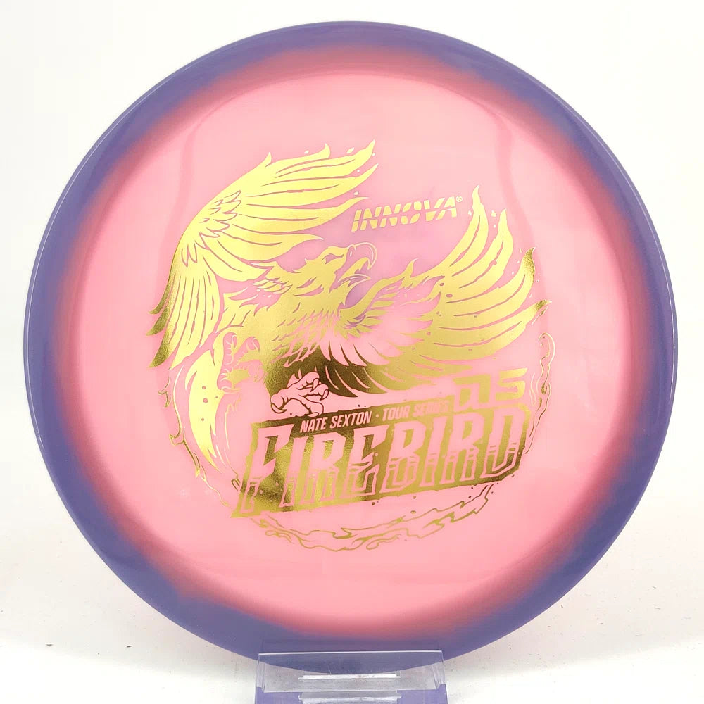 “I’m honored to have another edition of The Sexton Firebird. From 2015-2025 it is without a doubt my most thrown driver, my favorite disc I’ve ever used. Fade you can always trust, coupled with enough forward push to get the distance you need. I wouldn’t change a thing!" - Nate Sexton