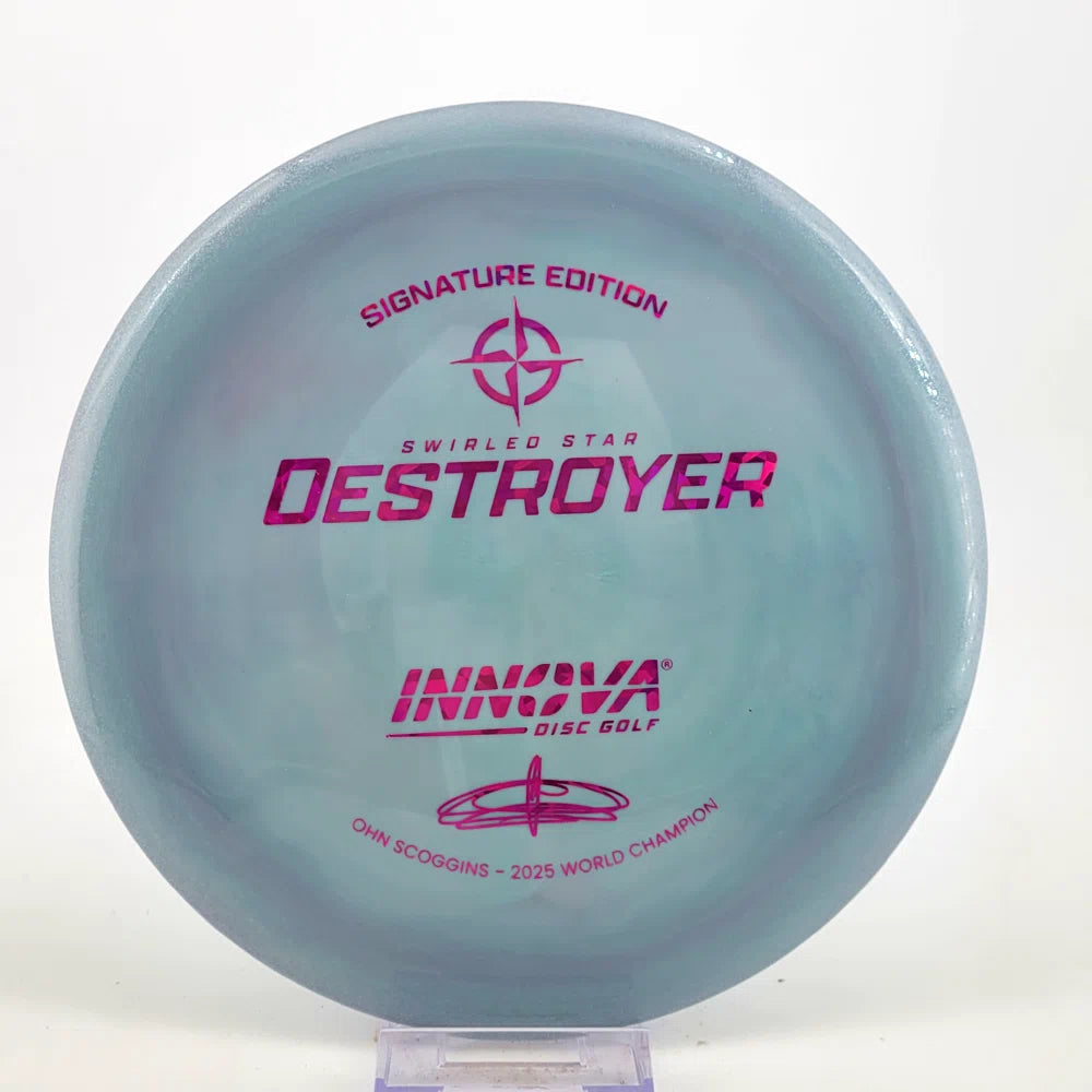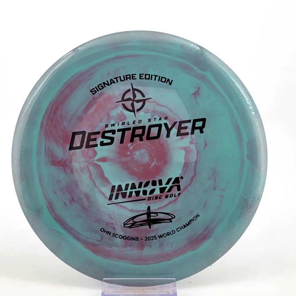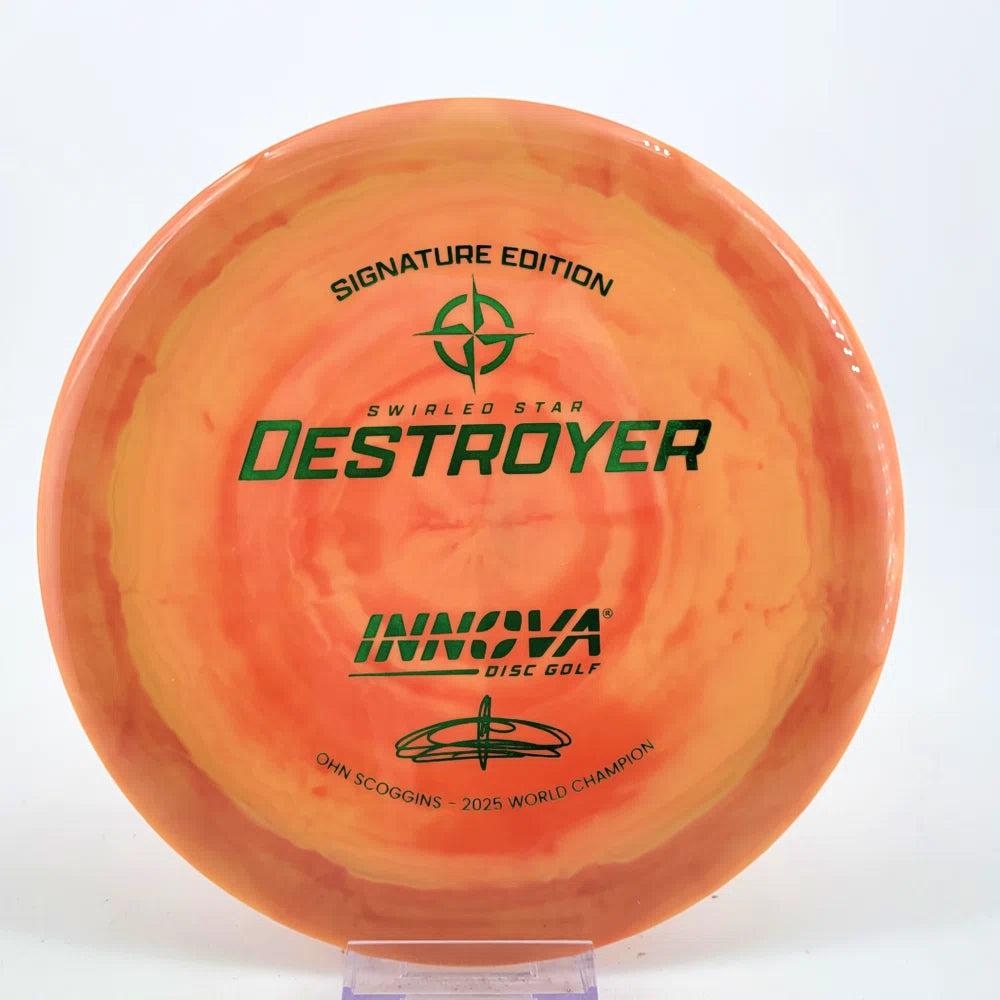 The Ohn Scoggins Swirled Star Destroyer combines Innova’s gold-standard Distance Driver with stunning Swirled Star plastic and a Signature Edition stamp worthy of a World Champion.