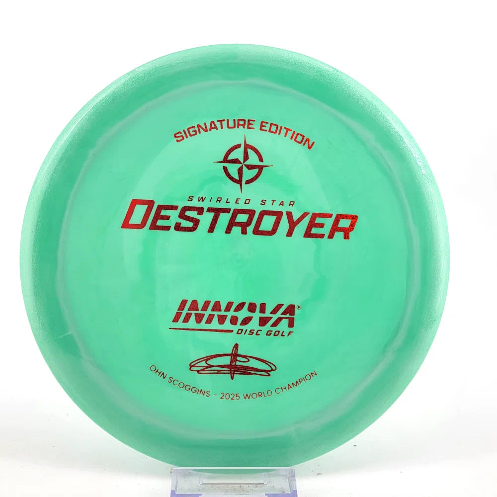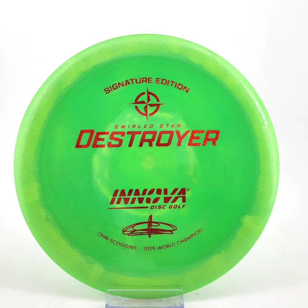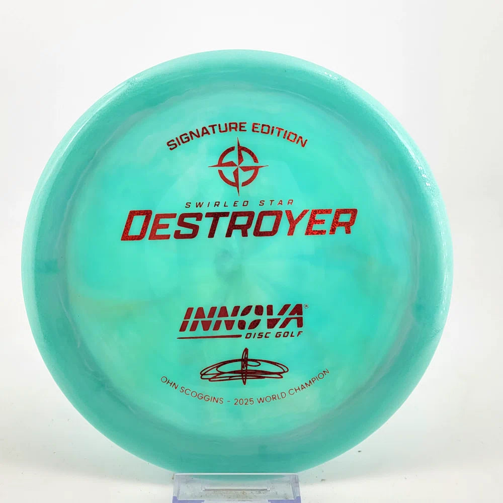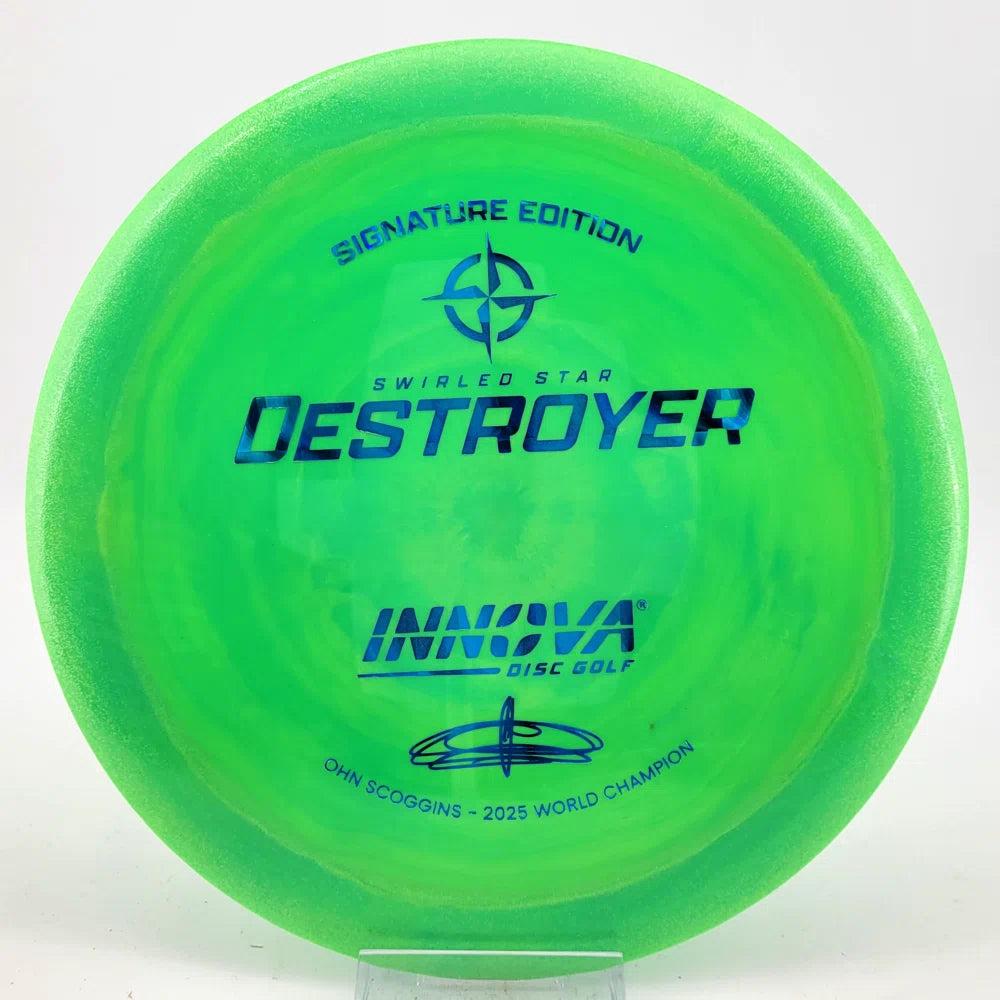 The Ohn Scoggins Swirled Star Destroyer combines Innova’s gold-standard Distance Driver with stunning Swirled Star plastic and a Signature Edition stamp worthy of a World Champion.