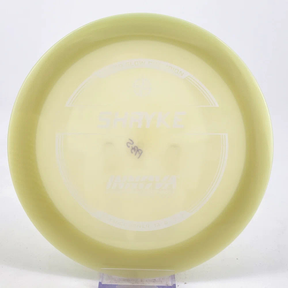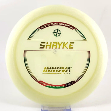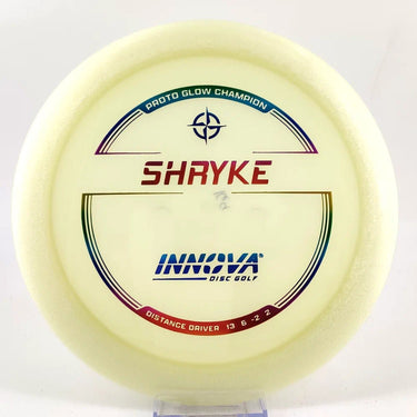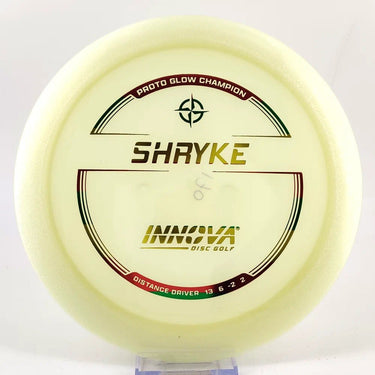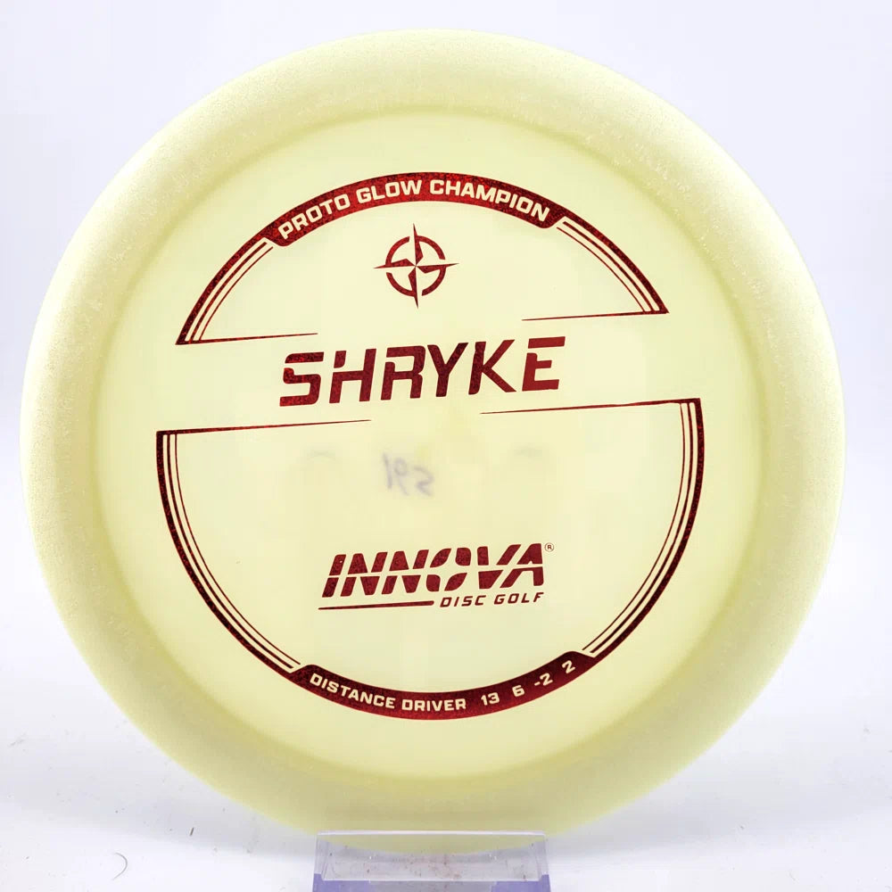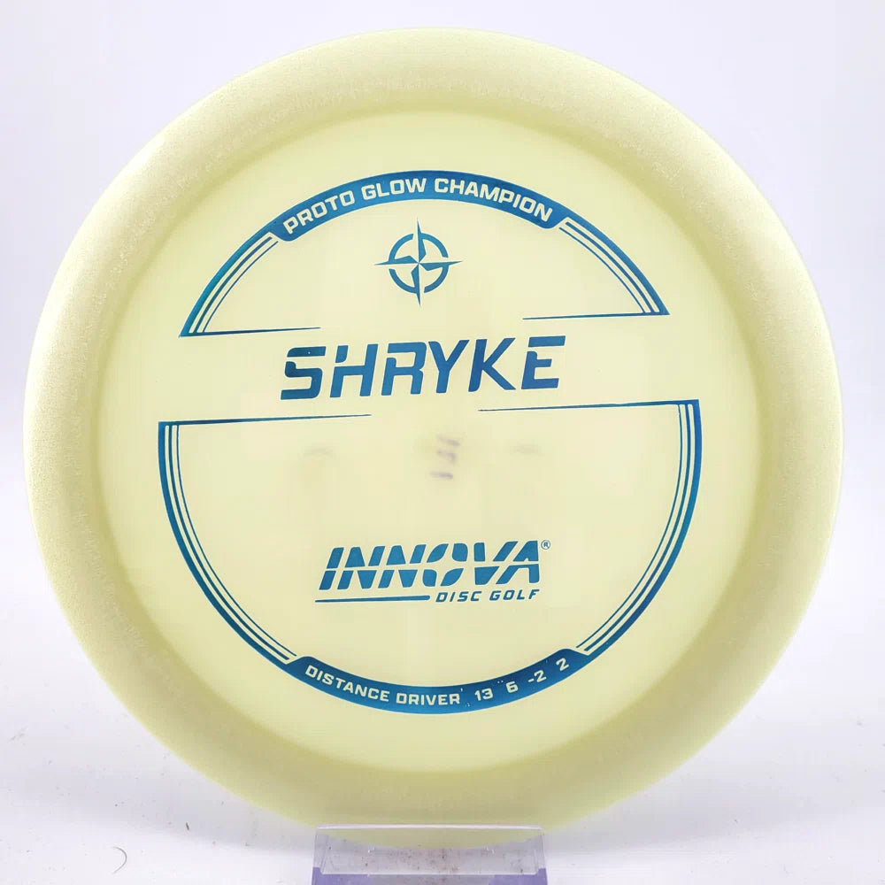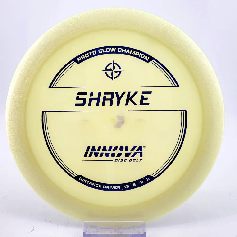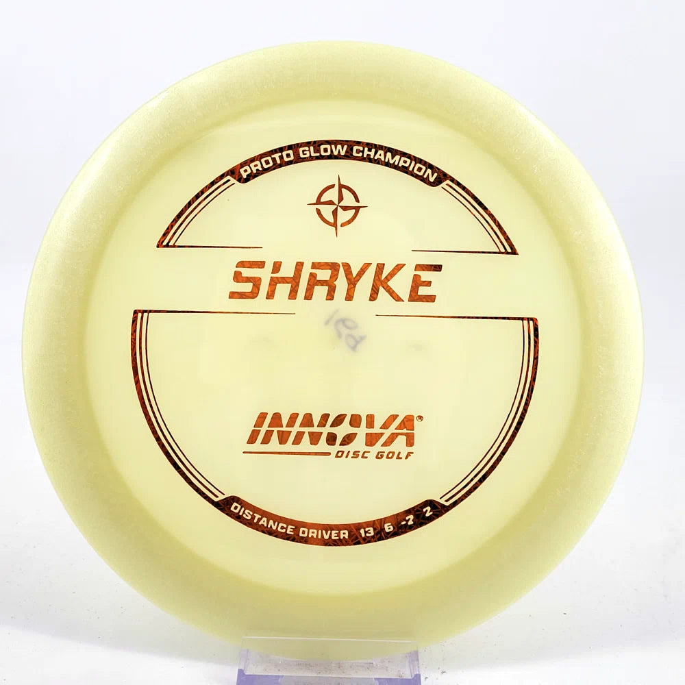About the plastic: Proto Glow material comes in a variety of colors and each has a different maximum brightness value. Traditional green is the brightest, hence why it was chosen as the default. Glow Champion is made with the same high-tech durable plastic as the Champion Line with the added benefit of glowing in the dark. Glow Champion discs are easily distinguished by their translucent greeish-yellow hue. Highly durable and easy to spot, the Champion Glow Line is perfect for Glow Disc Golf.