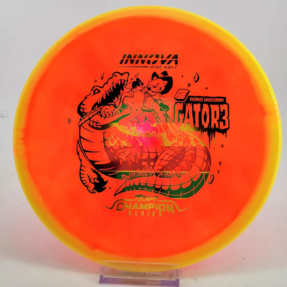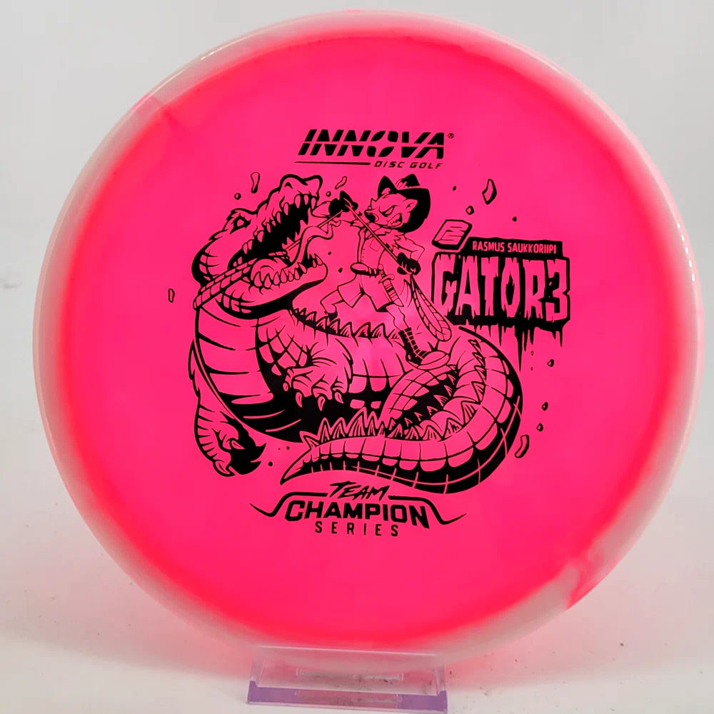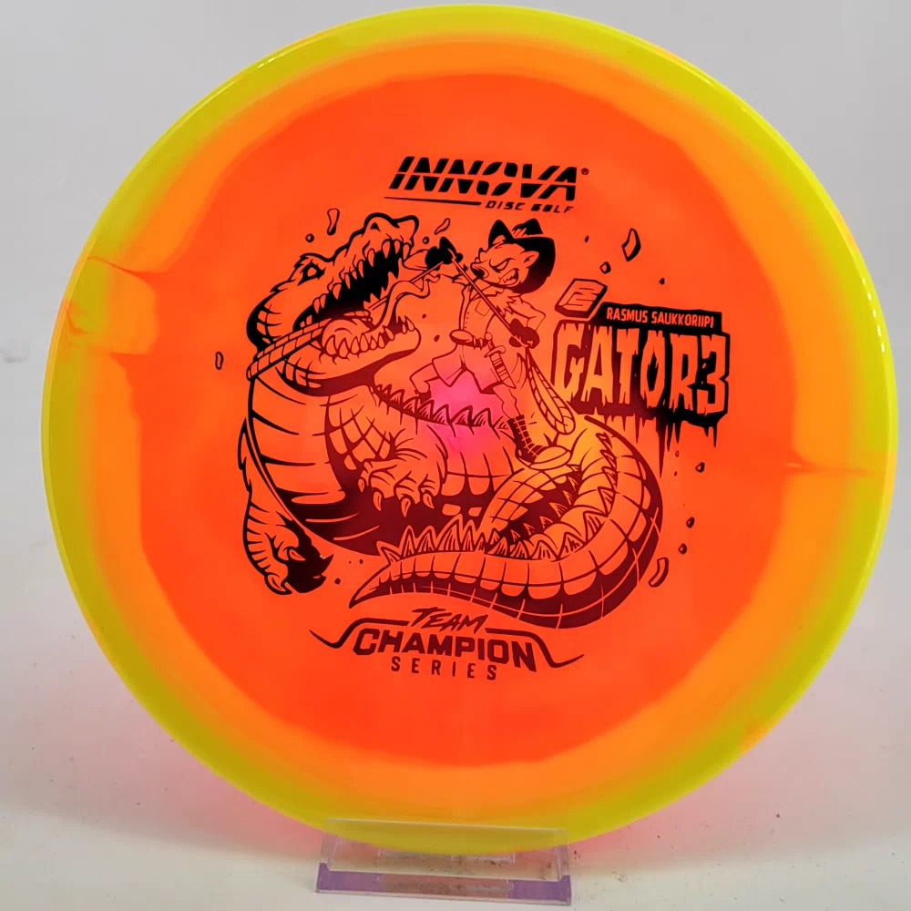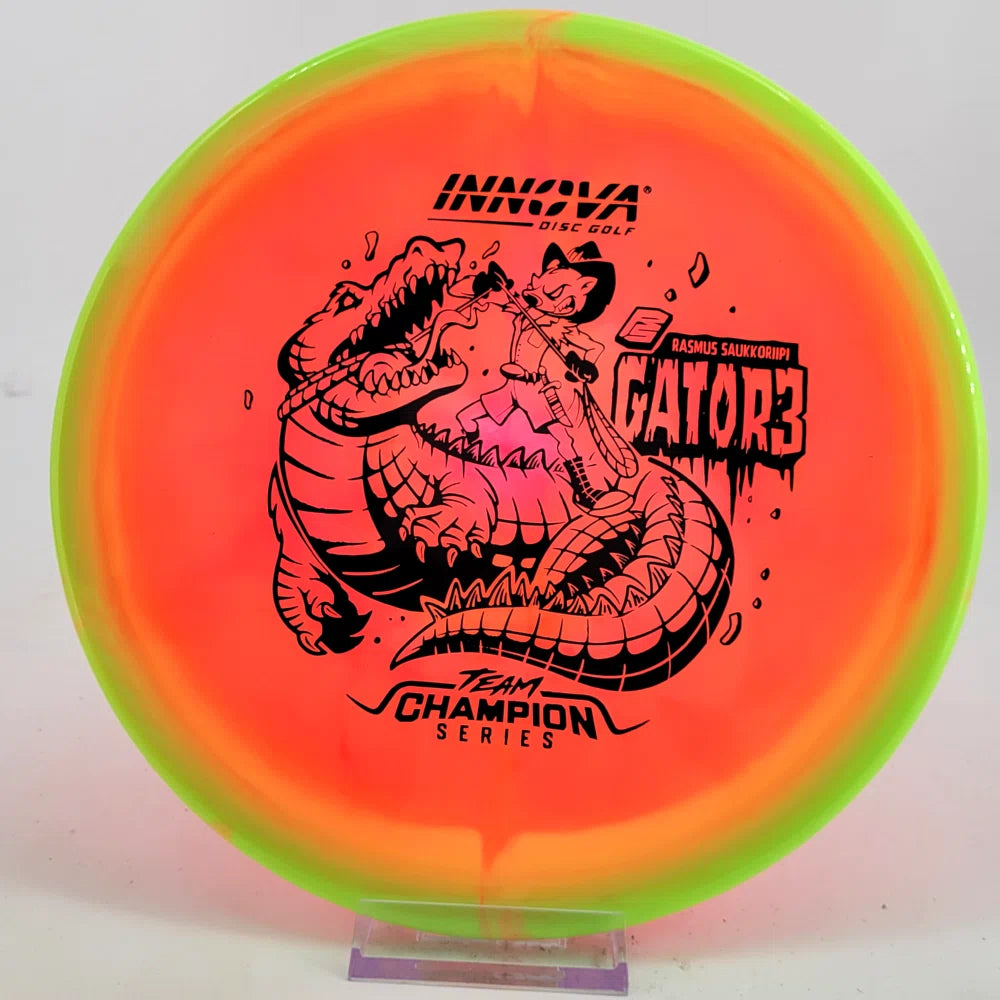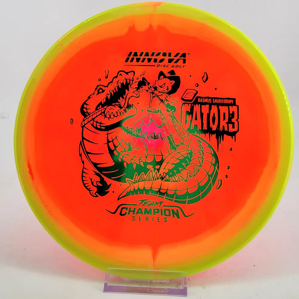 Rasmus Saukkoriipi is known for confident decision-making and strong forehand play. His Halo Champion Gator3 is overstable and torque-resistant, perfect for controlled approaches and windy conditions. Expect a reliable fade and exceptional consistency!