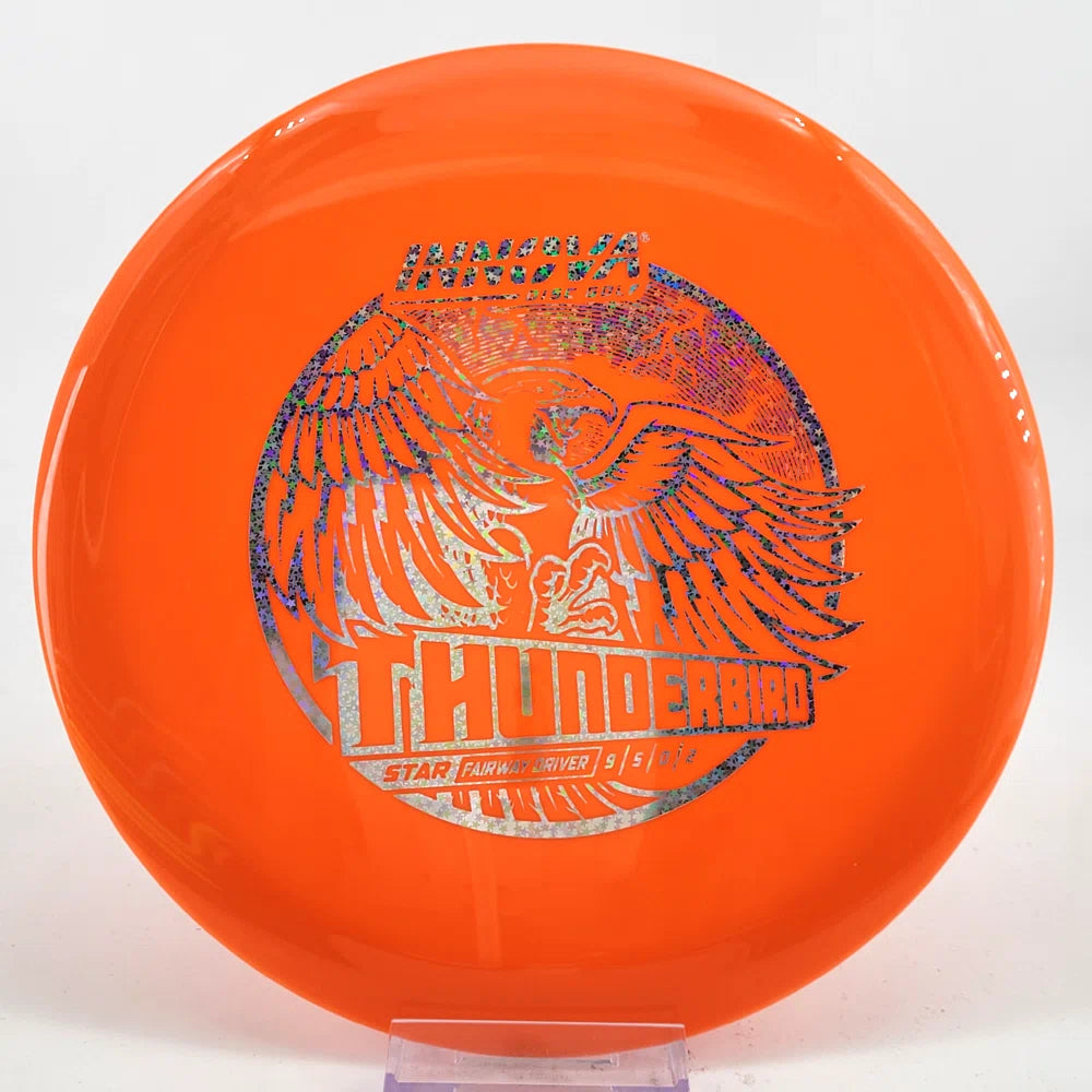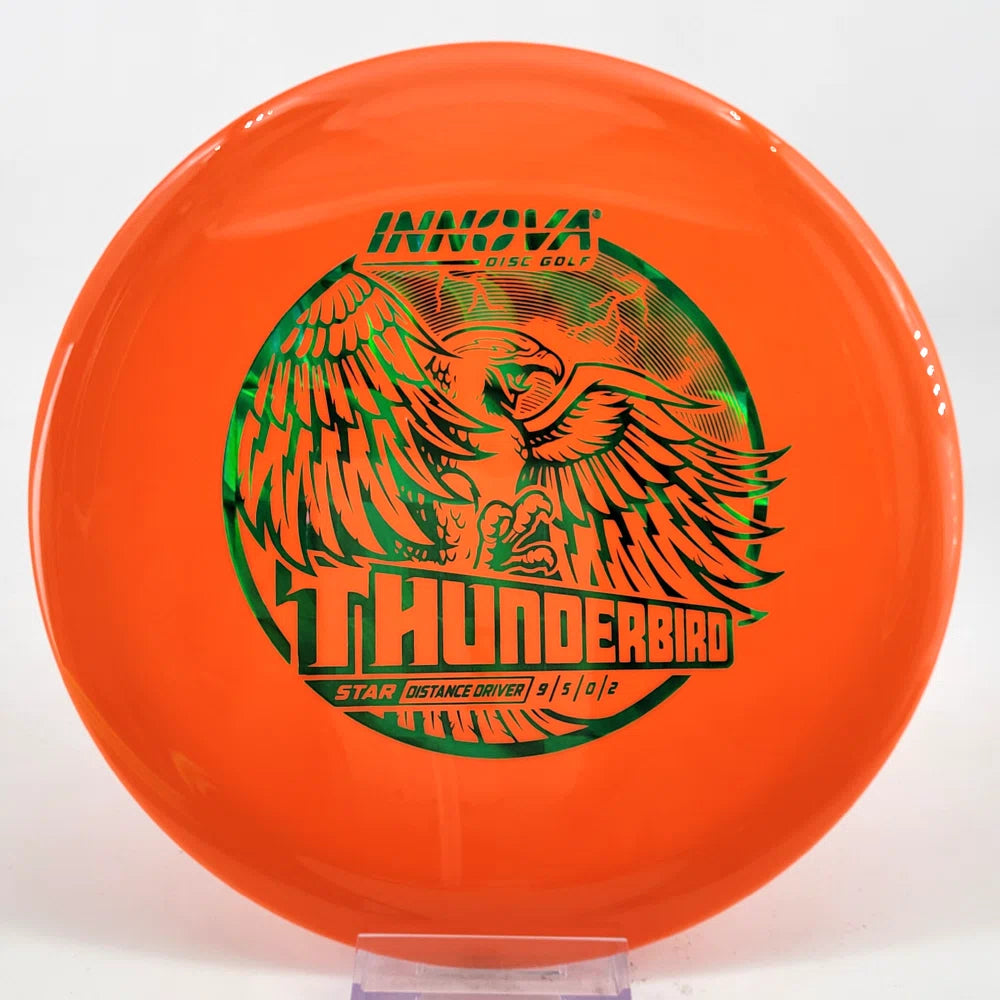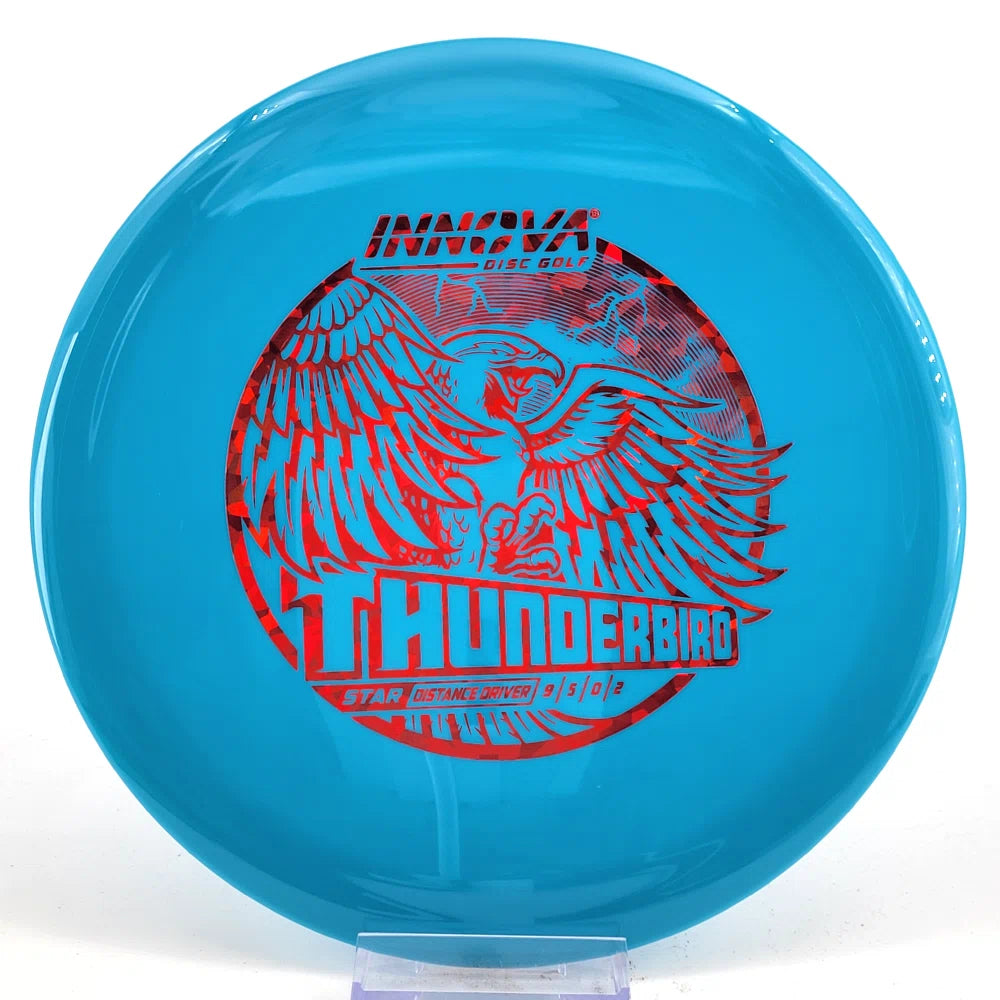 The Innova Thunderbird is speed 9 driver with controllable, accurate flights. It has the stability of a TeeBird with the speed of a Valkyrie.