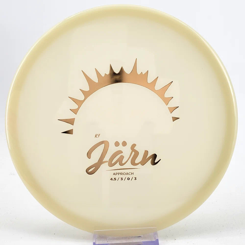 The Kastaplast K1 Jarn is an overstable mid range driver & approach disc. It is the first overstable approach disc by Kastaplast. This flat top disc golf disc has predictable fade and is great in headwinds. Players of all skill levels need the Jarn in their bag!