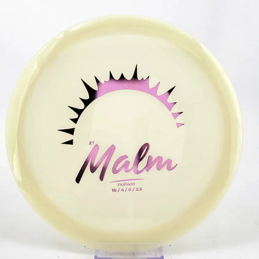 This forceful fairway driver holds up to both headwind and power shots, making the disc a useful companion when the long bending fairways need to be conquered. The Malm is equally comfortable for backhand and forehand plays and has a predictable fade in the end of the flight.