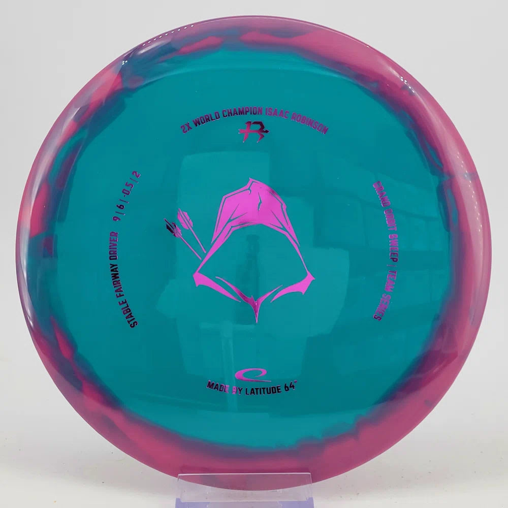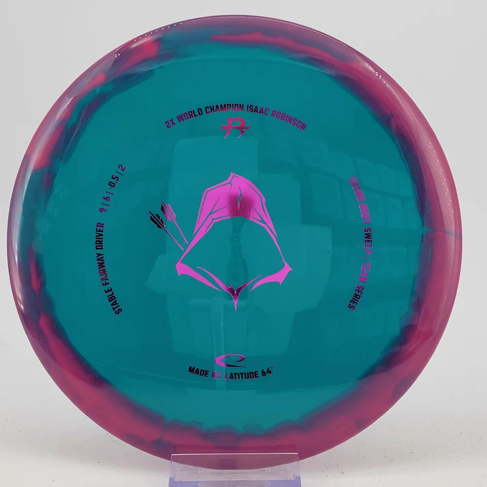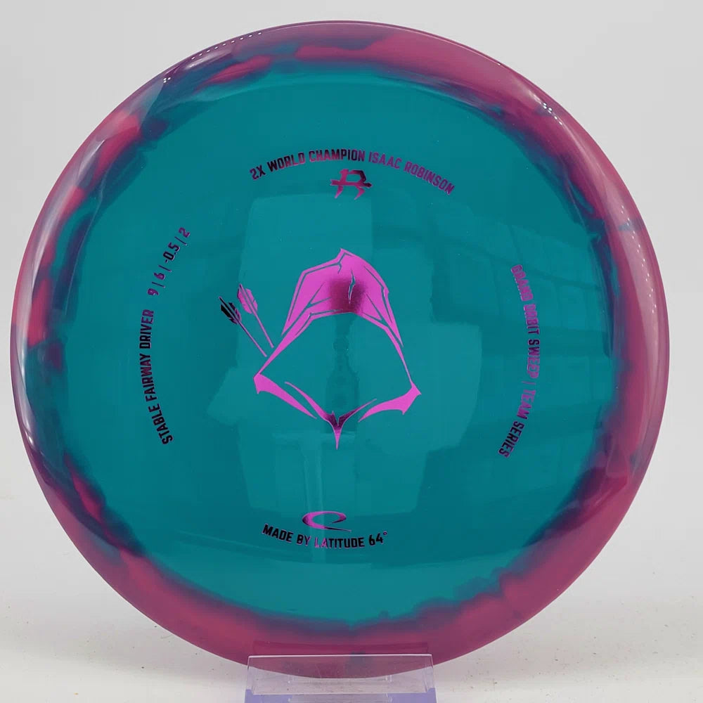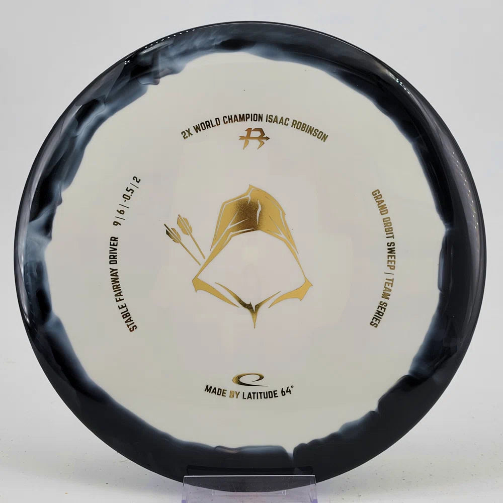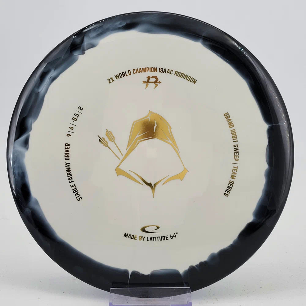 About the plastic: Royal Grand is our durable premium plastic with great grip that will not fail you, no matter the outside circumstances. It features a soft feel with a rigid rim part with perfect flex. Orbit is Latitude 64's spectacular two-color process that opens up a whole new world of color combinations. No orbits are the same and every one has different variations within the disc.