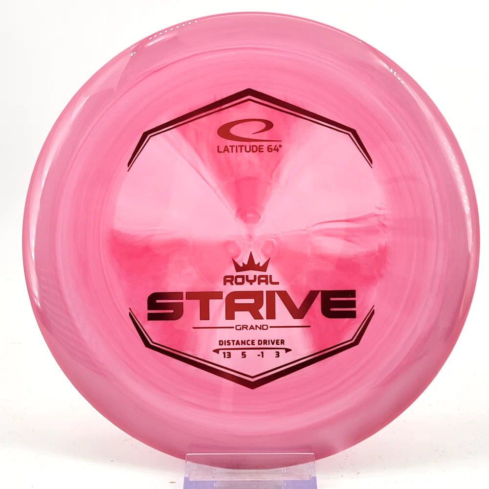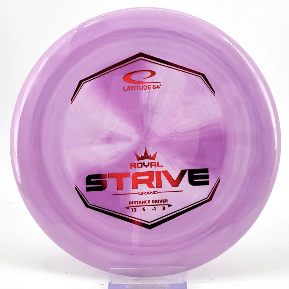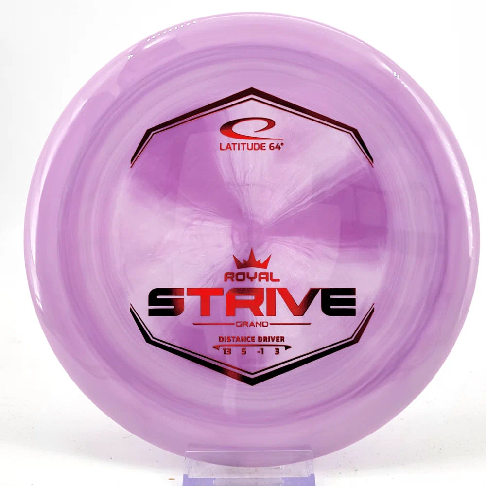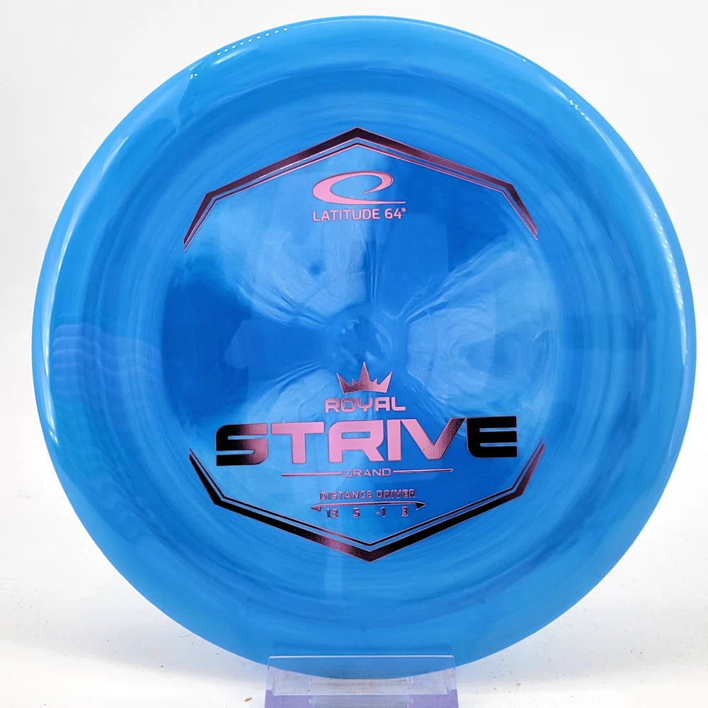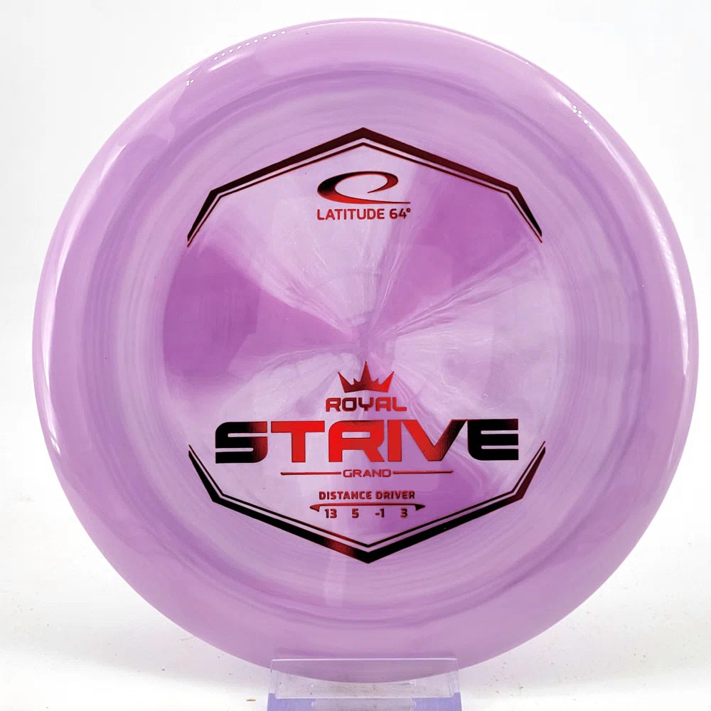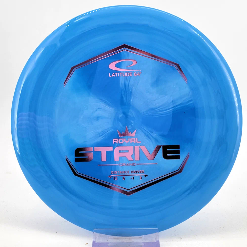 The Strive is a fast, overstable distance driver from Latitude 64's Royal line that has the flight all players love in a driver. It has massive distance potential for advanced players whether thrown forehand or backhand. Never fear a headwind with the trustworthy stability of the Strive.