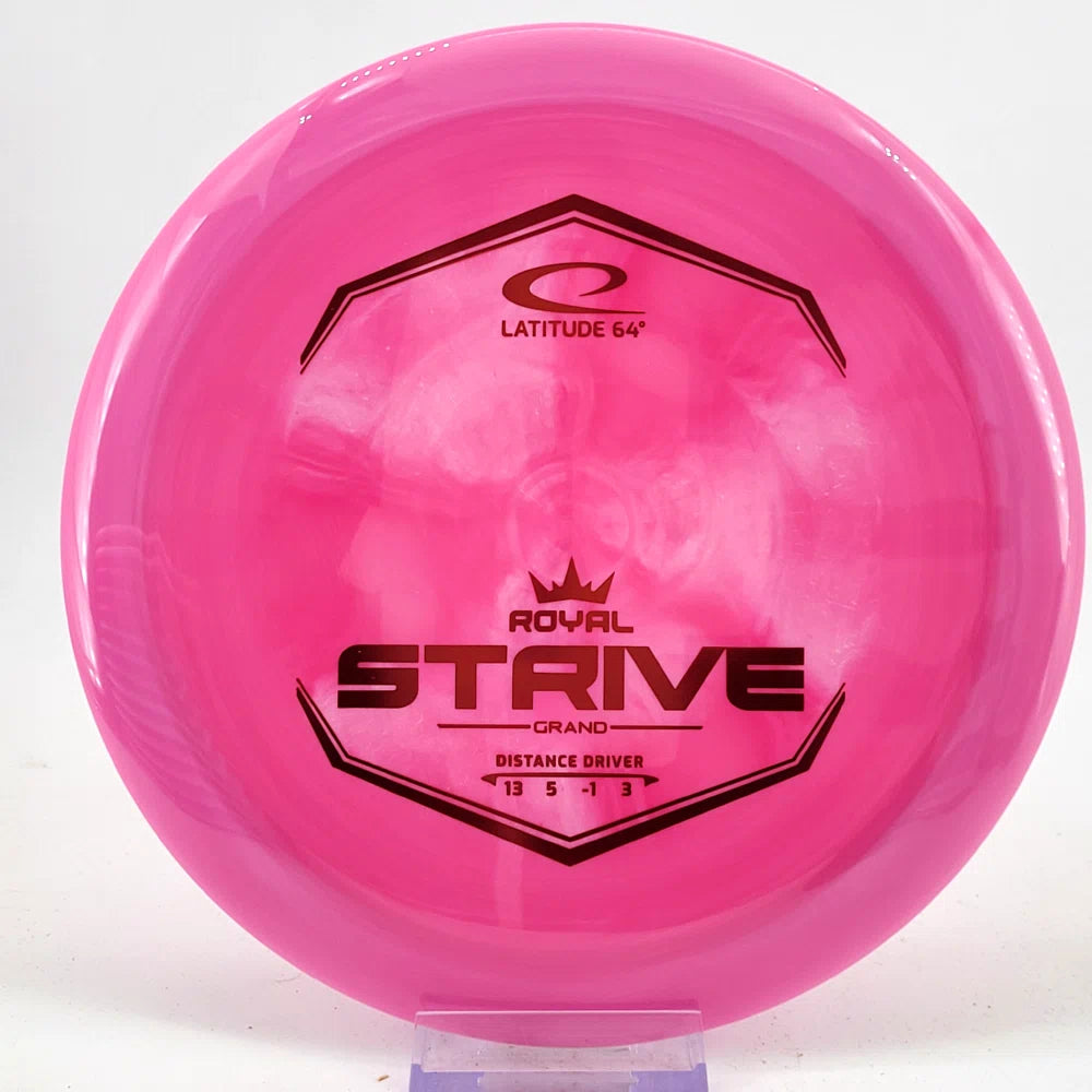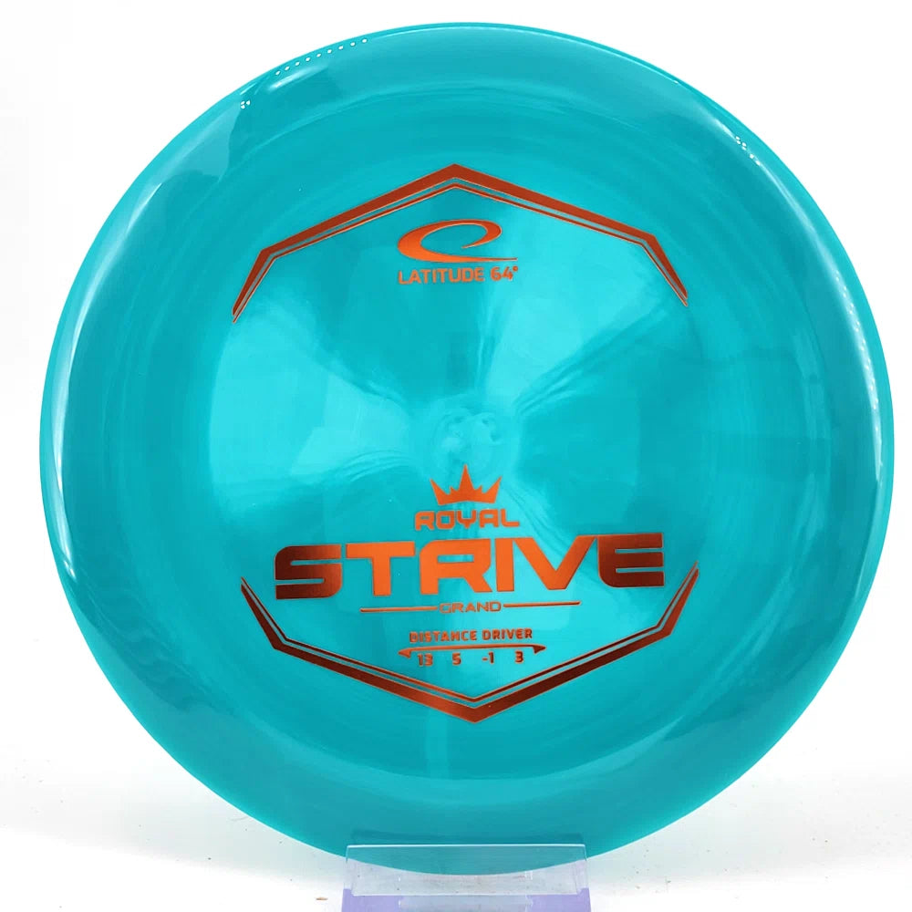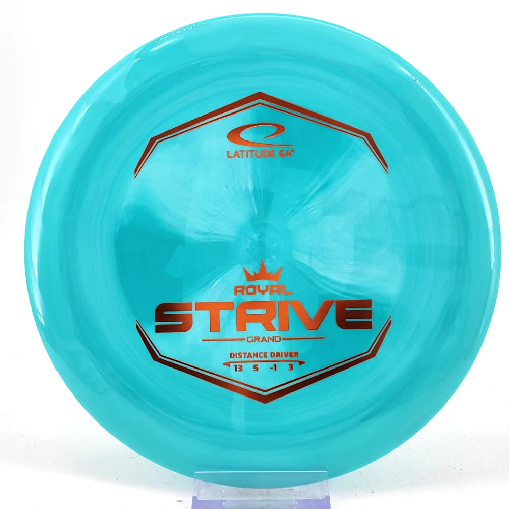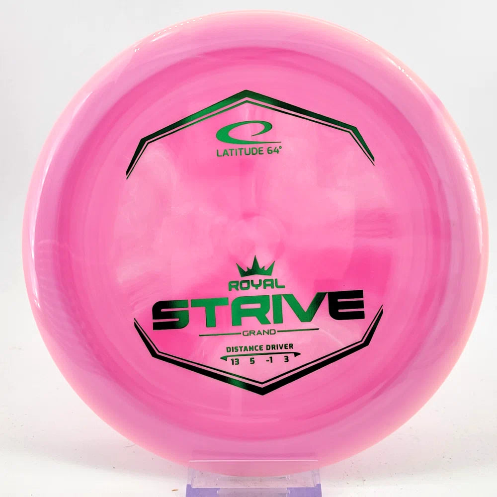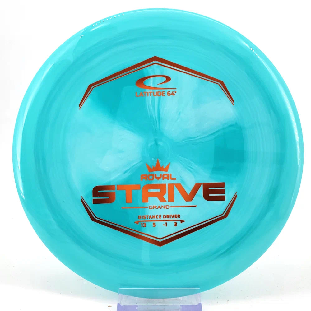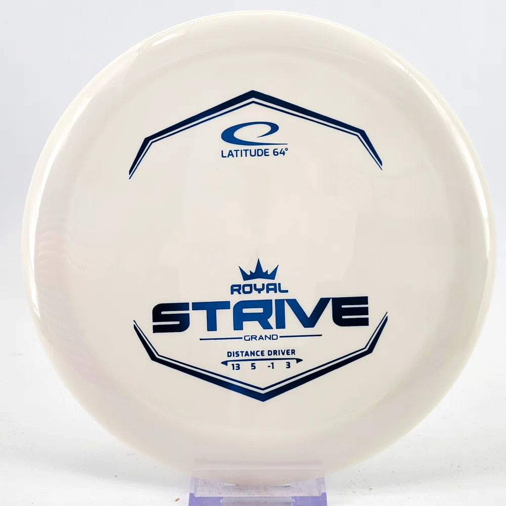 The Strive is a fast, overstable distance driver from Latitude 64's Royal line that has the flight all players love in a driver. It has massive distance potential for advanced players whether thrown forehand or backhand. Never fear a headwind with the trustworthy stability of the Strive.