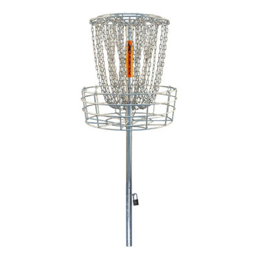 The DGA Mach X is the most advanced and innovative disc golf basket on the market. Crafted with the input of top professionals, it has been designed with interlinked chains to handle the aggressive and demanding play of the world’s best players. The Mach X is hot-dipped galvanized and is available in three different mounting options, it also comes with a 25-year warranty.