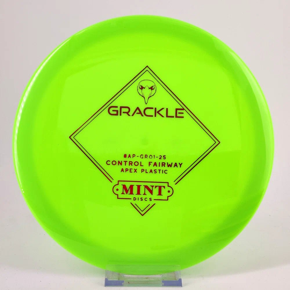 The Grackle is a slightly stable fairway driver. It will compliment the current Alpha as a slightly less stable version that will season well and turn into a great hyzer flip option. This disc responds well to backhand and forehand throws. We find it flies a bit straighter on a flat forehand than it does a backhand.