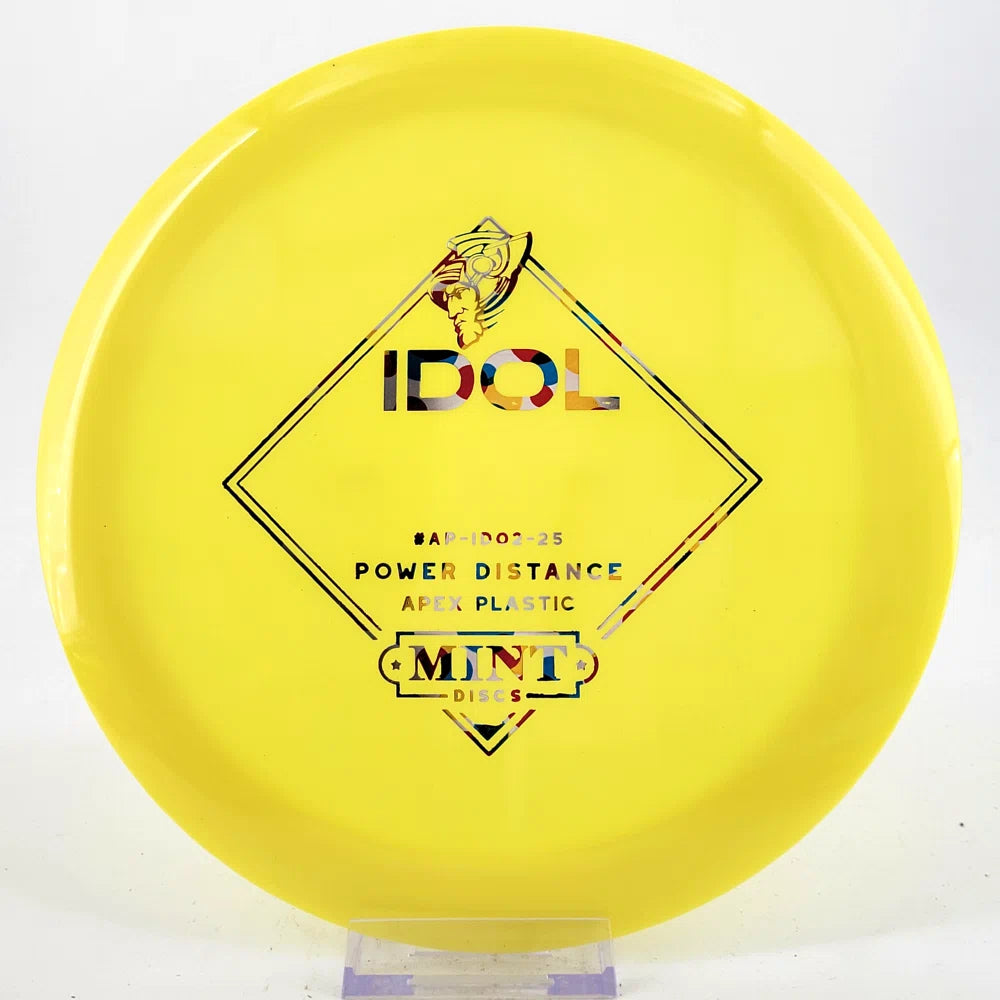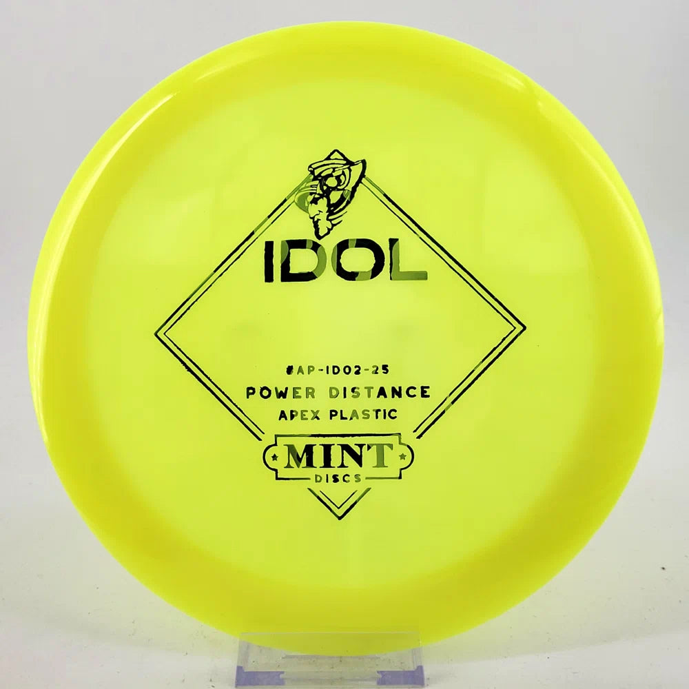 The Idol is a brand new, high-speed distance driver and the first disc from Mint manufactured in partnership with Prodigy Discs. This disc is built for raw power, designed to handle immense torque without dumping early. The flat profile provides a comfortable grip and clean releases, making it a reliable workhorse for experienced players. The Idol excels in windy conditions and is perfect for strong forehand throws.
