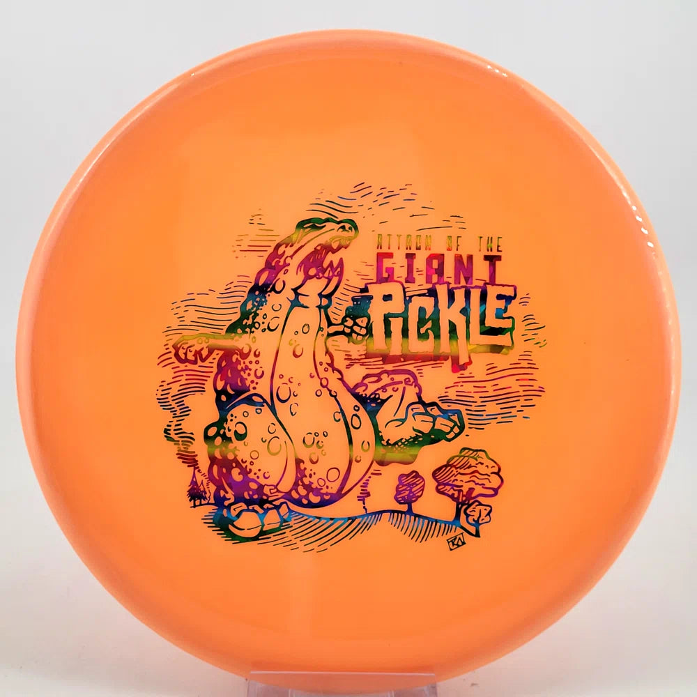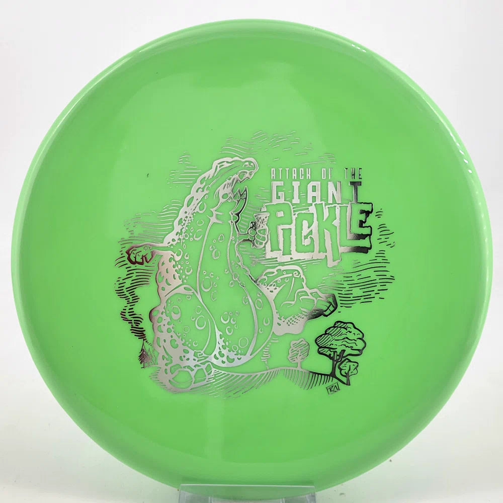 The Mint Discs Pickle is a flat, low-profile, big-bead putter designed to deliver a clean, stable flight with a slight finish. Produced by Prodigy for Mint, the Pickle bridges the gap between the Profit and UFO, offering players a reliable straight flight with just a touch of fade at the end. Its small diameter and rounded nose create a comfortable, confident feel in the hand, ideal for both putting and driving.