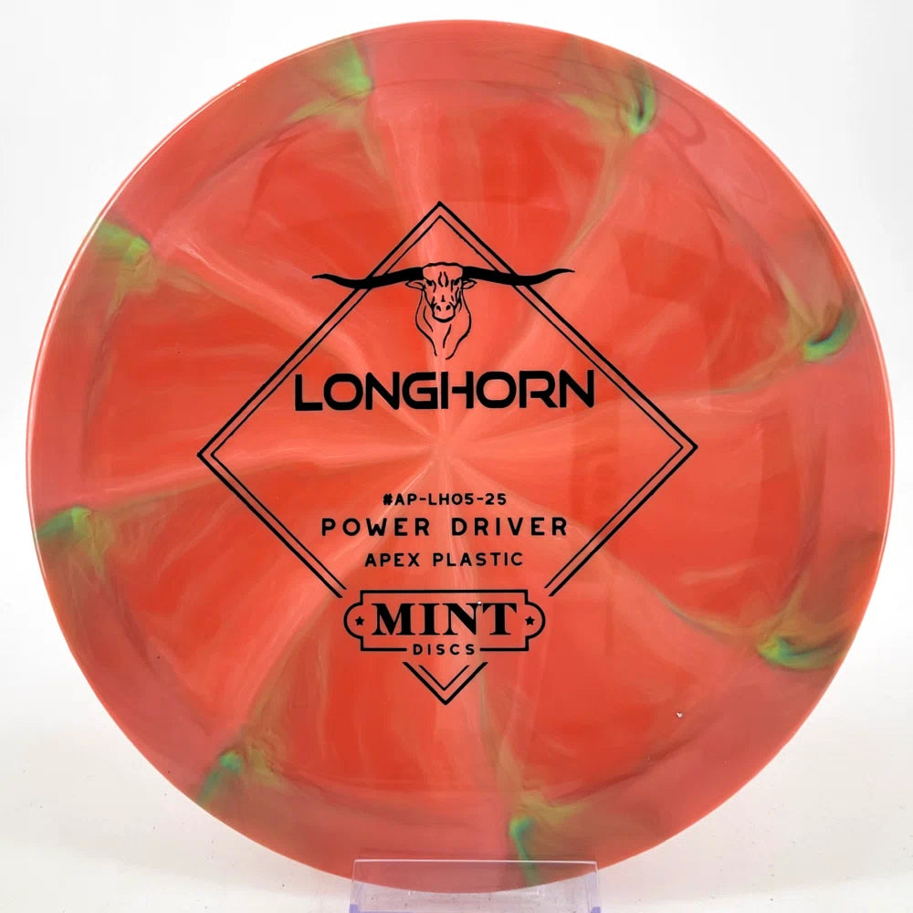 As Mint's second distance driver, the Longhorn is a perfect compliment to the understable Freetail. The Longhorn is a speed based driver, designed to flip to flat just a little bit while also being able to resist moderate winds.