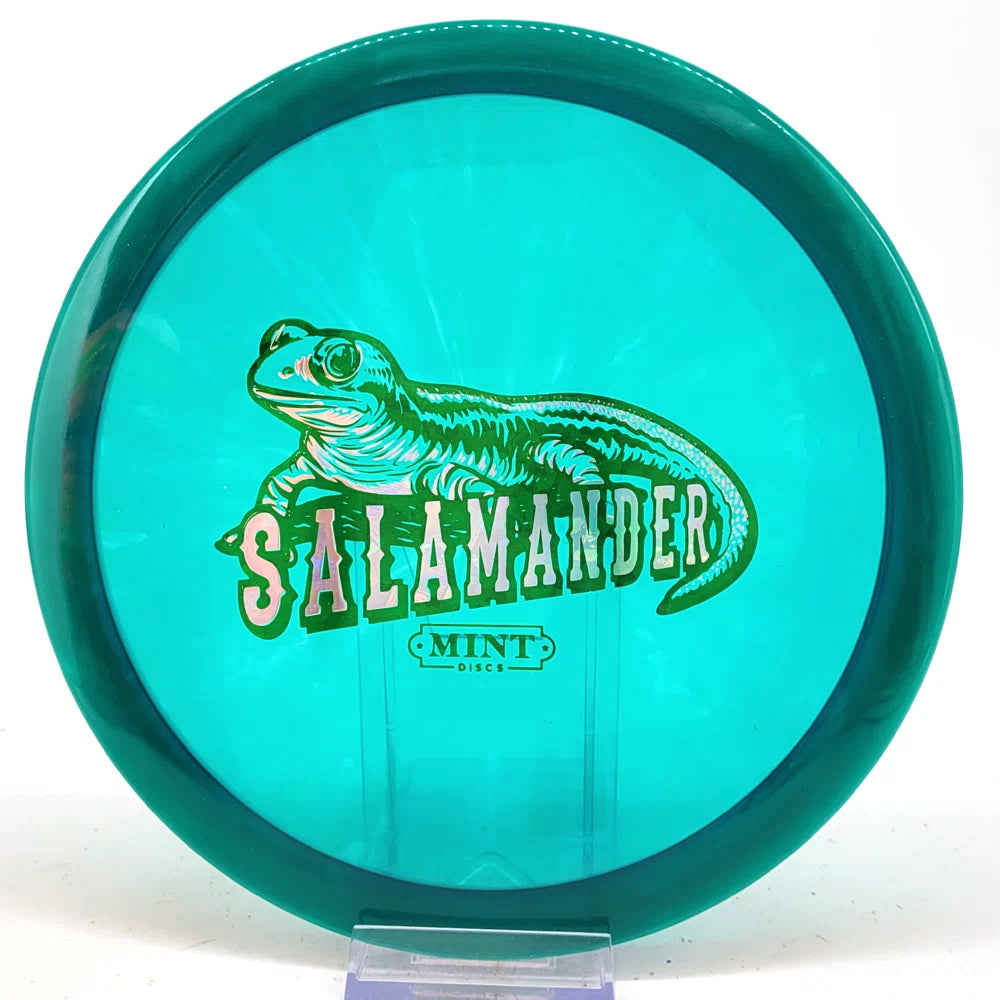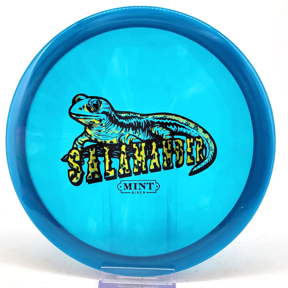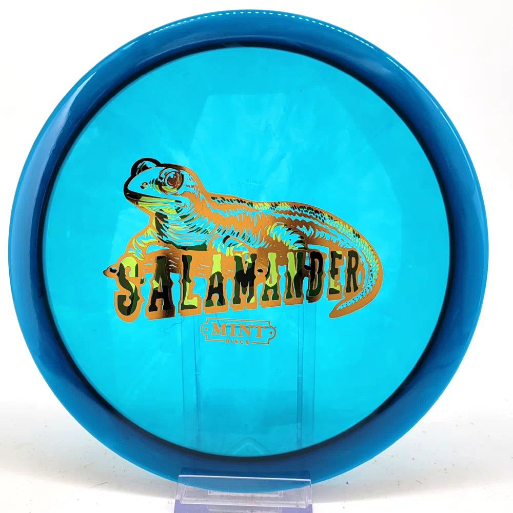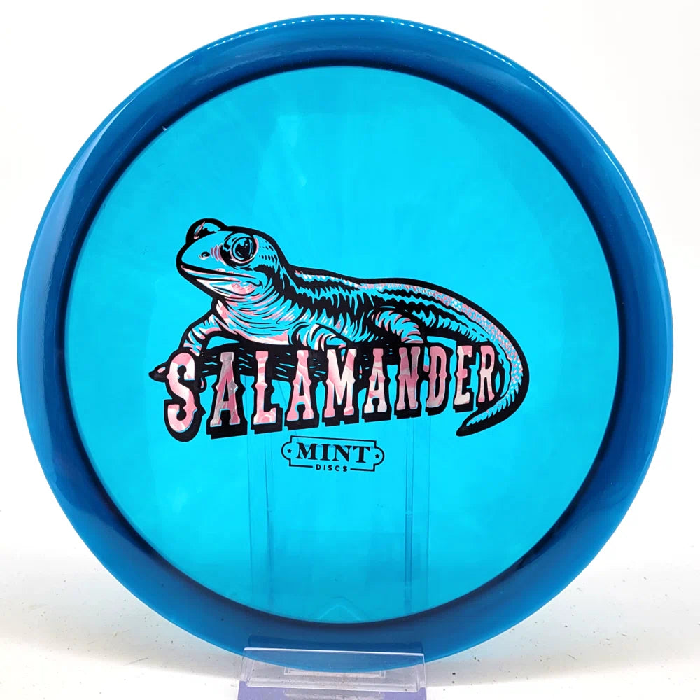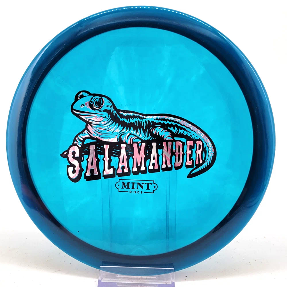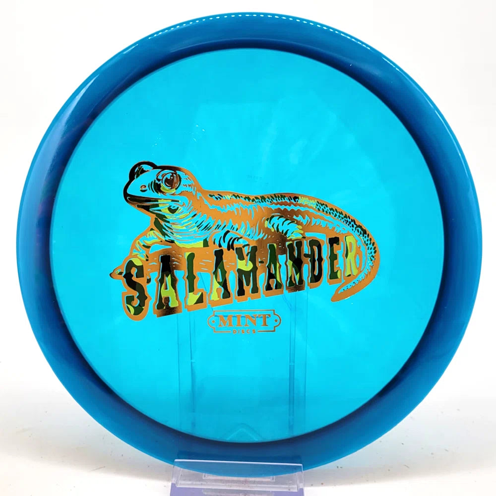 The Salamander is our slowest driver released to date. We call it a longer Lobster. It's going to be similar to the Jackalope but with more glide and a smaller rim. This makes it easy to throw on backhand and ideal for players with lower arm speeds that need to shape shots. For higher power players, this should be a reliable flip and glide disc for you.