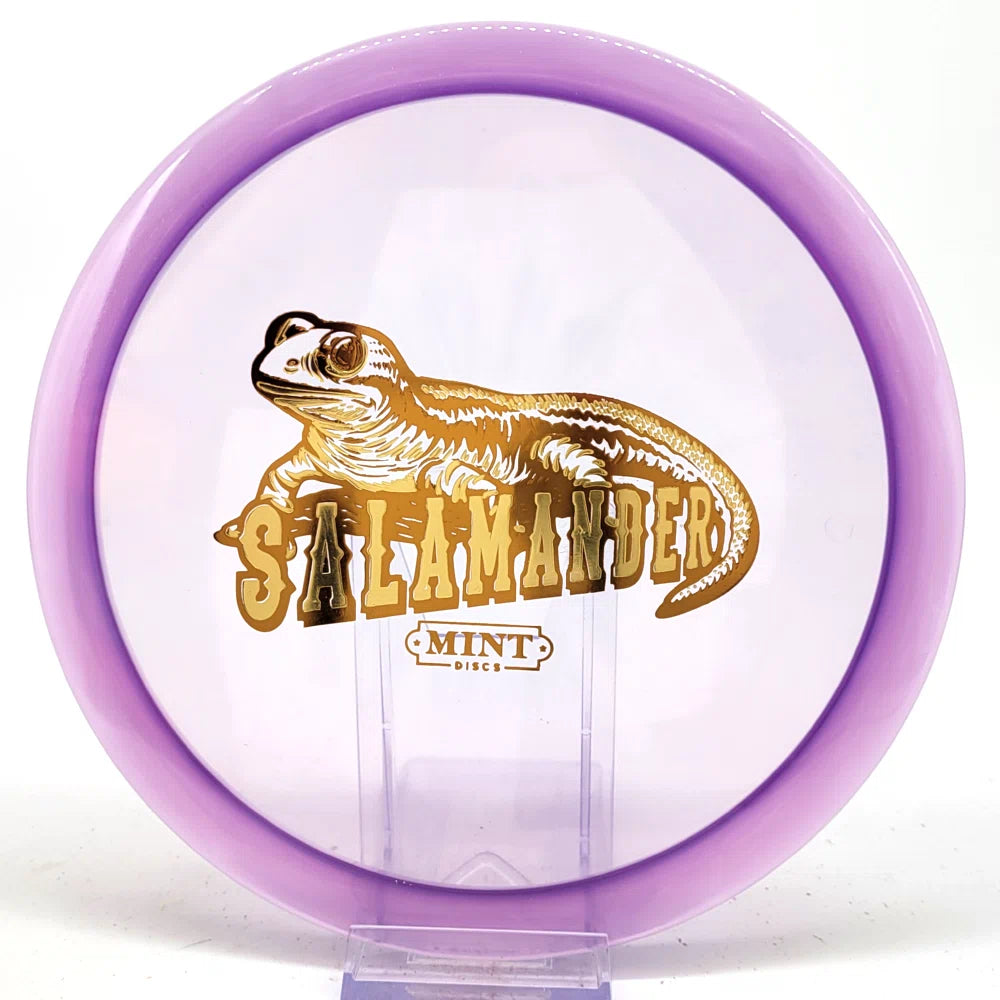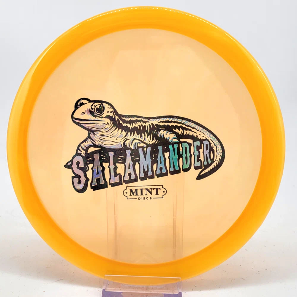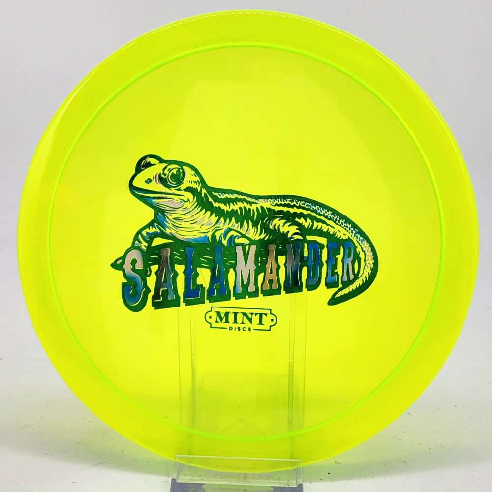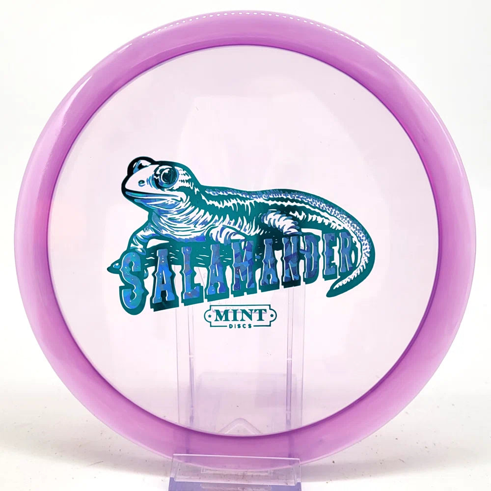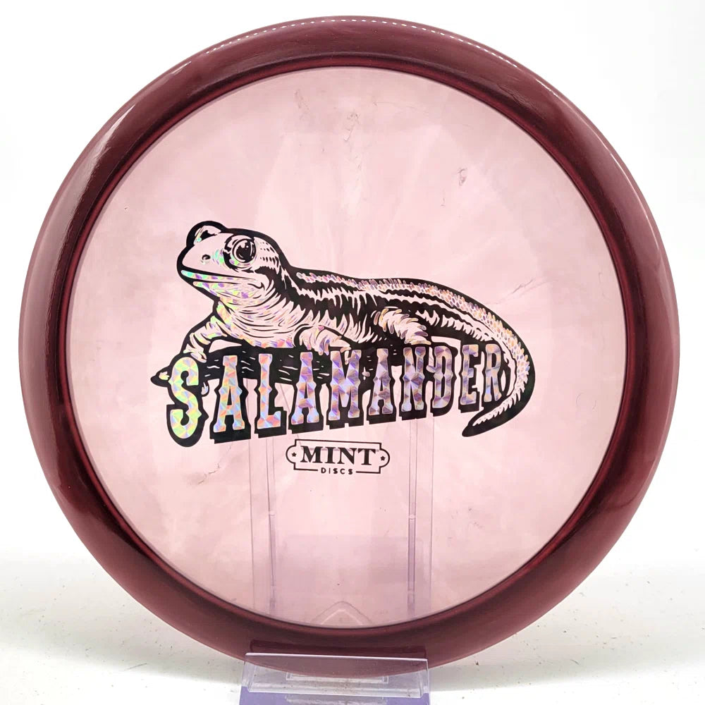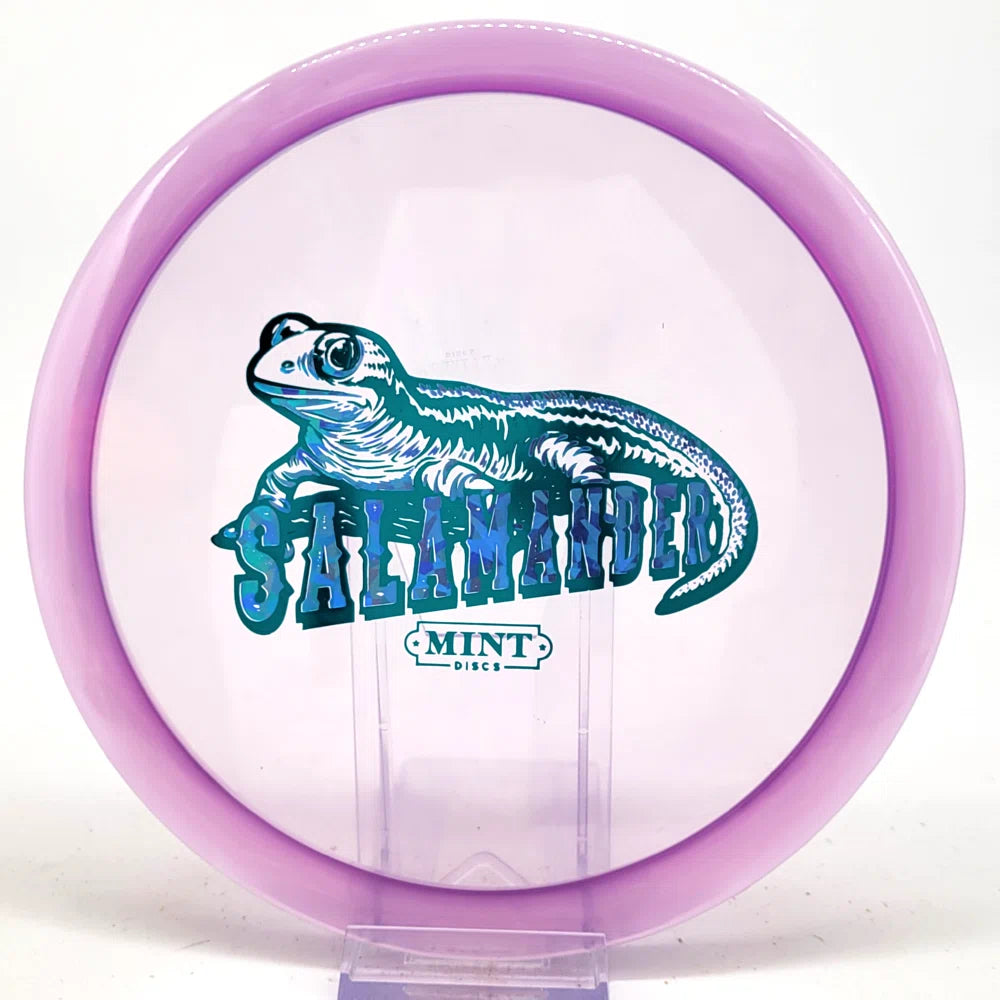 The Salamander is our slowest driver released to date. We call it a longer Lobster. It's going to be similar to the Jackalope but with more glide and a smaller rim. This makes it easy to throw on backhand and ideal for players with lower arm speeds that need to shape shots. For higher power players, this should be a reliable flip and glide disc for you.