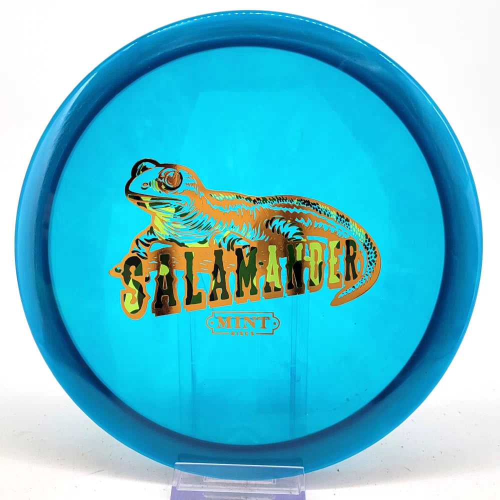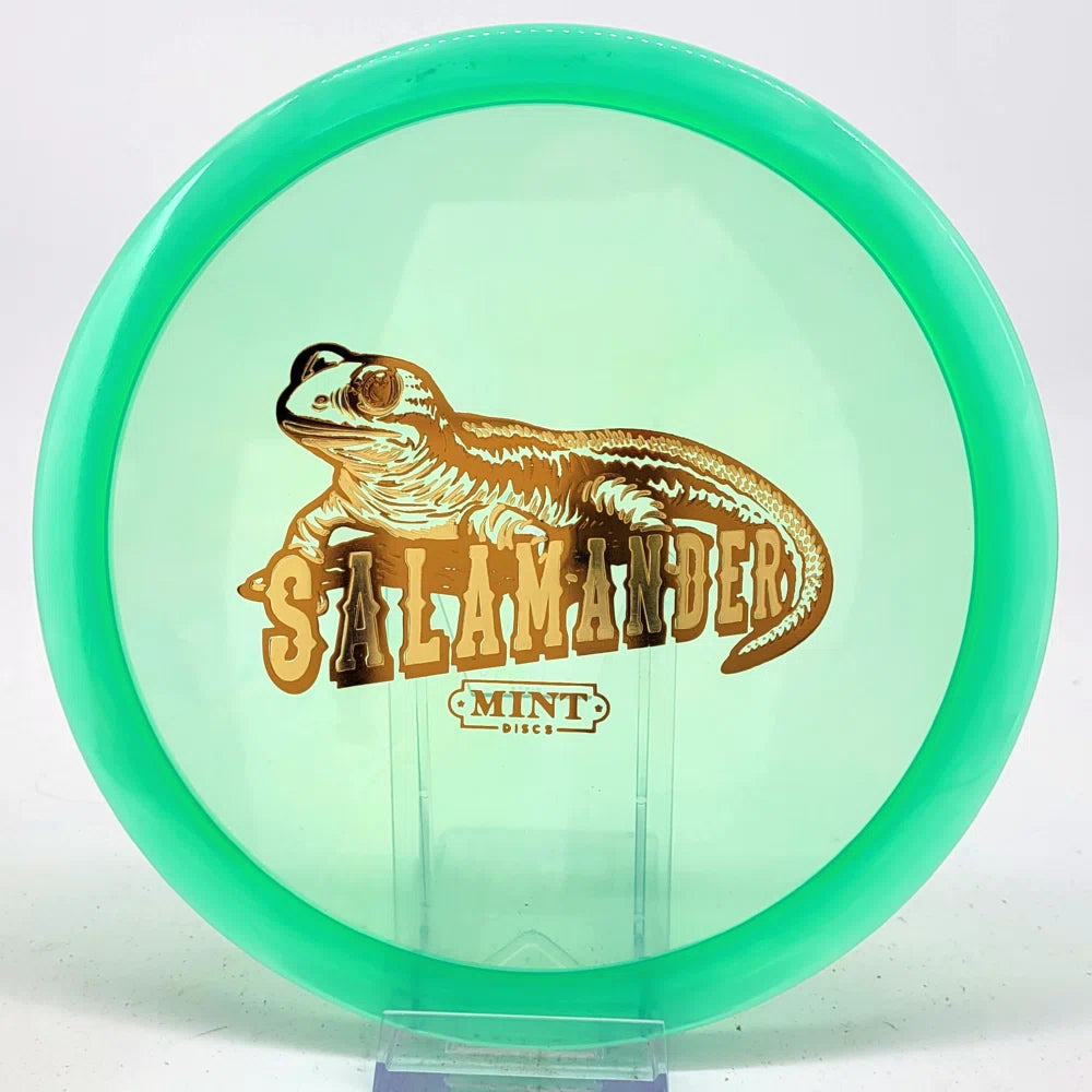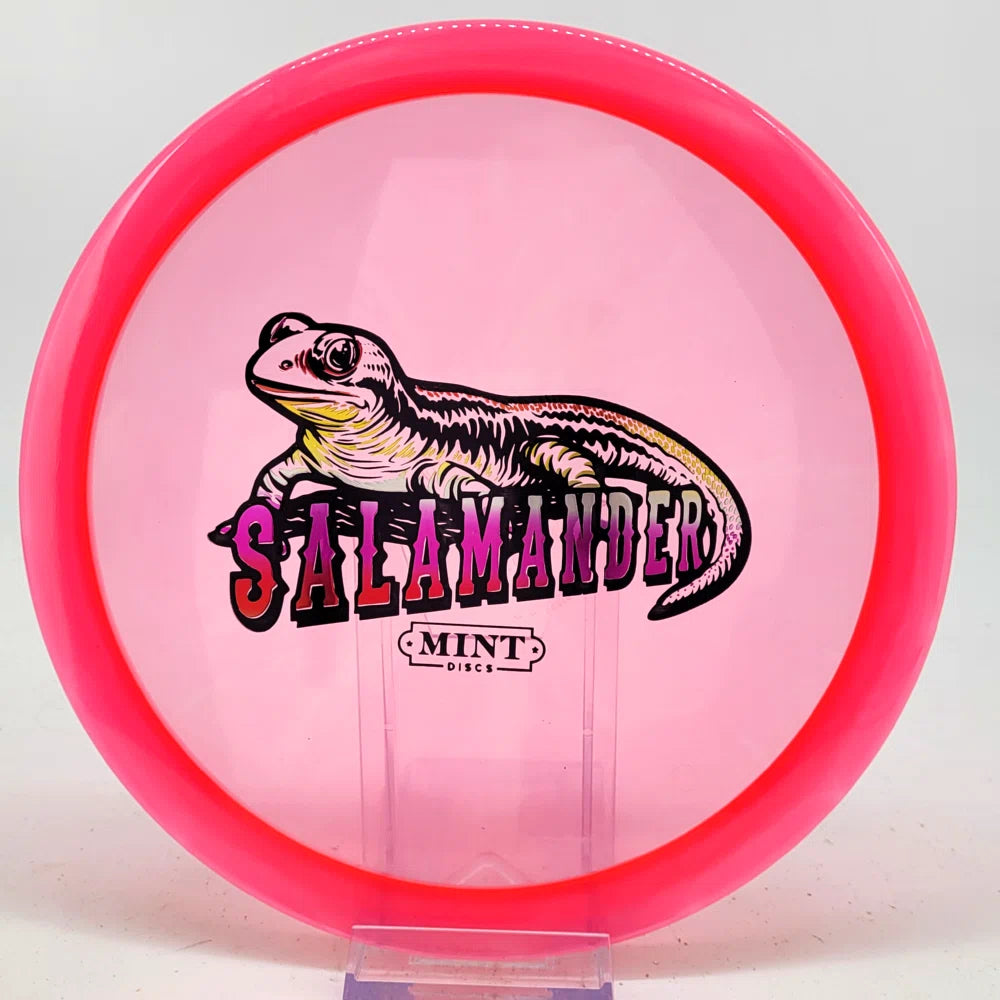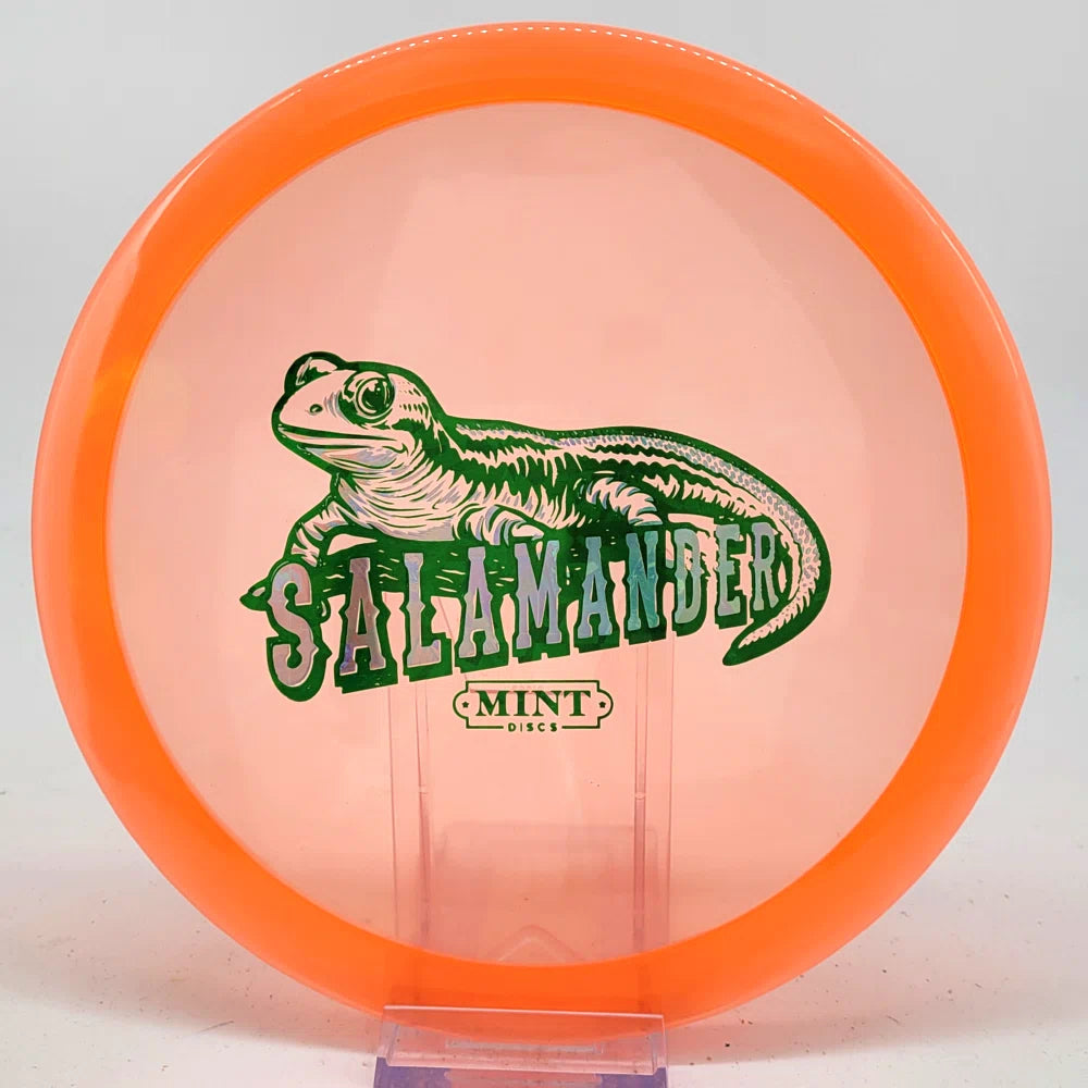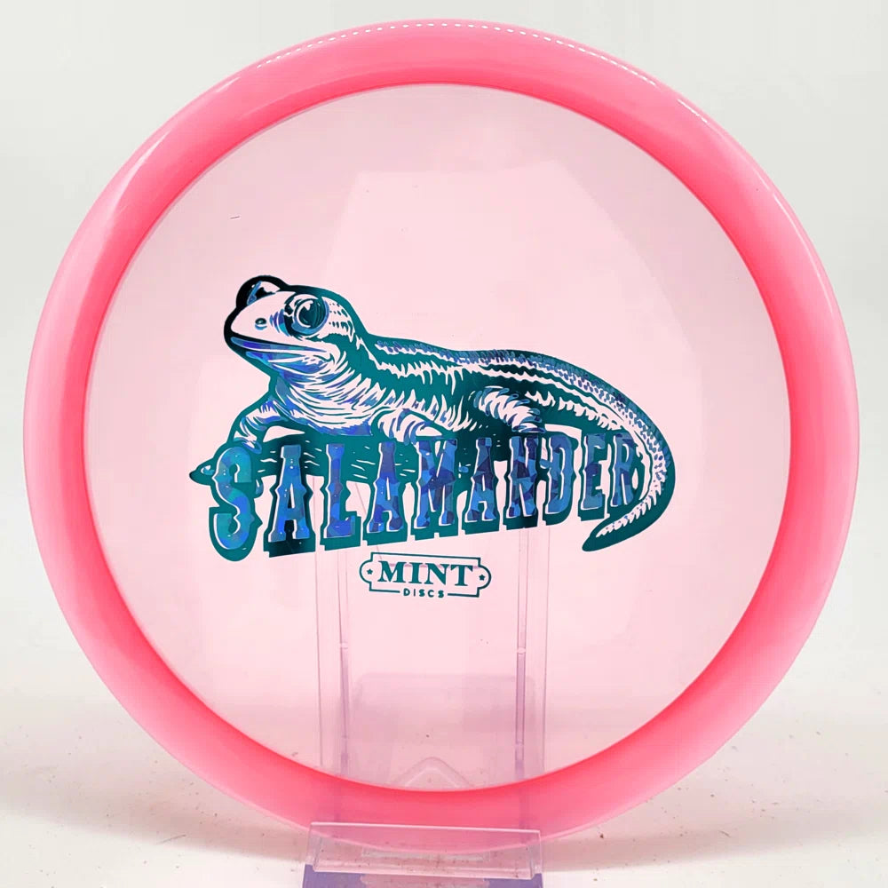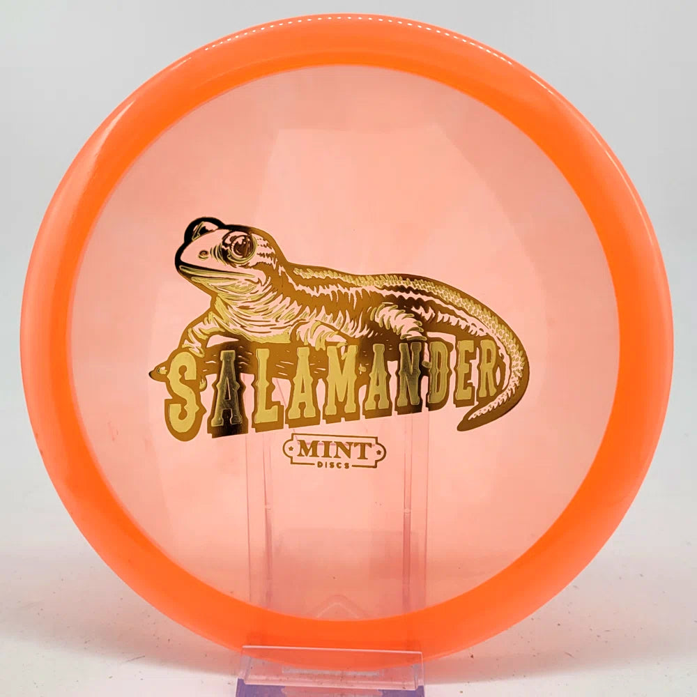 The Salamander is our slowest driver released to date. We call it a longer Lobster. It's going to be similar to the Jackalope but with more glide and a smaller rim. This makes it easy to throw on backhand and ideal for players with lower arm speeds that need to shape shots. For higher power players, this should be a reliable flip and glide disc for you.
