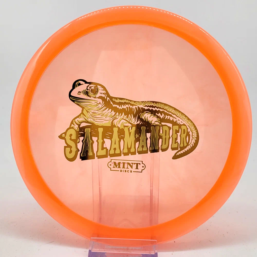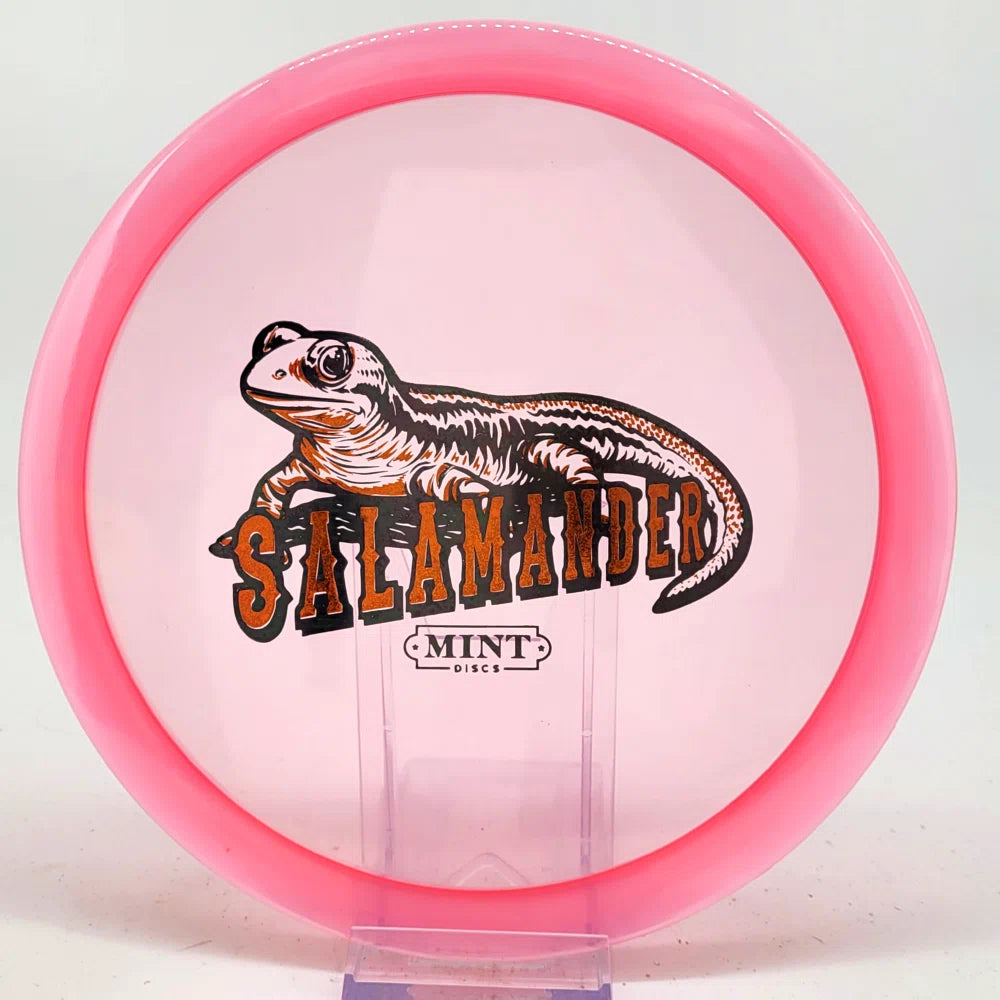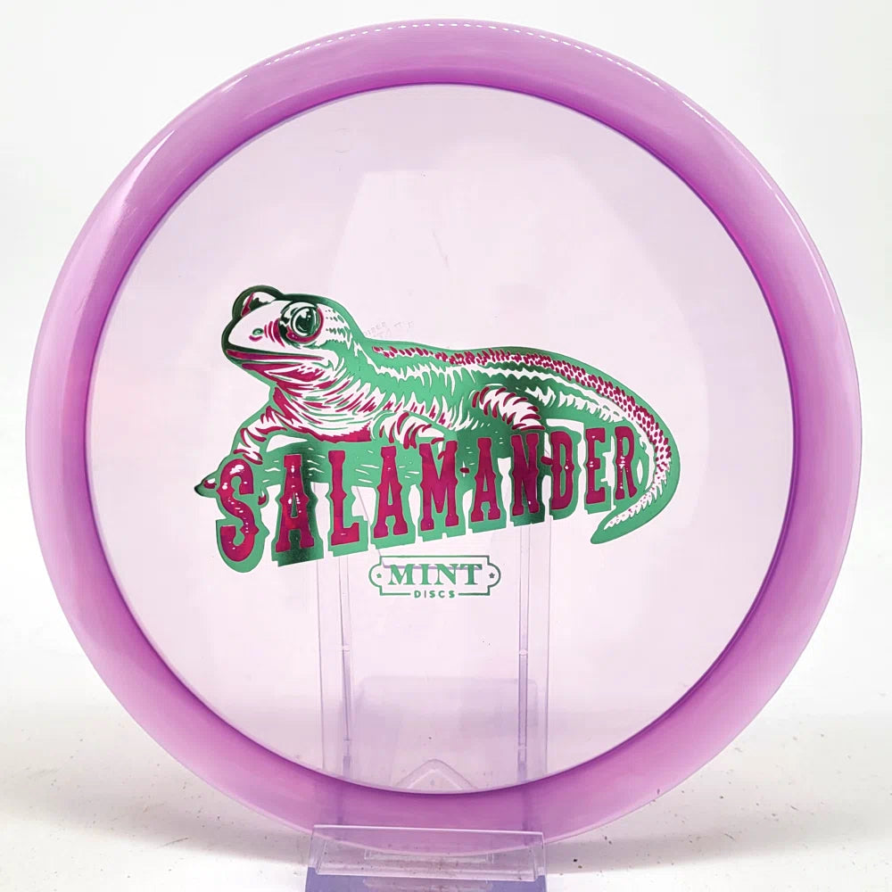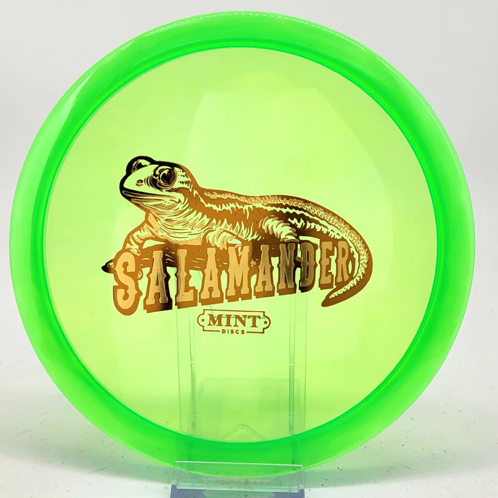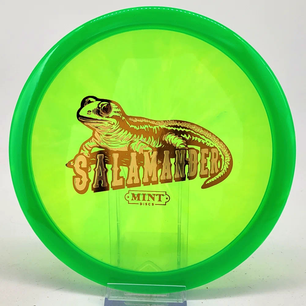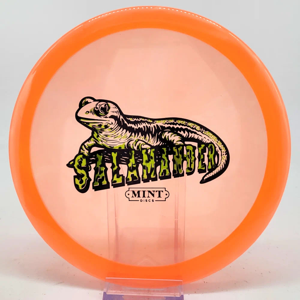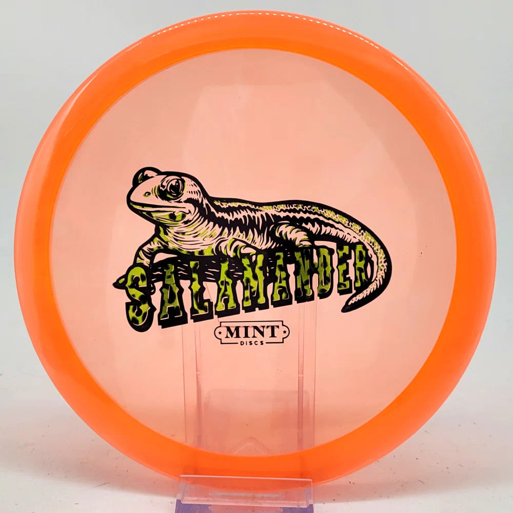 The Salamander is our slowest driver released to date. We call it a longer Lobster. It's going to be similar to the Jackalope but with more glide and a smaller rim. This makes it easy to throw on backhand and ideal for players with lower arm speeds that need to shape shots. For higher power players, this should be a reliable flip and glide disc for you.