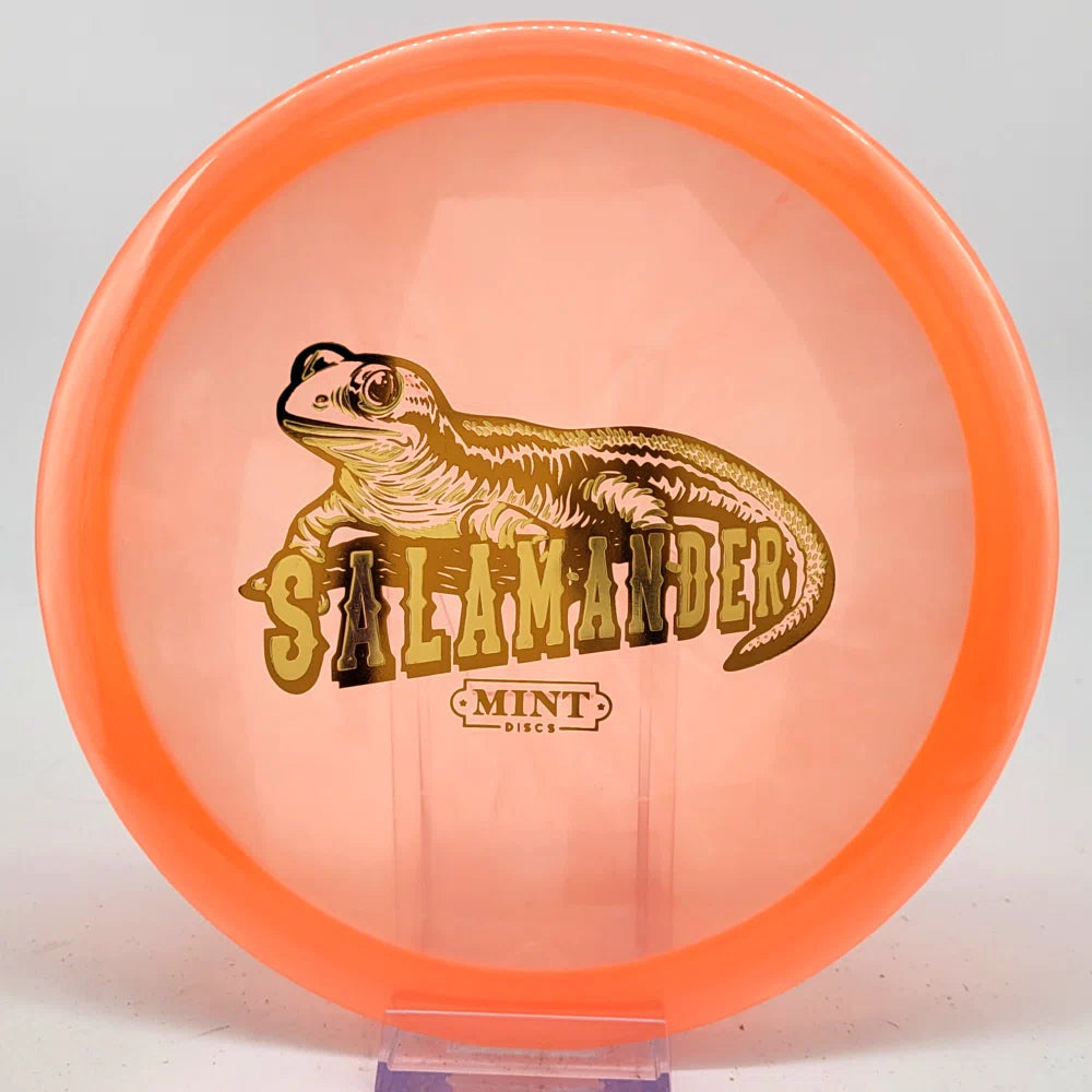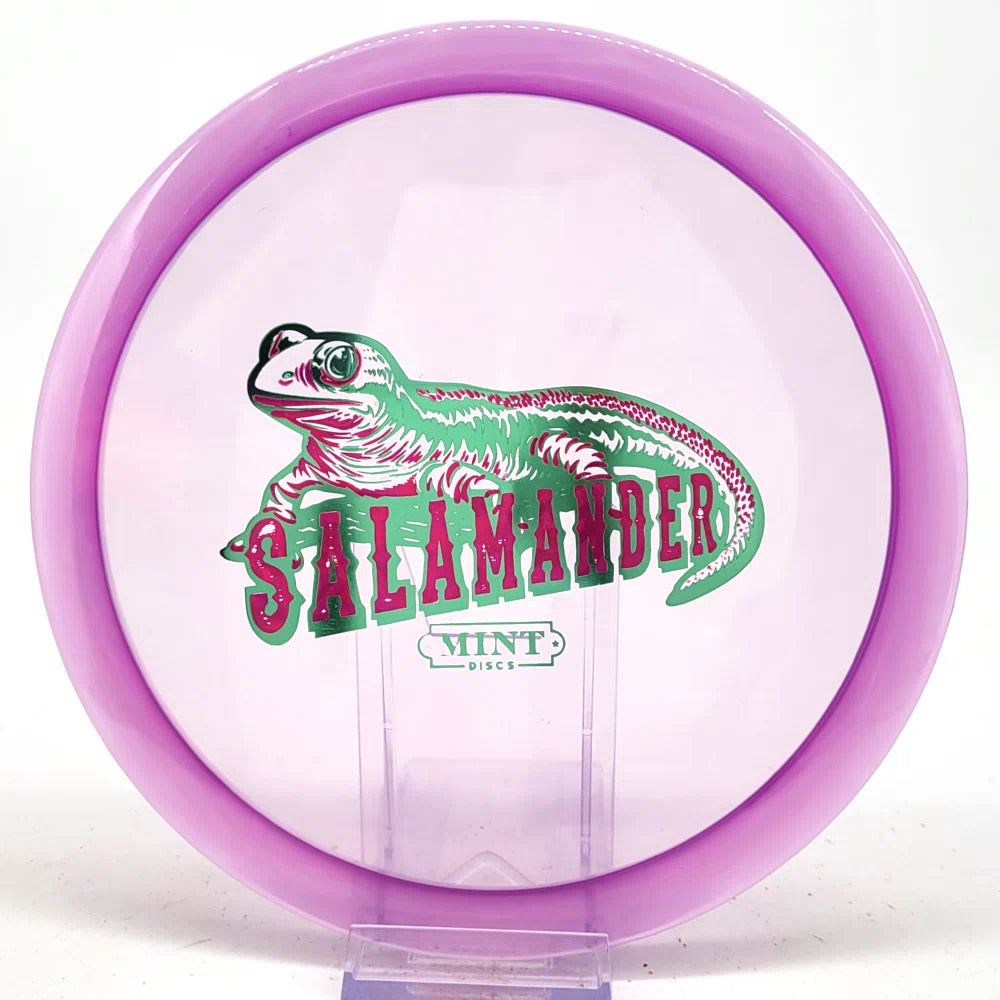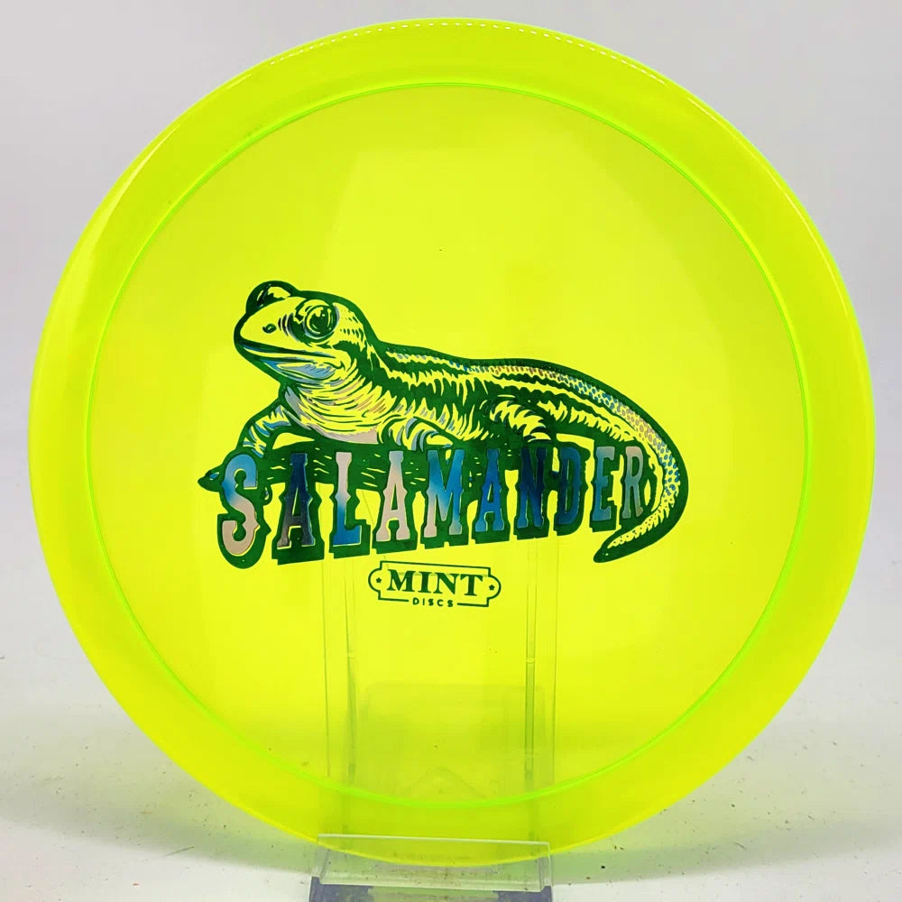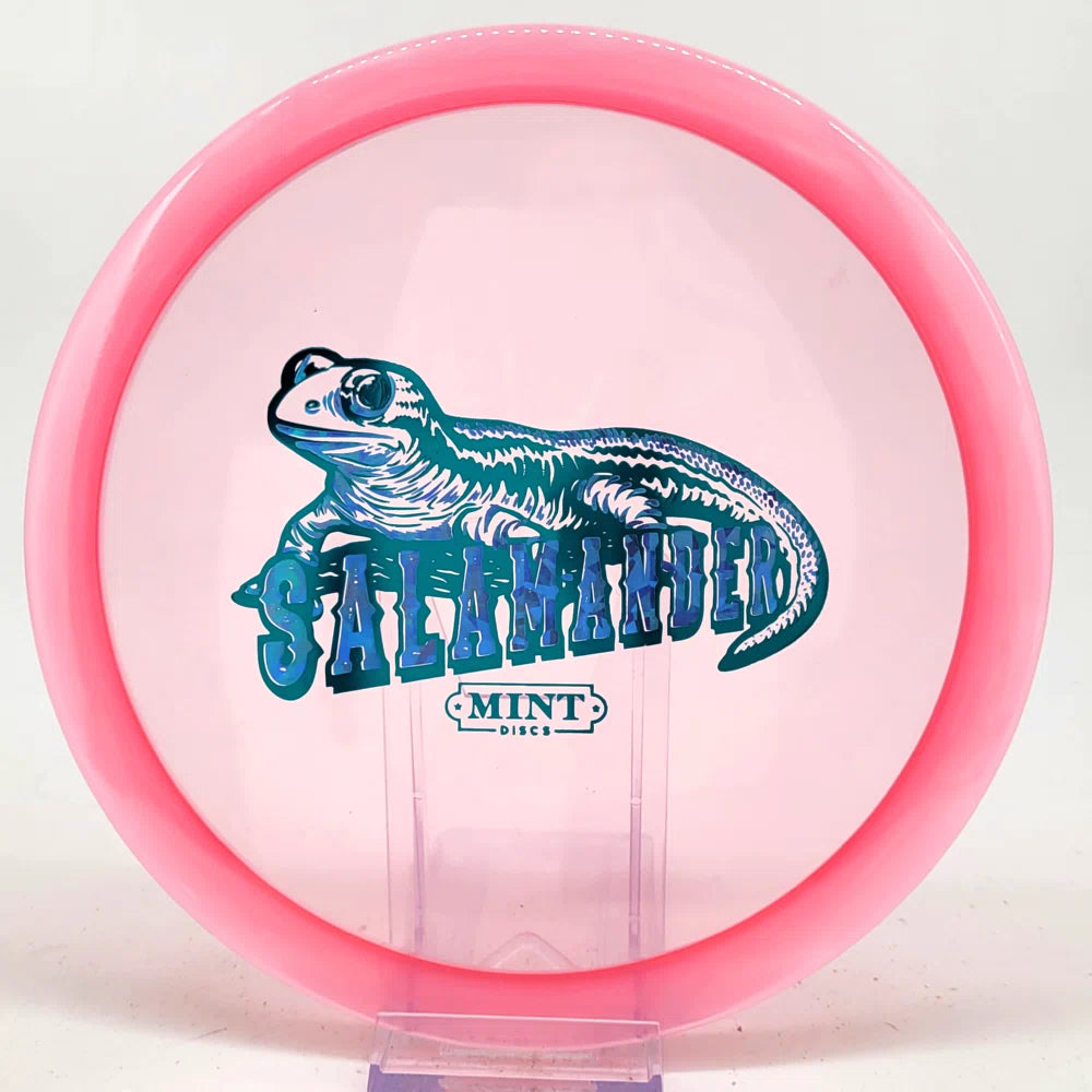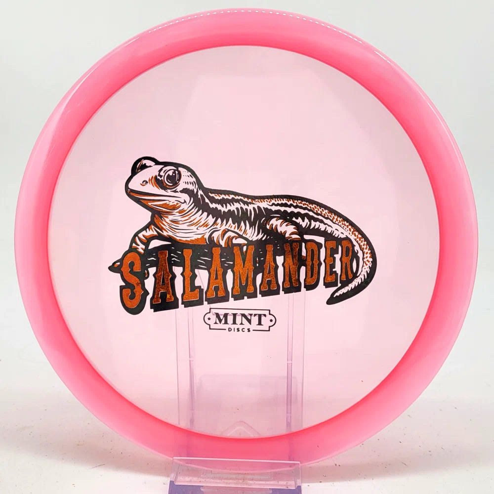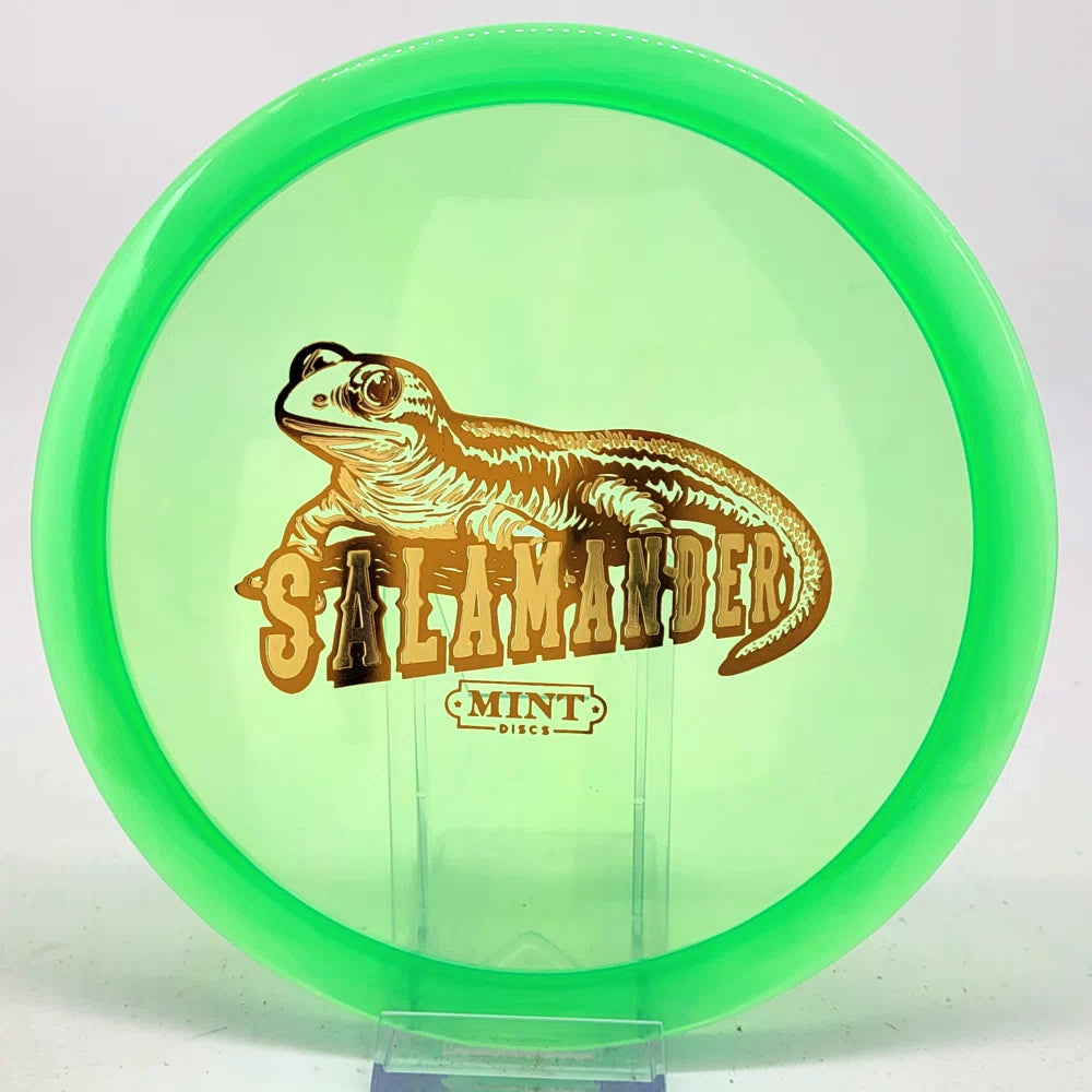 The Salamander is our slowest driver released to date. We call it a longer Lobster. It's going to be similar to the Jackalope but with more glide and a smaller rim. This makes it easy to throw on backhand and ideal for players with lower arm speeds that need to shape shots. For higher power players, this should be a reliable flip and glide disc for you.