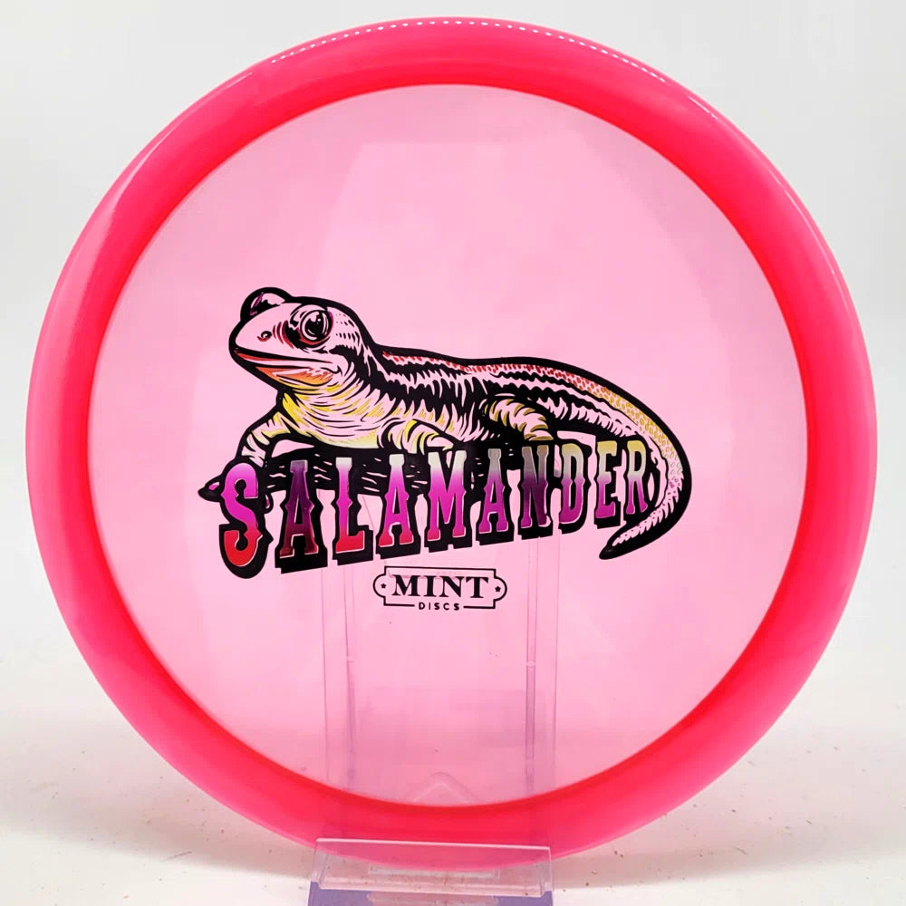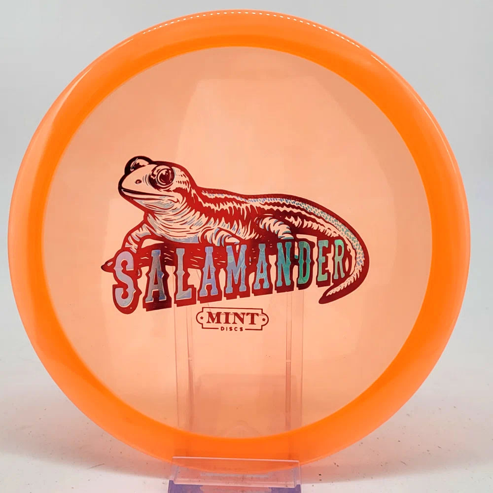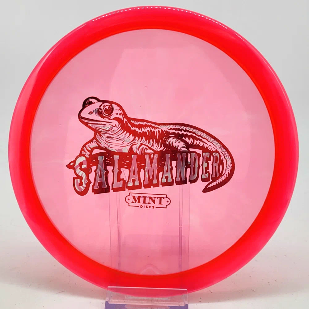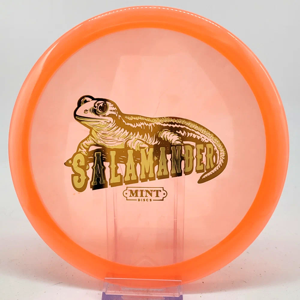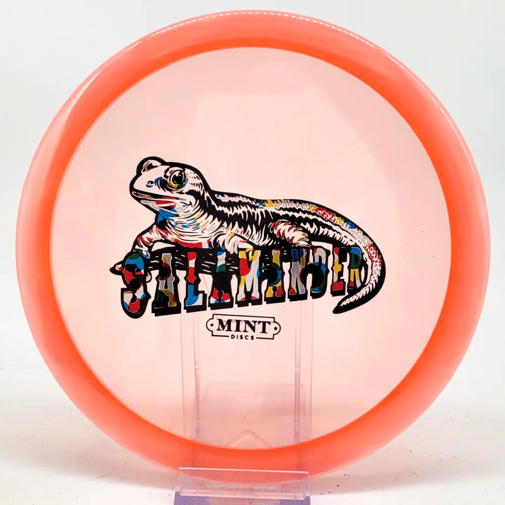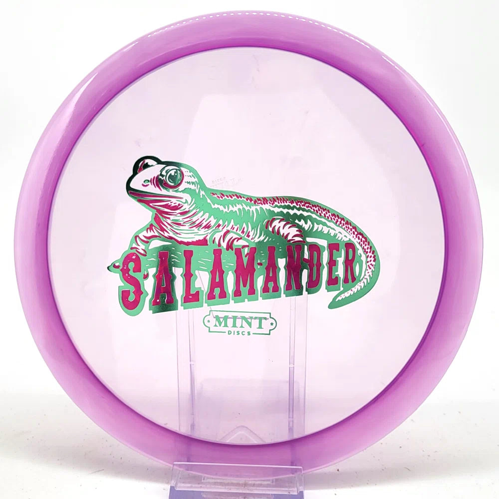The Salamander is our slowest driver released to date. We call it a longer Lobster. It's going to be similar to the Jackalope but with more glide and a smaller rim. This makes it easy to throw on backhand and ideal for players with lower arm speeds that need to shape shots. For higher power players, this should be a reliable flip and glide disc for you.
