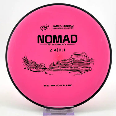 Designed by the World Champion himself — the Nomad has everything James Conrad desires in a putter. From the depth and shoulder height, all the way down to the size of the small bead — the Nomad is James’ vision of an ideal putter. Expect a neutral flight inside the Circle, with some fade kicking in at Circle 2 — making the Nomad great at holding anhyzer or hyzer angles when need be. Off the tee, the Nomad’s straight-stable flight will let throwers of all power levels experience confident, straight lines with just enough glide to stick under the basket — not blow past it.