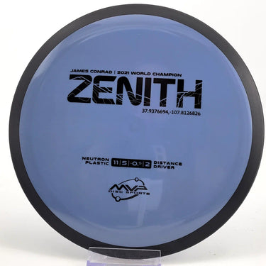 Designed to feel as great in the hand as it flies, the Zenith is a control distance driver with flight numbers of 11 | 5 | -0.5 | 2. With a high power throw, the Zenith will exhibit just enough distance lengthening turn from a flat release before its confident fade kicks in — displaying the ideal flight pattern for a controlled distance drive. And, thanks to its subtle turn, the Zenith can shape some truly impressive lines from an anhyzer release too. Lower power players will find the Zenith to be workably overstable and dependable into any kind of wind. We have a feeling this disc is going to end up in a lot of bags, so grab a Zenith today and see what the James Conrad Line is all about!