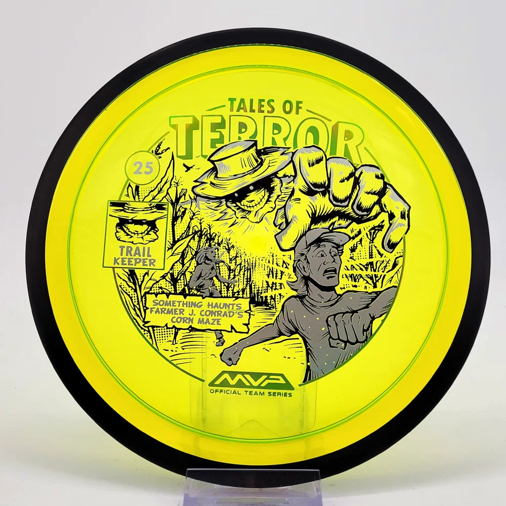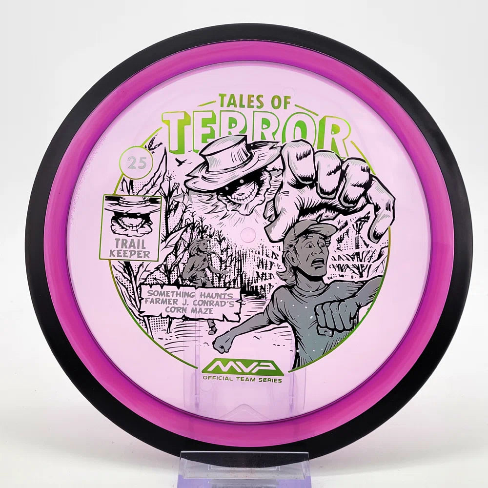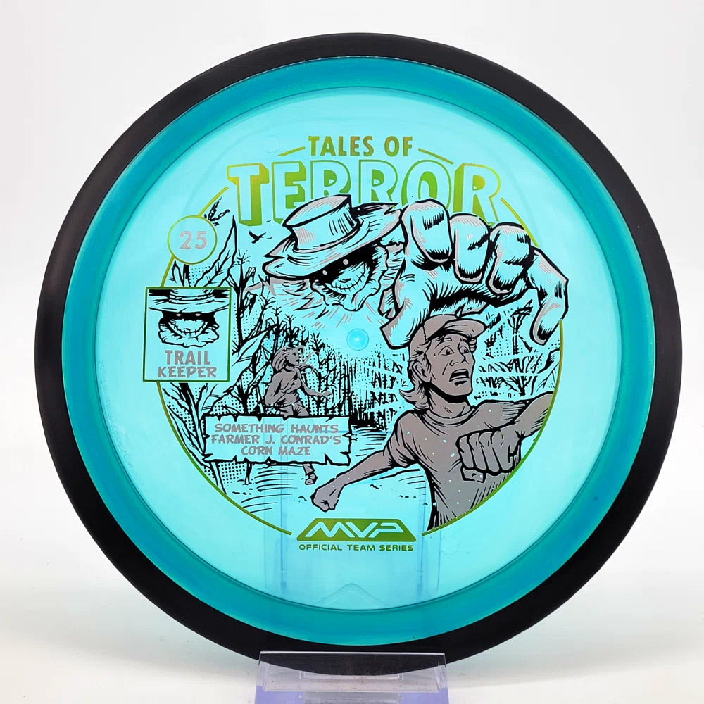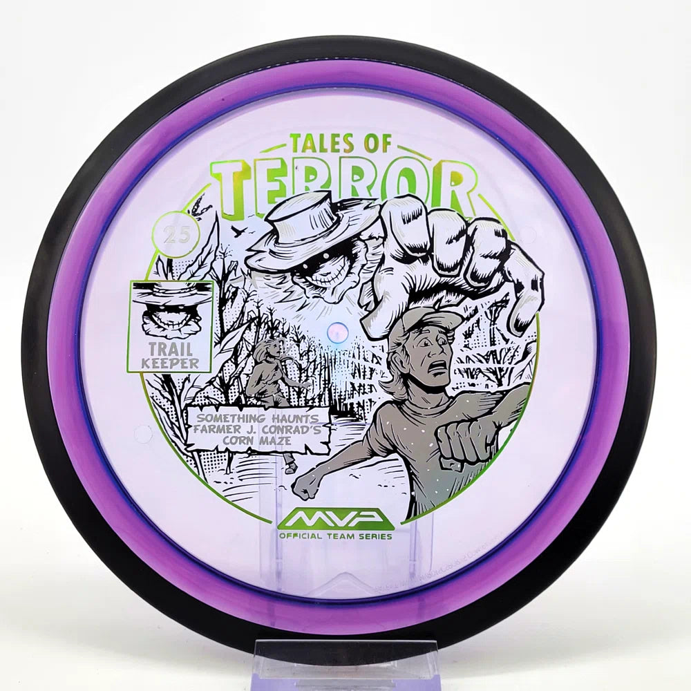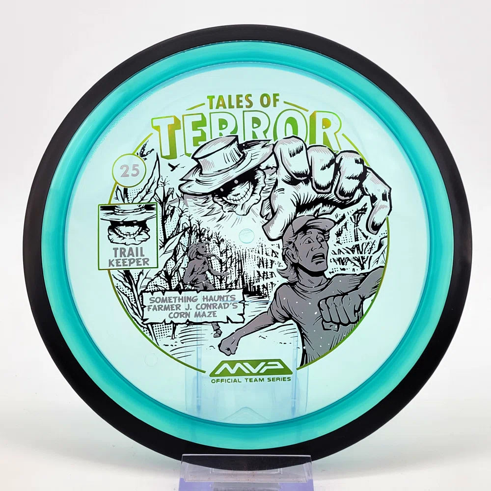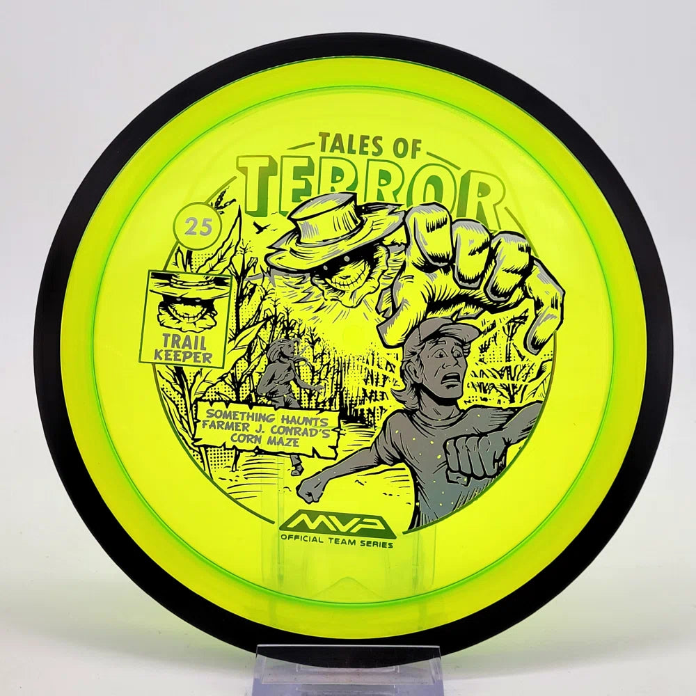 The highly requested fan favorite Proton Trail has returned! Green C Studio adorns this disc with a glimpse of the Trail Keeper haunting Conrad’s Corn Maze, a classic horror story. Excelling in hyzer-flip drives, turnovers, and straight shots, the Trail has become one of the most popular drivers in the MVP lineup that throwers of all power levels will find significant use for.
