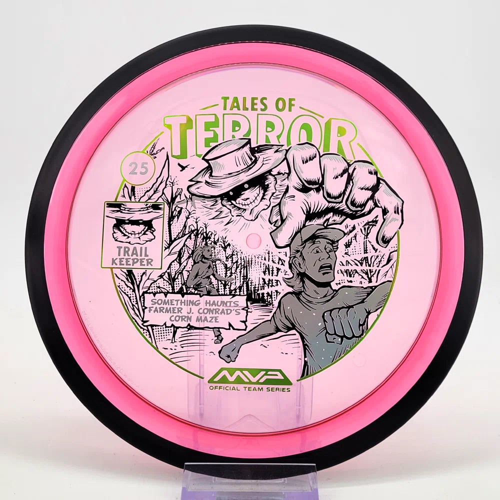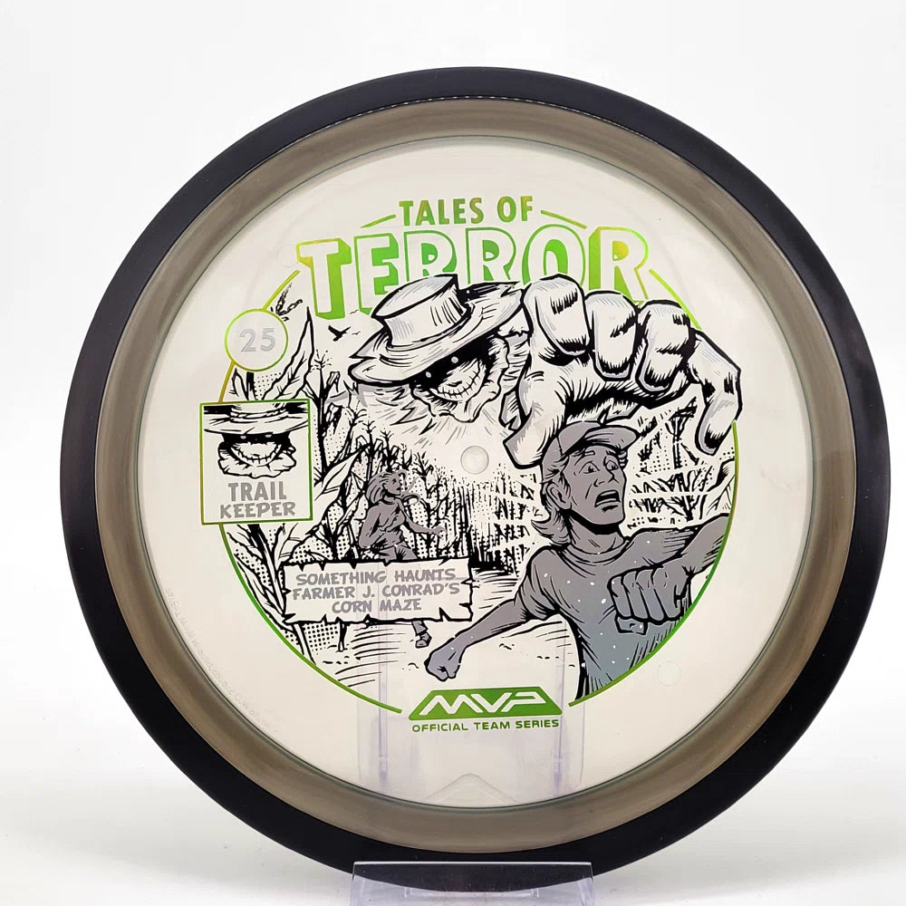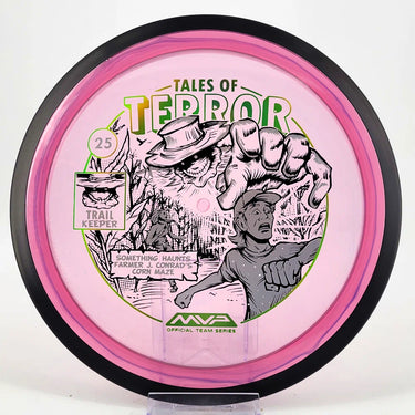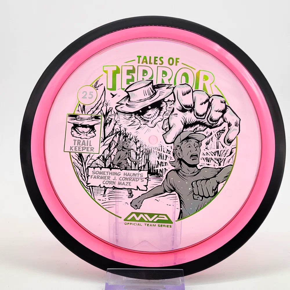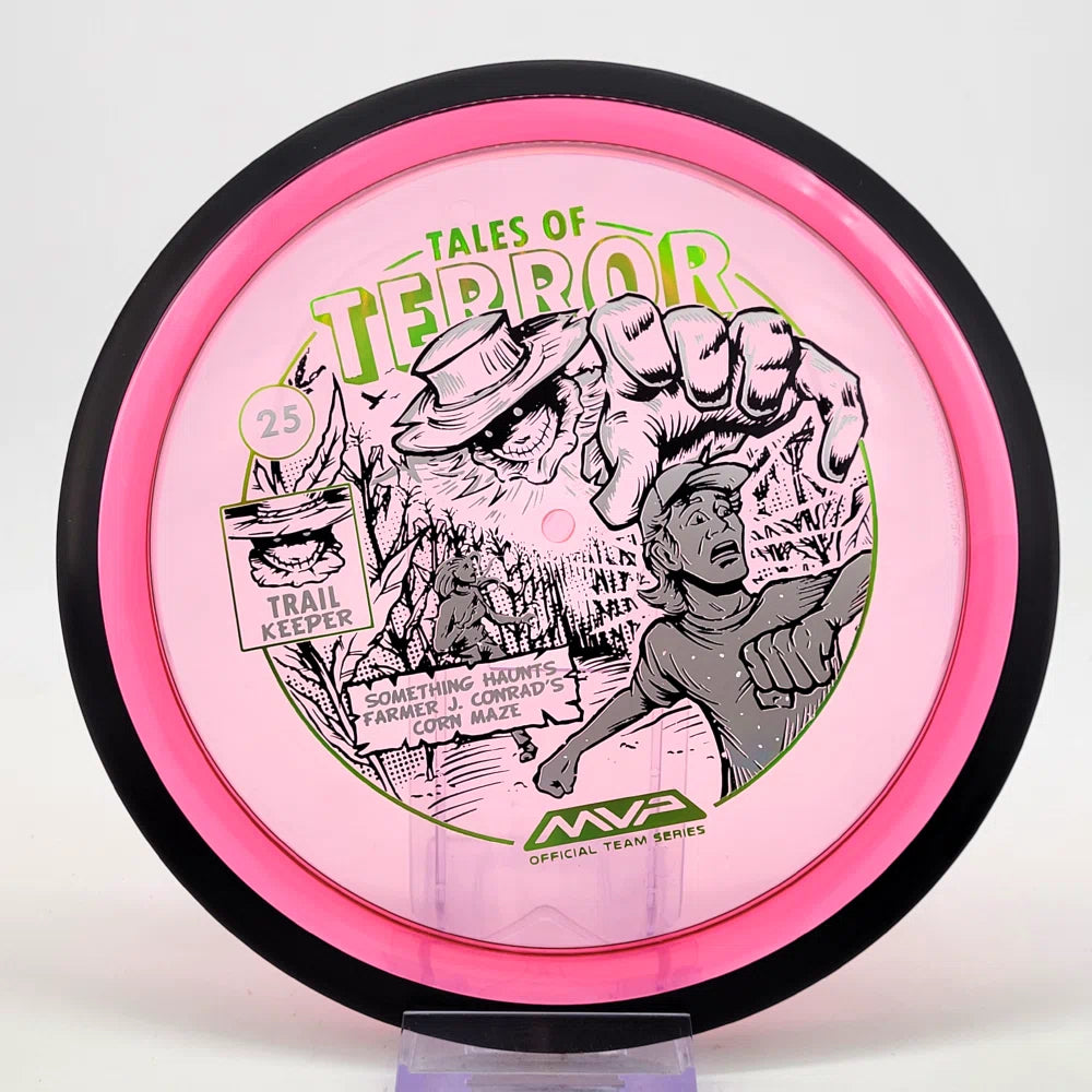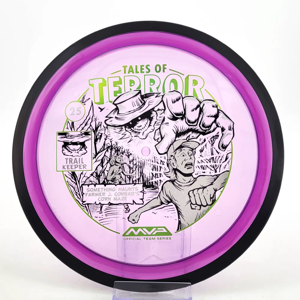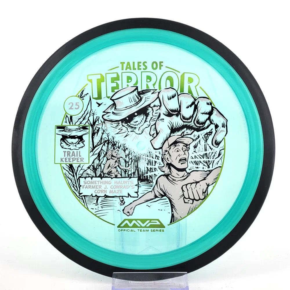 The highly requested fan favorite Proton Trail has returned! Green C Studio adorns this disc with a glimpse of the Trail Keeper haunting Conrad’s Corn Maze, a classic horror story. Excelling in hyzer-flip drives, turnovers, and straight shots, the Trail has become one of the most popular drivers in the MVP lineup that throwers of all power levels will find significant use for.