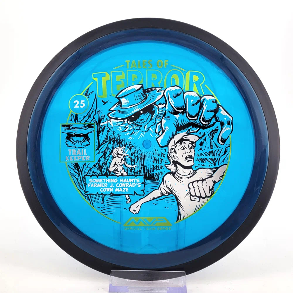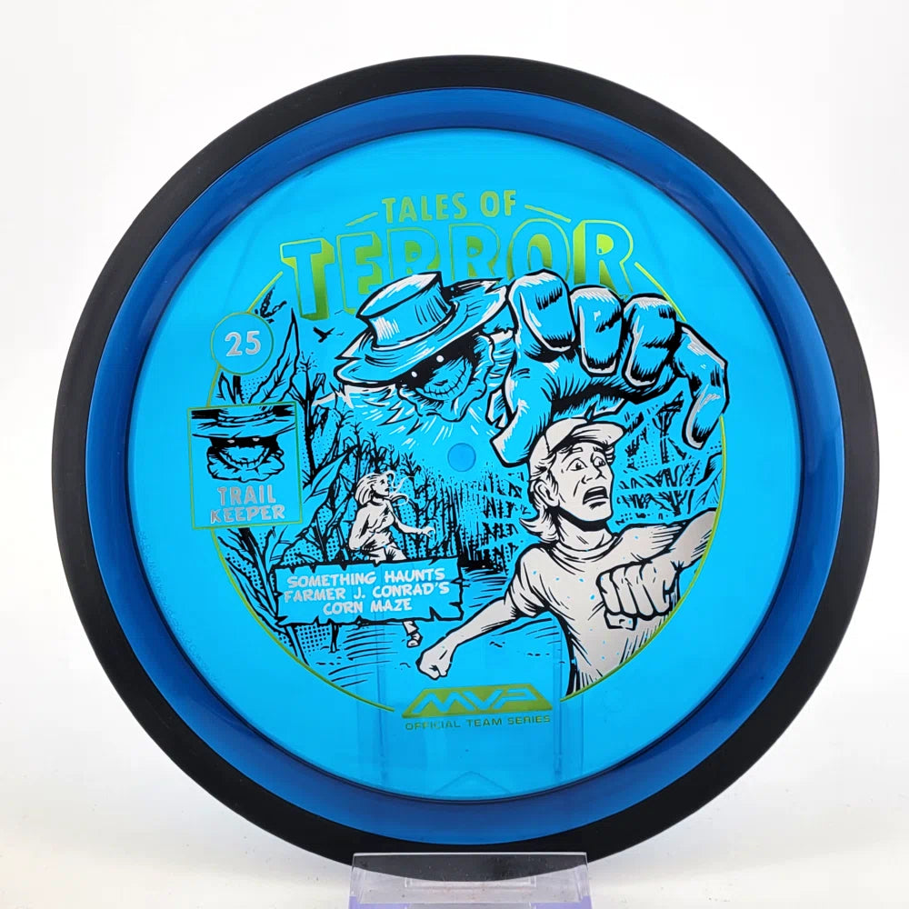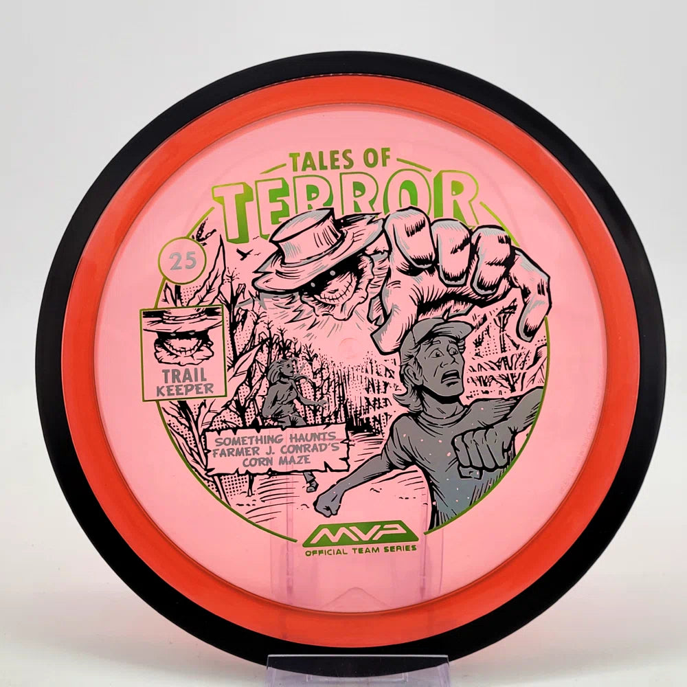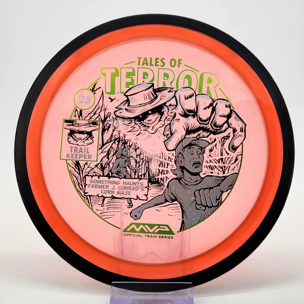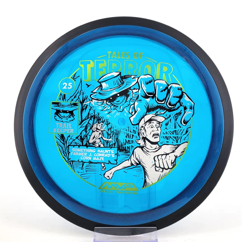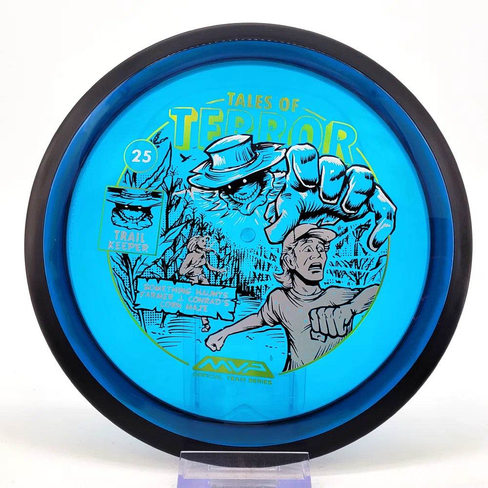 The highly requested fan favorite Proton Trail has returned! Green C Studio adorns this disc with a glimpse of the Trail Keeper haunting Conrad’s Corn Maze, a classic horror story. Excelling in hyzer-flip drives, turnovers, and straight shots, the Trail has become one of the most popular drivers in the MVP lineup that throwers of all power levels will find significant use for.