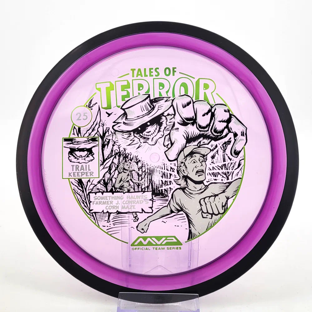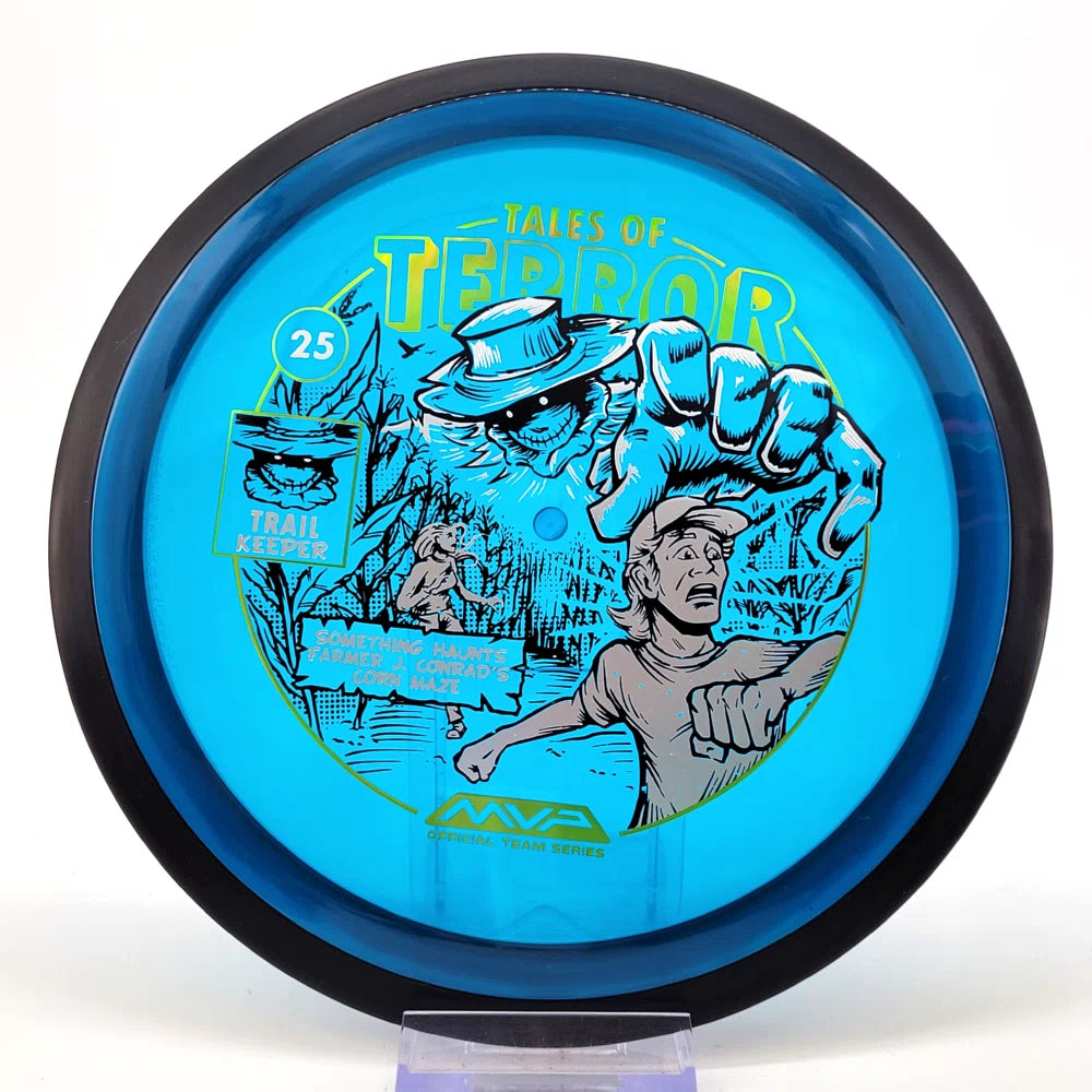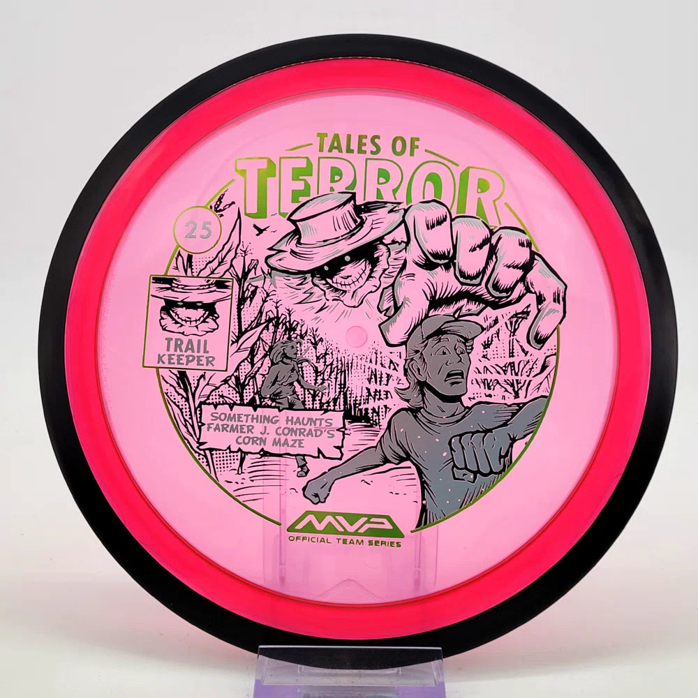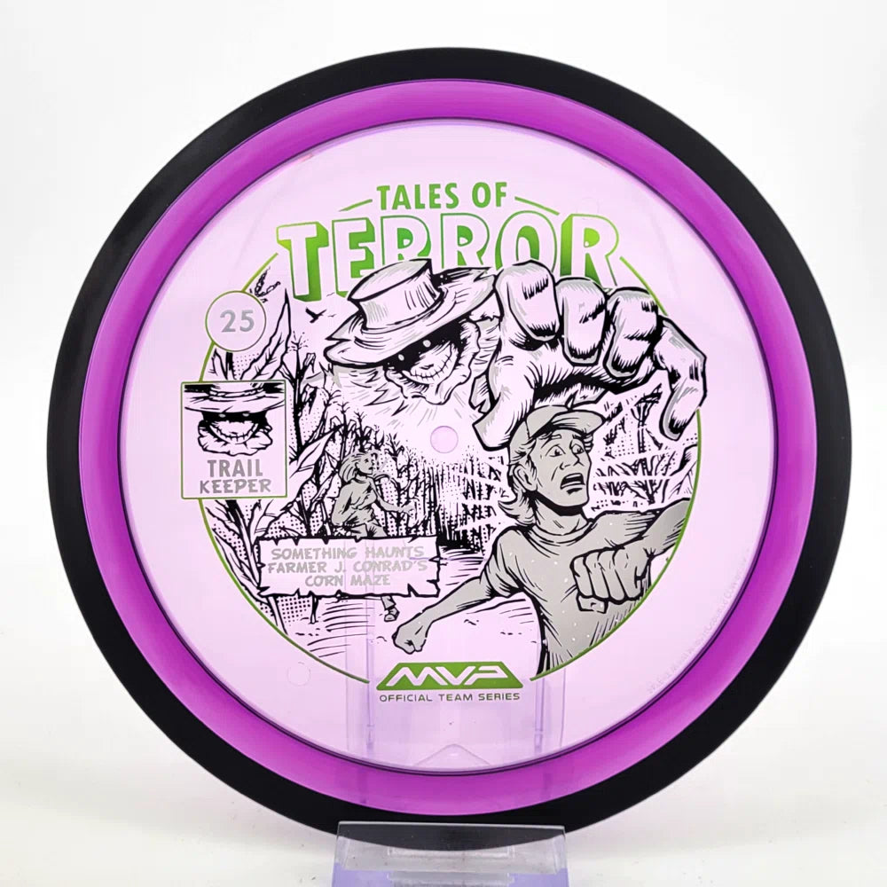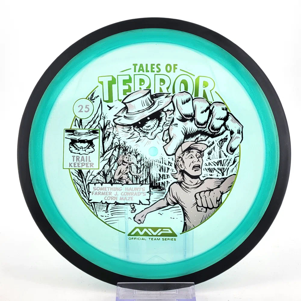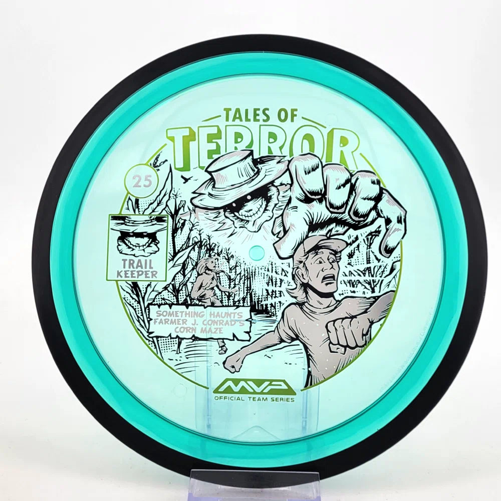 The highly requested fan favorite Proton Trail has returned! Green C Studio adorns this disc with a glimpse of the Trail Keeper haunting Conrad’s Corn Maze, a classic horror story. Excelling in hyzer-flip drives, turnovers, and straight shots, the Trail has become one of the most popular drivers in the MVP lineup that throwers of all power levels will find significant use for.