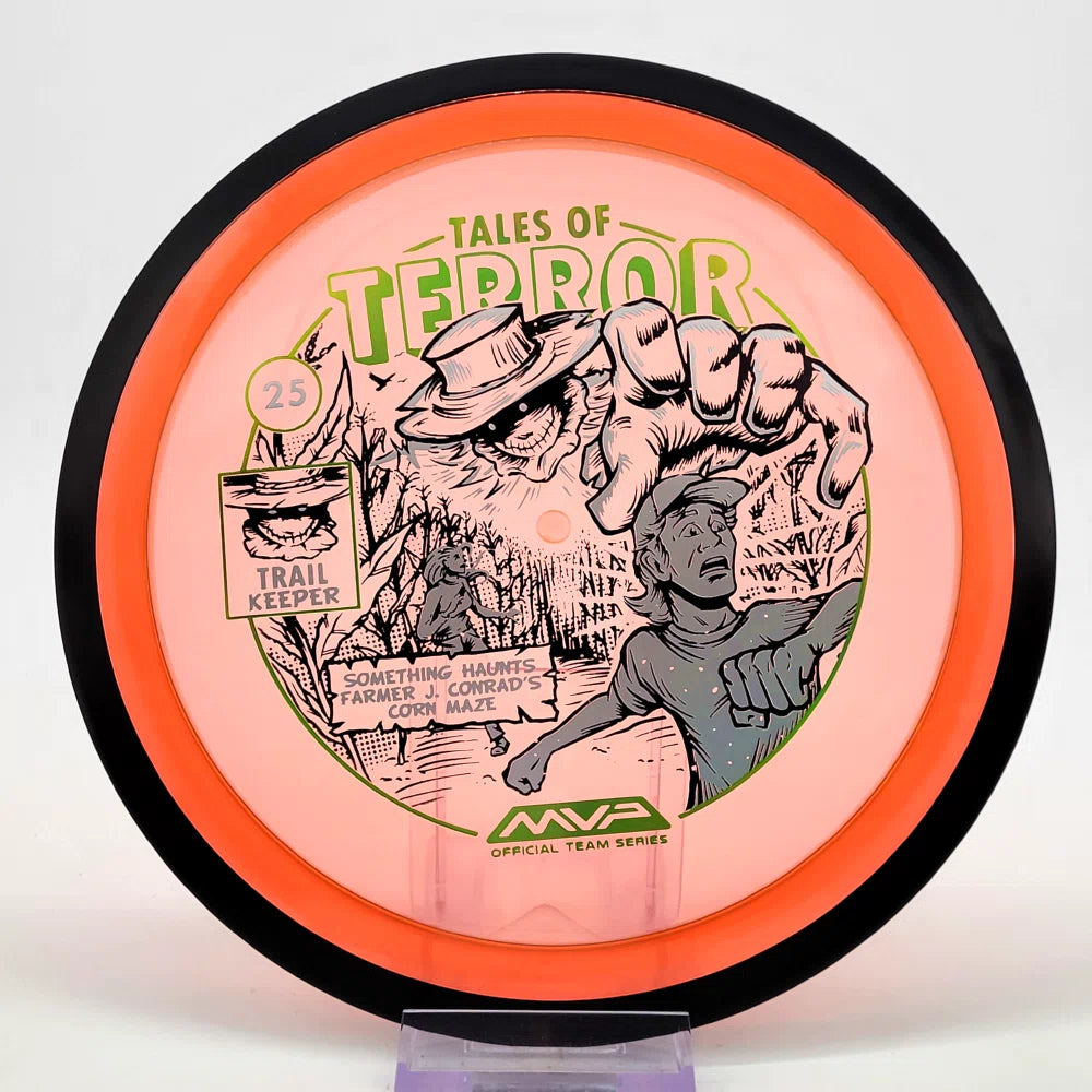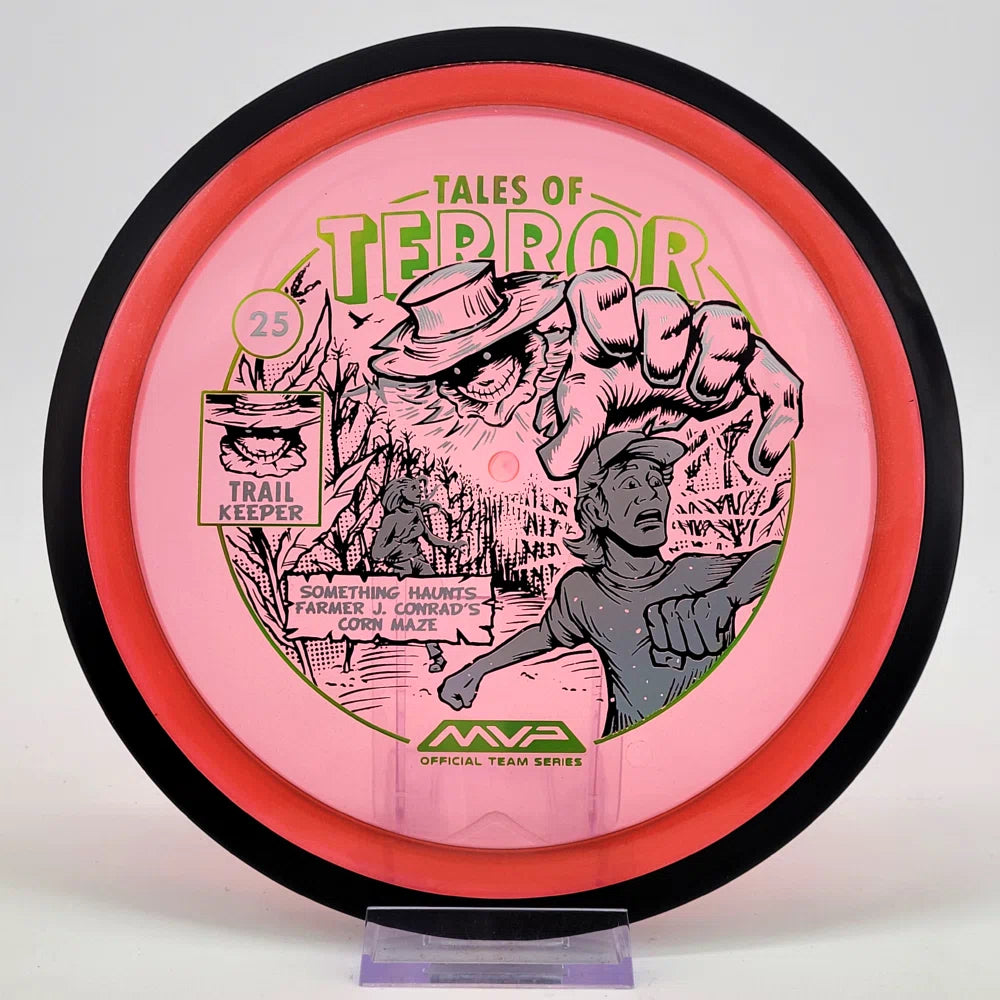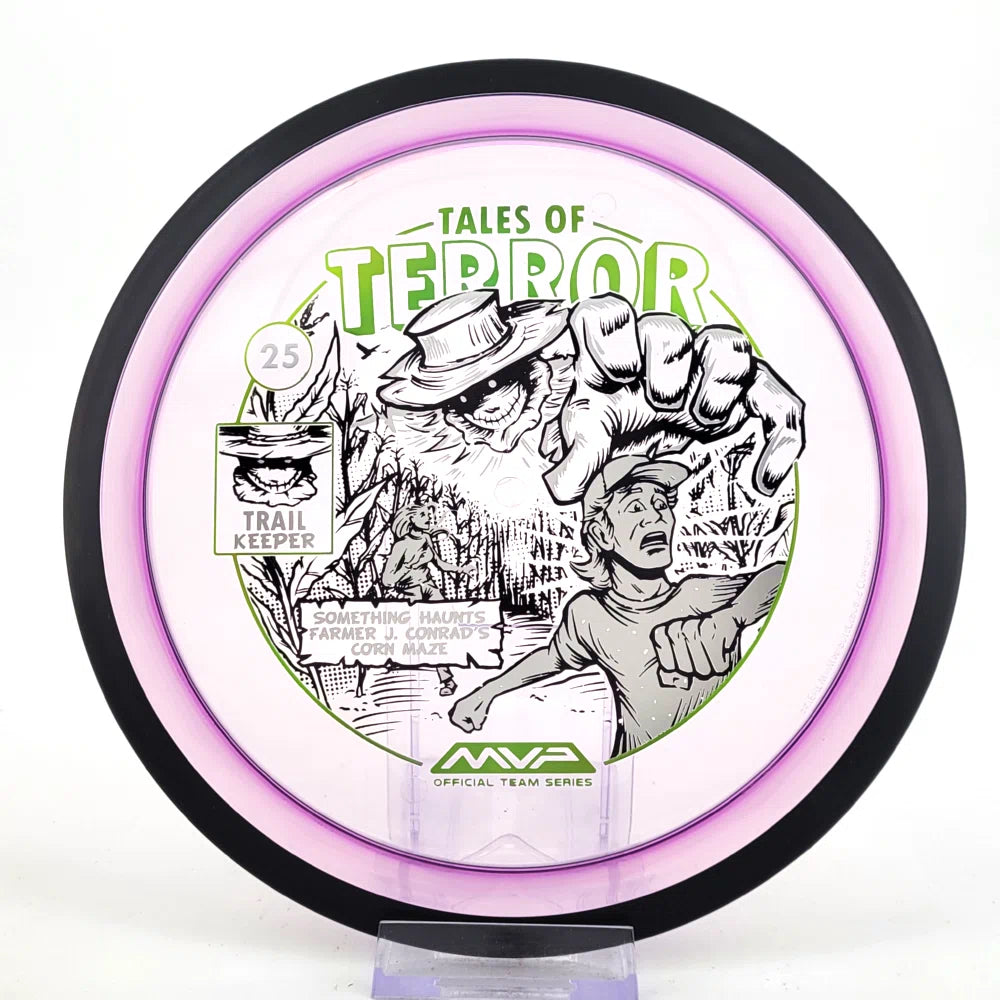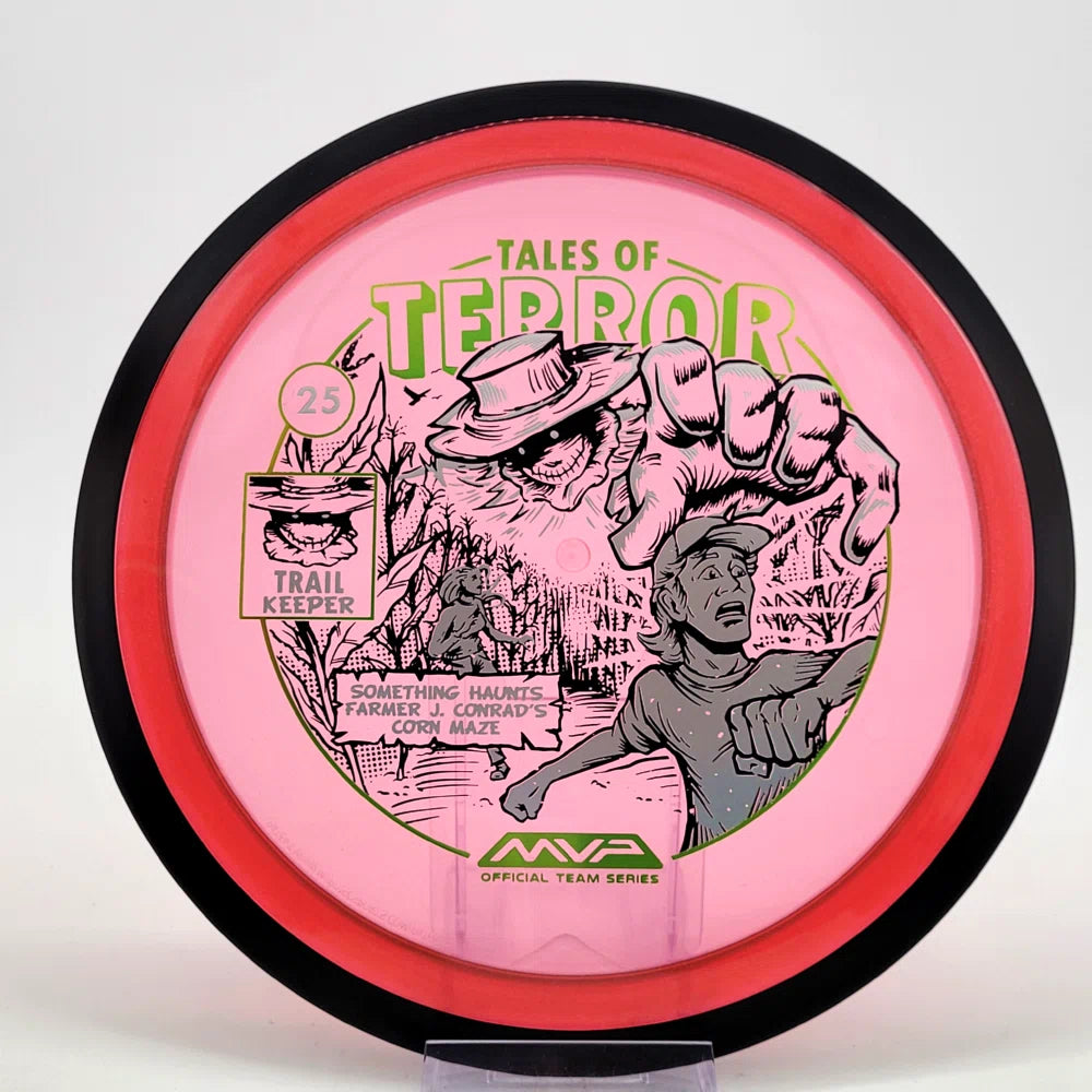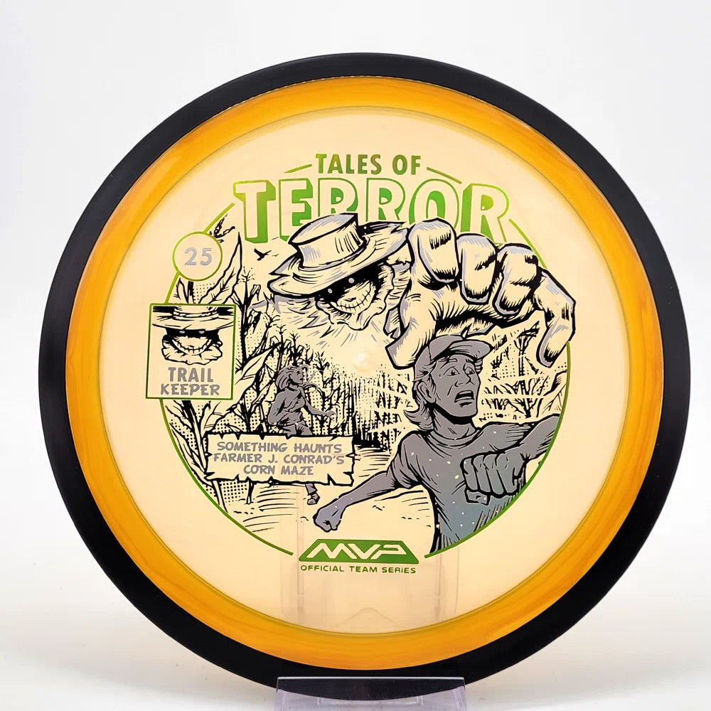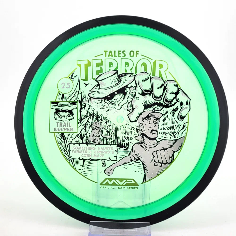 The highly requested fan favorite Proton Trail has returned! Green C Studio adorns this disc with a glimpse of the Trail Keeper haunting Conrad’s Corn Maze, a classic horror story. Excelling in hyzer-flip drives, turnovers, and straight shots, the Trail has become one of the most popular drivers in the MVP lineup that throwers of all power levels will find significant use for.