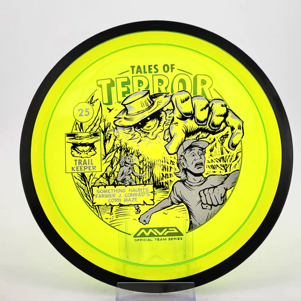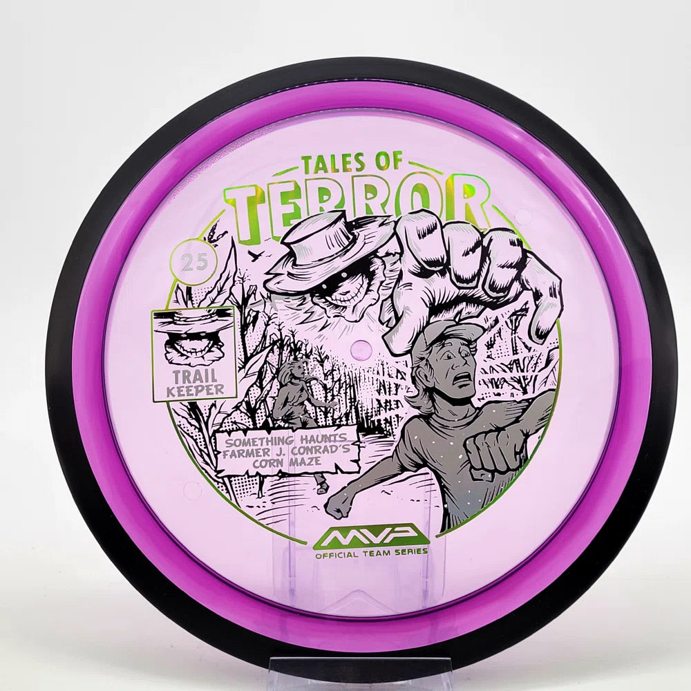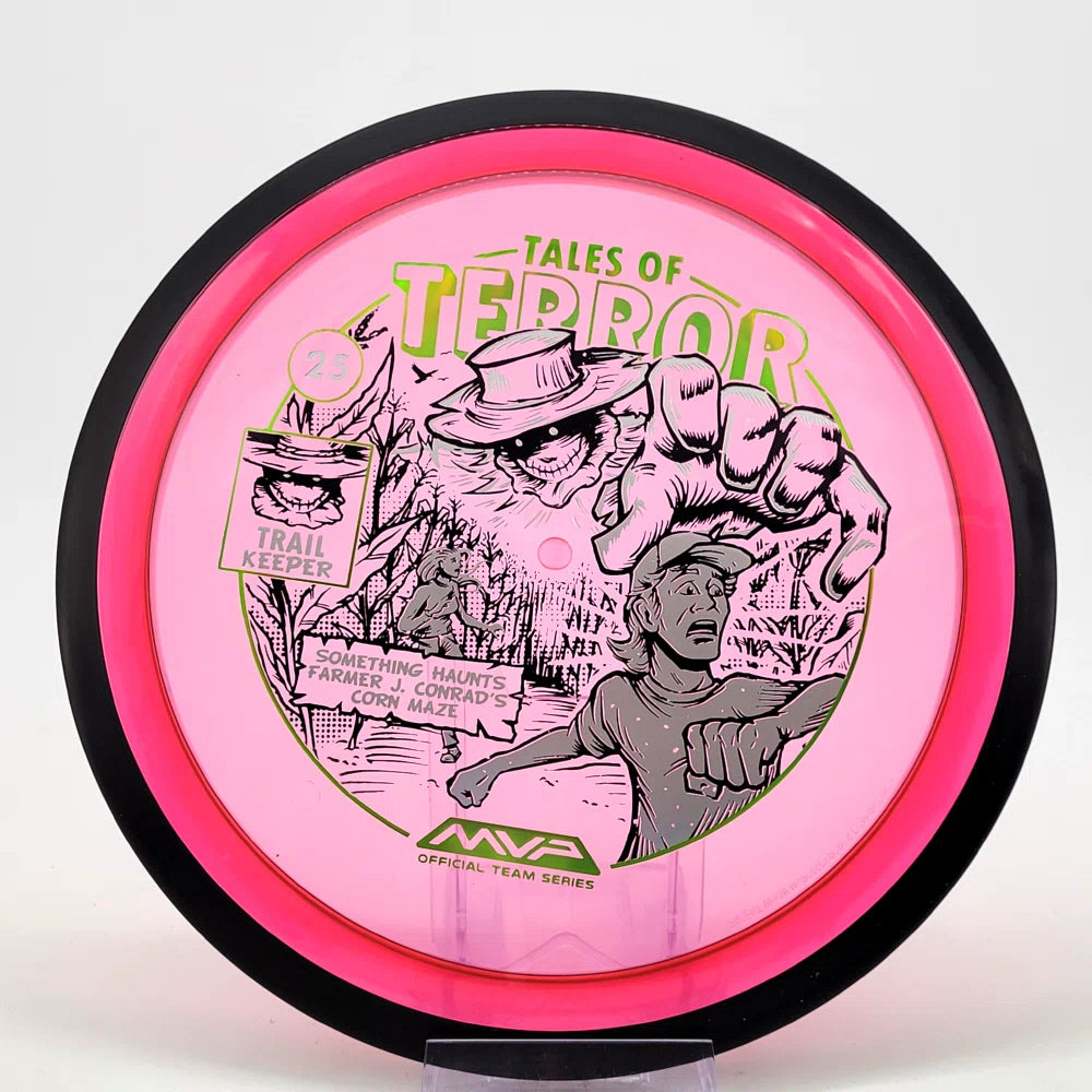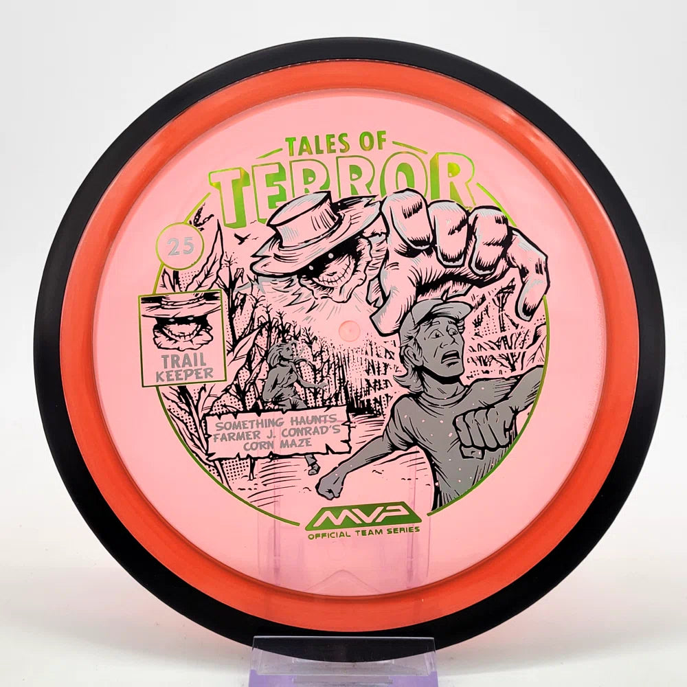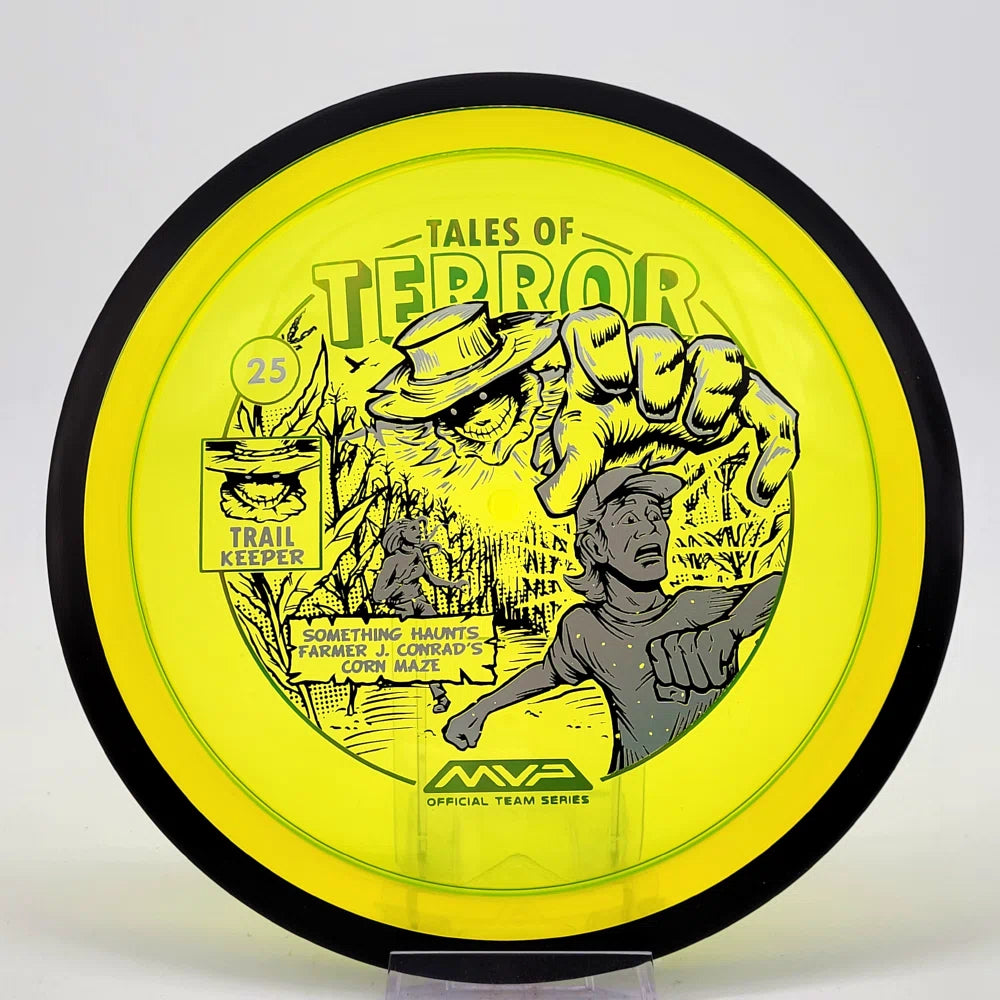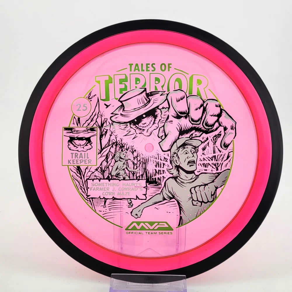 The highly requested fan favorite Proton Trail has returned! Green C Studio adorns this disc with a glimpse of the Trail Keeper haunting Conrad’s Corn Maze, a classic horror story. Excelling in hyzer-flip drives, turnovers, and straight shots, the Trail has become one of the most popular drivers in the MVP lineup that throwers of all power levels will find significant use for.