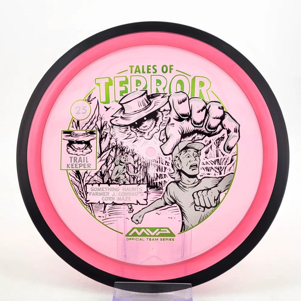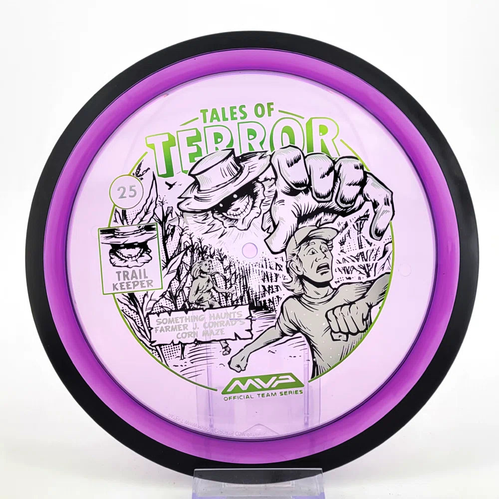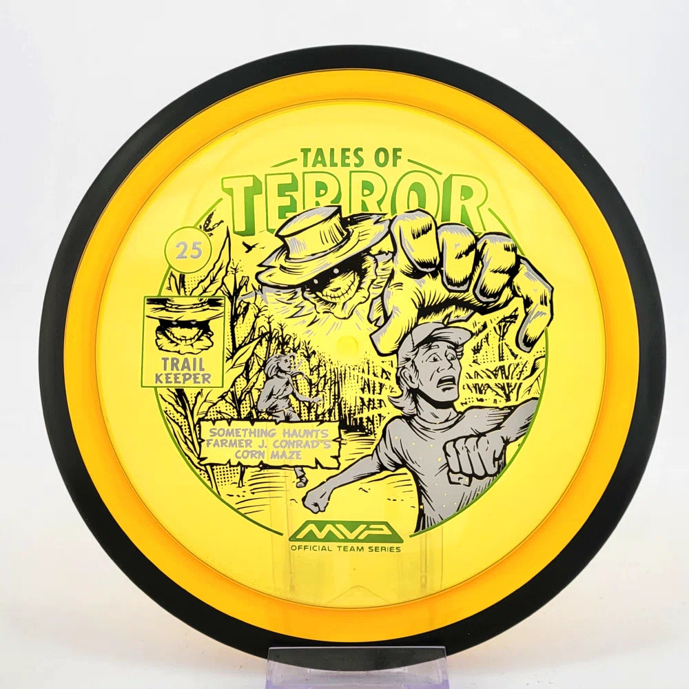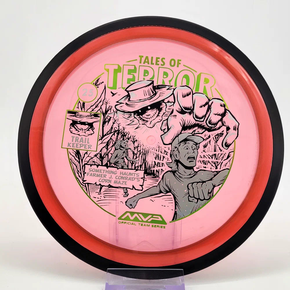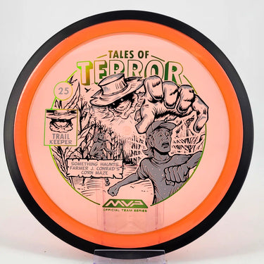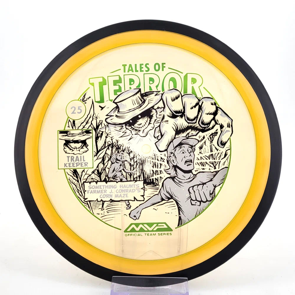 The highly requested fan favorite Proton Trail has returned! Green C Studio adorns this disc with a glimpse of the Trail Keeper haunting Conrad’s Corn Maze, a classic horror story. Excelling in hyzer-flip drives, turnovers, and straight shots, the Trail has become one of the most popular drivers in the MVP lineup that throwers of all power levels will find significant use for.
