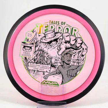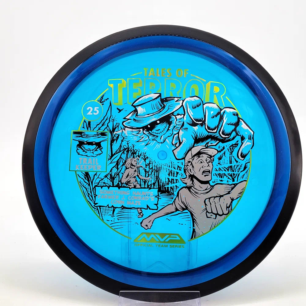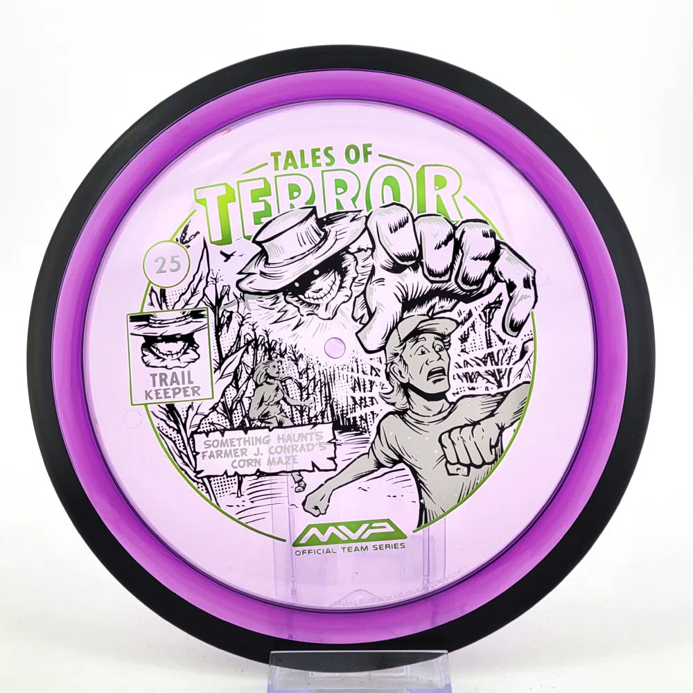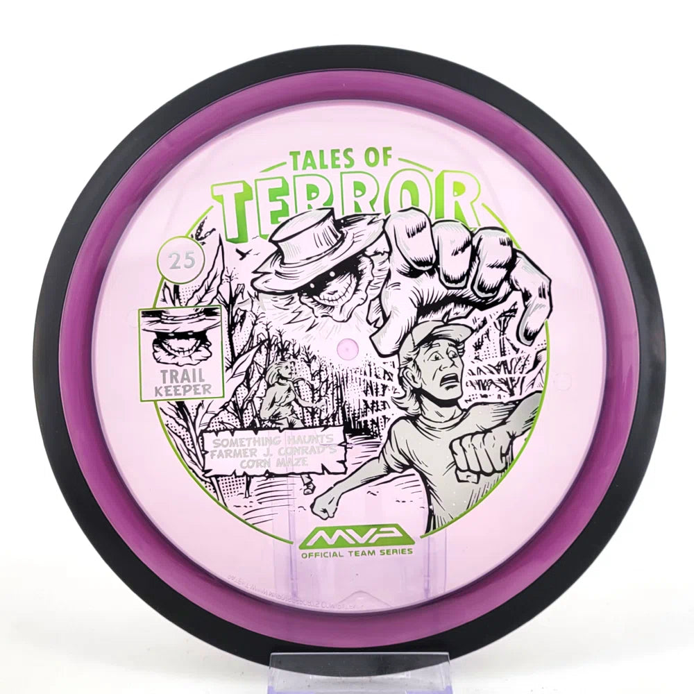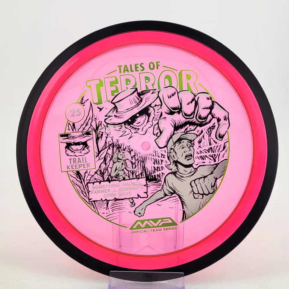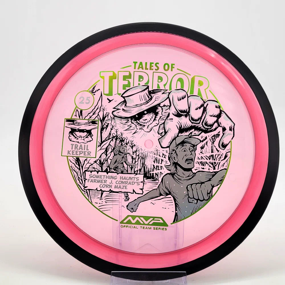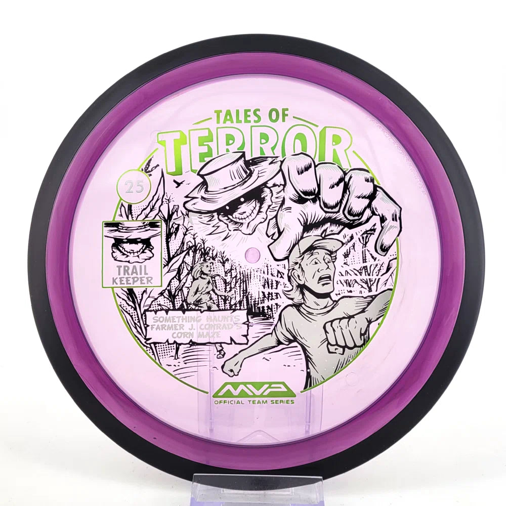 The highly requested fan favorite Proton Trail has returned! Green C Studio adorns this disc with a glimpse of the Trail Keeper haunting Conrad’s Corn Maze, a classic horror story. Excelling in hyzer-flip drives, turnovers, and straight shots, the Trail has become one of the most popular drivers in the MVP lineup that throwers of all power levels will find significant use for.