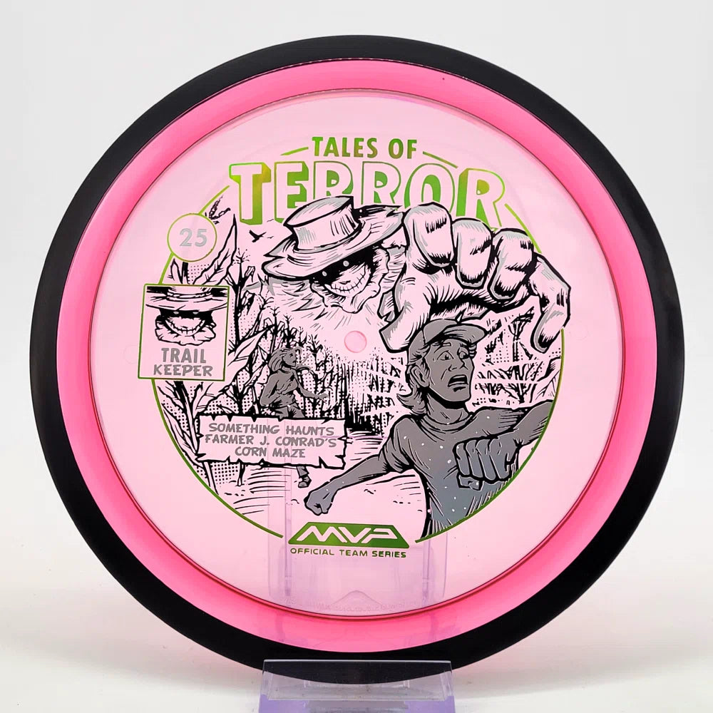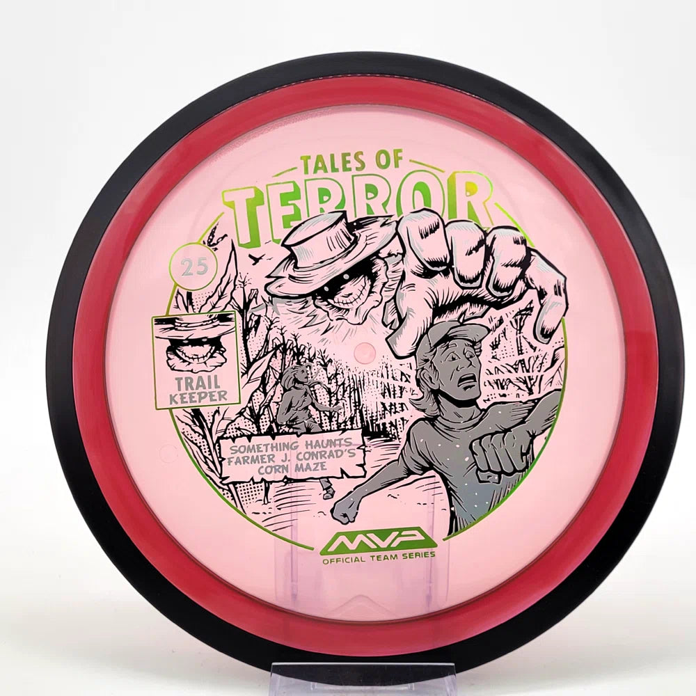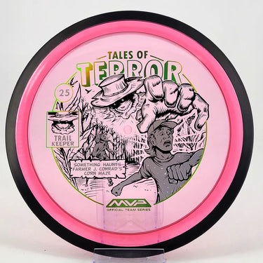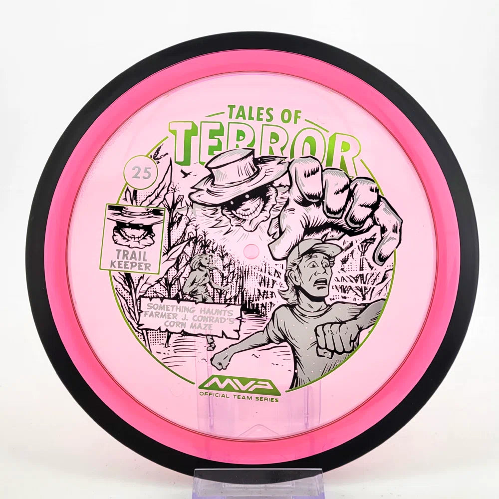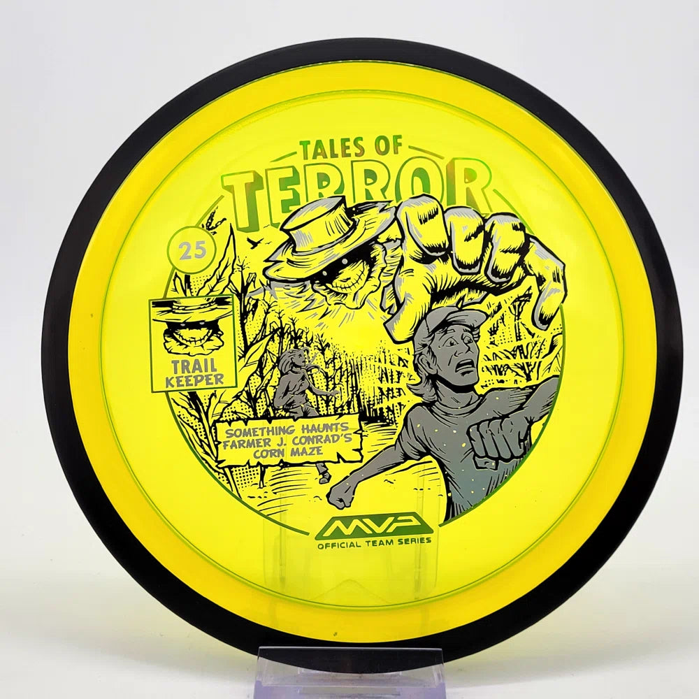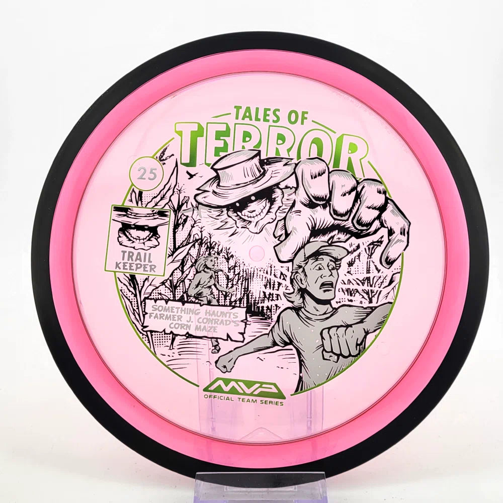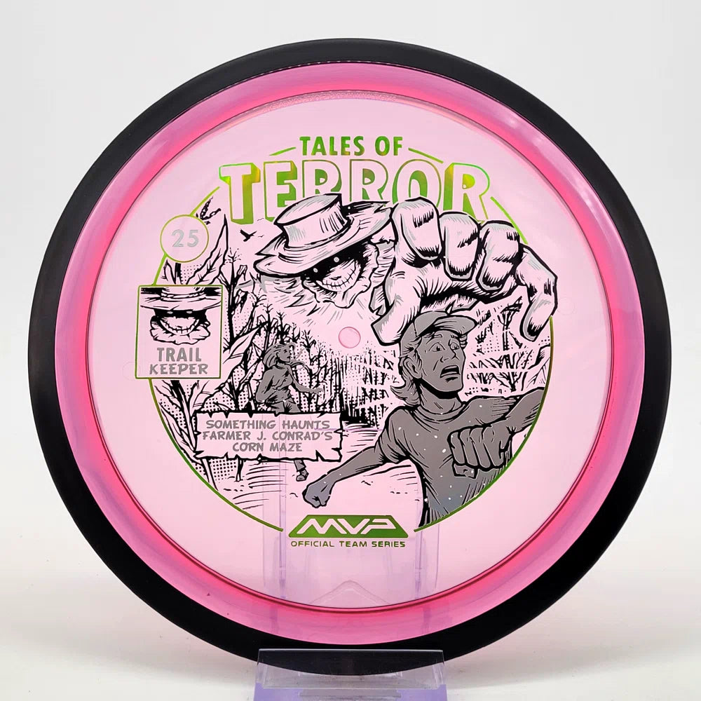 The highly requested fan favorite Proton Trail has returned! Green C Studio adorns this disc with a glimpse of the Trail Keeper haunting Conrad’s Corn Maze, a classic horror story. Excelling in hyzer-flip drives, turnovers, and straight shots, the Trail has become one of the most popular drivers in the MVP lineup that throwers of all power levels will find significant use for.