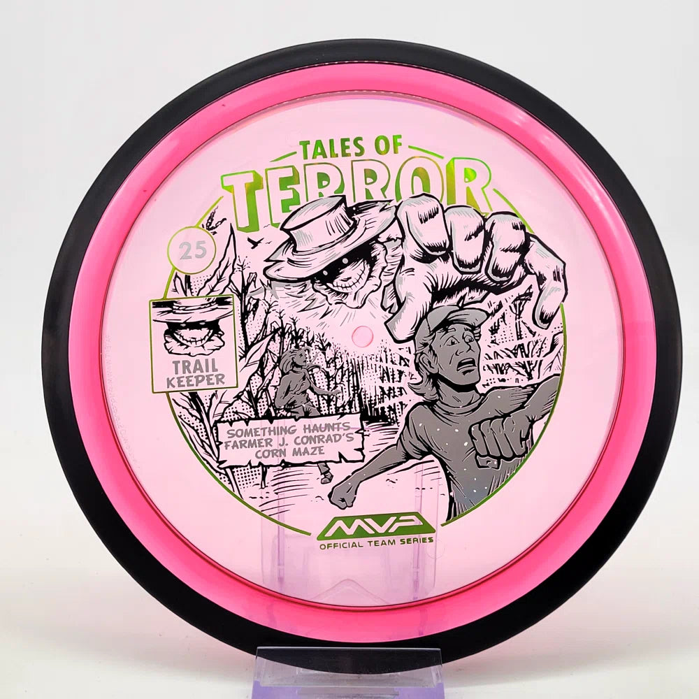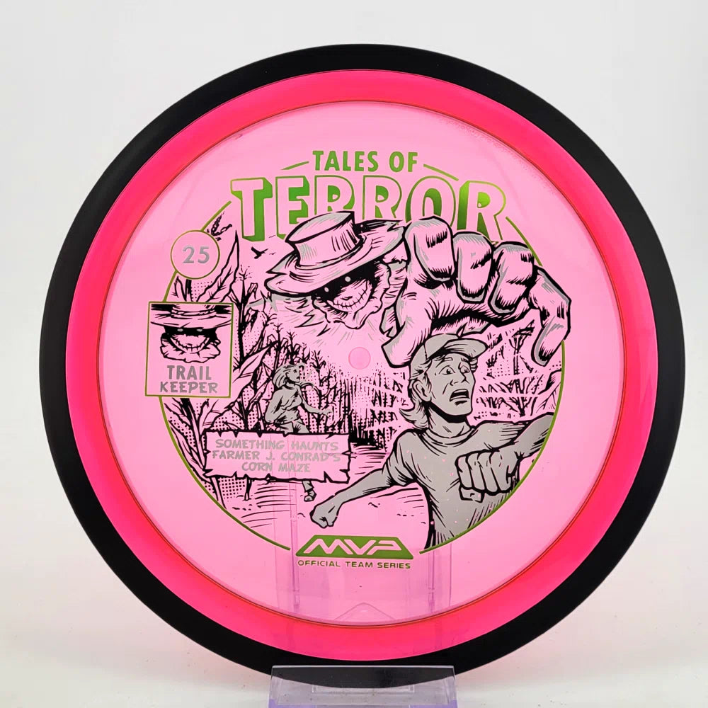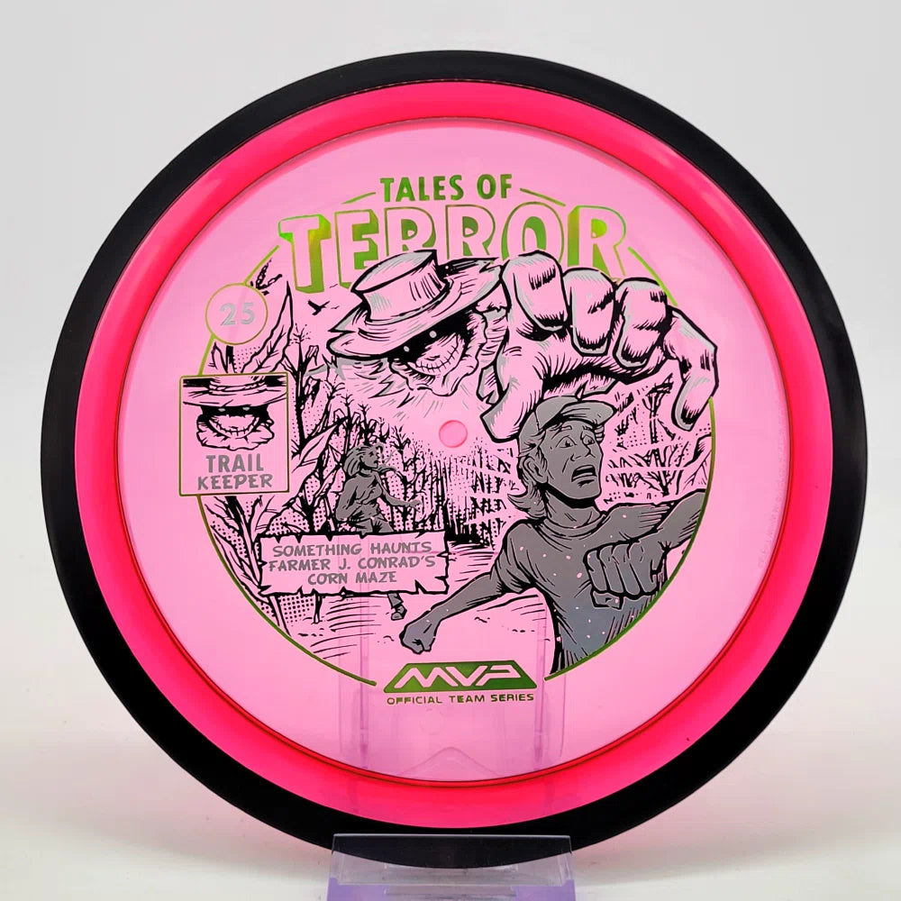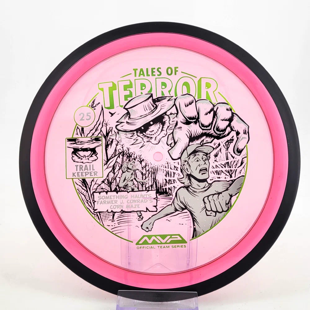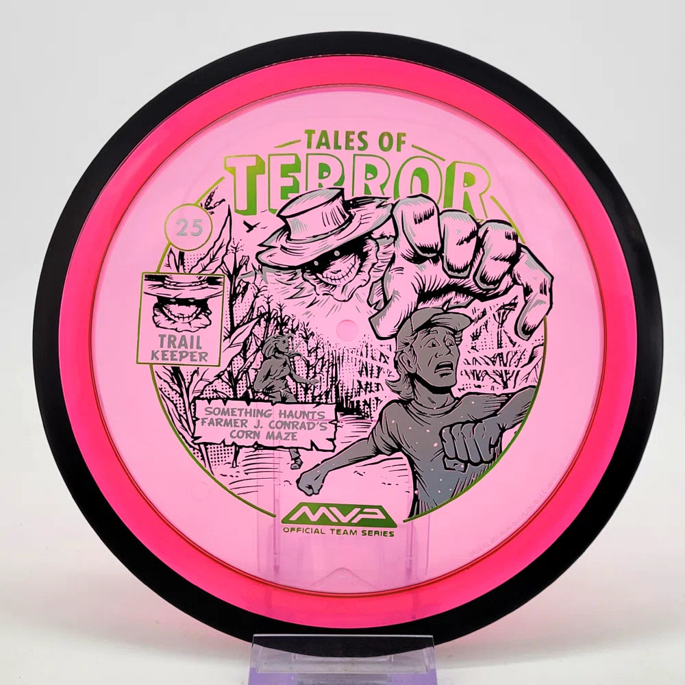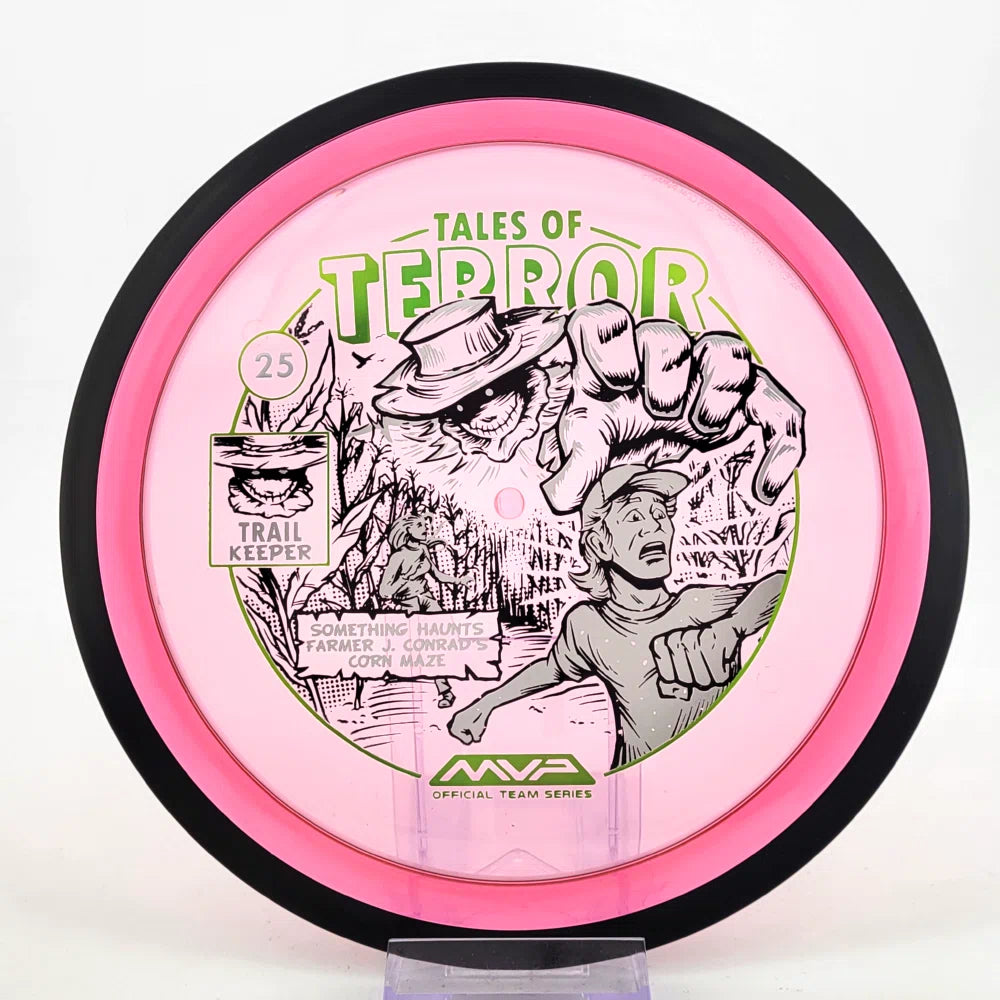 The highly requested fan favorite Proton Trail has returned! Green C Studio adorns this disc with a glimpse of the Trail Keeper haunting Conrad’s Corn Maze, a classic horror story. Excelling in hyzer-flip drives, turnovers, and straight shots, the Trail has become one of the most popular drivers in the MVP lineup that throwers of all power levels will find significant use for.