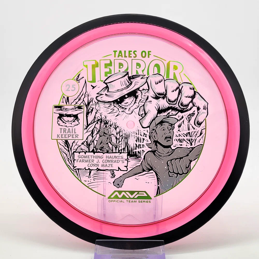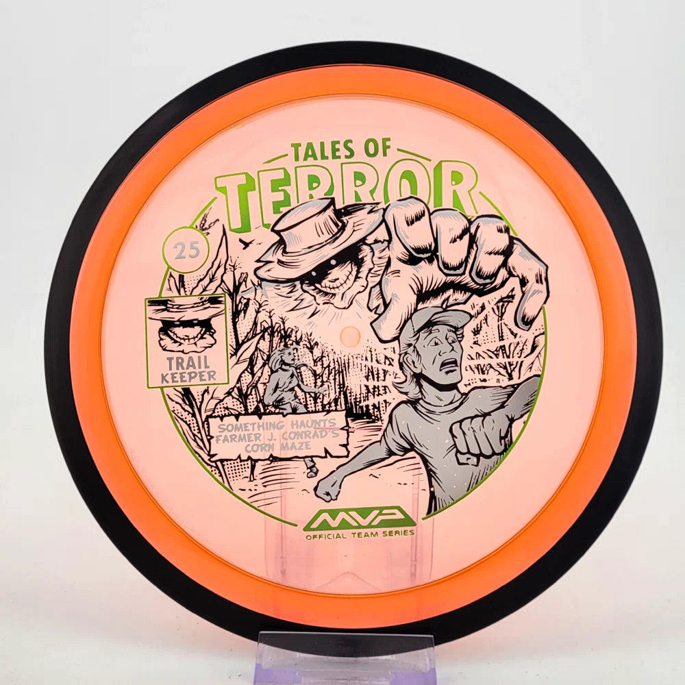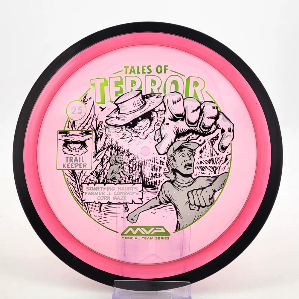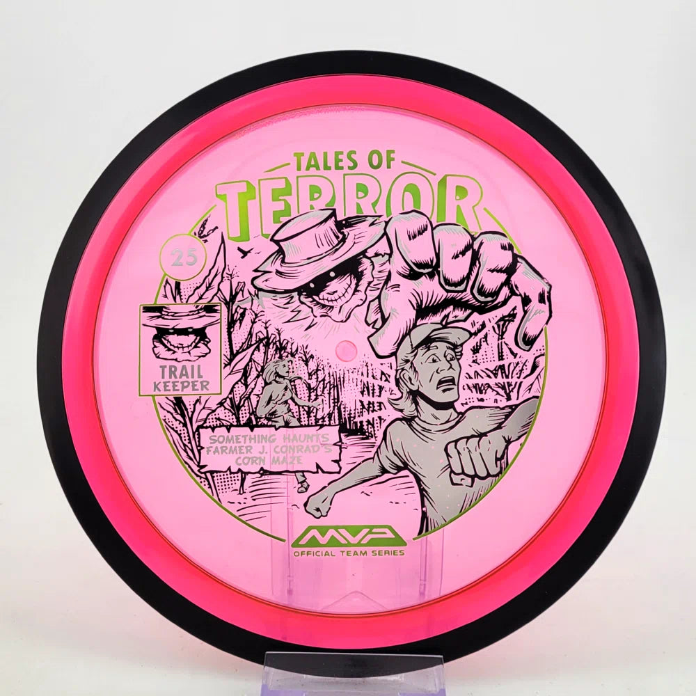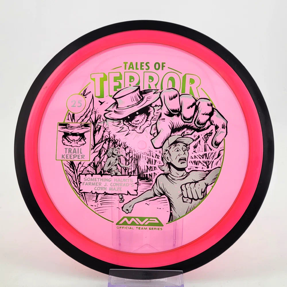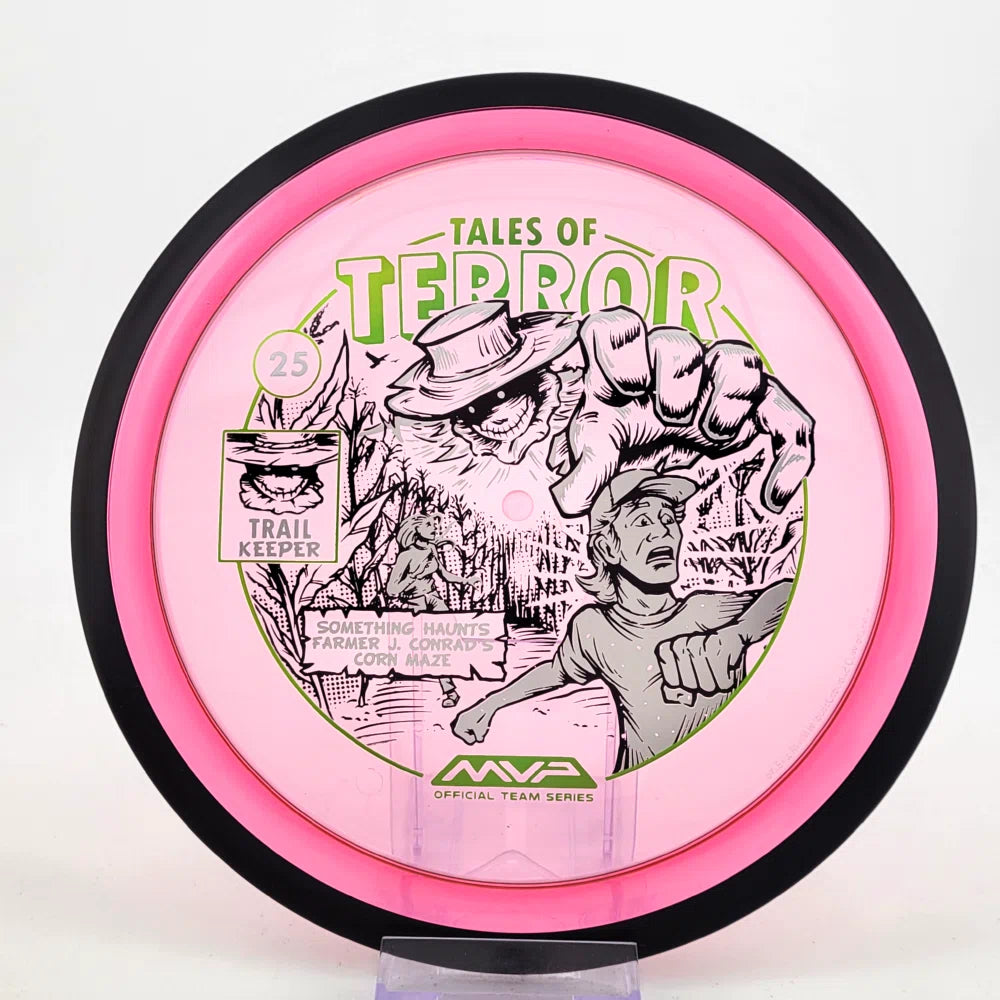 The highly requested fan favorite Proton Trail has returned! Green C Studio adorns this disc with a glimpse of the Trail Keeper haunting Conrad’s Corn Maze, a classic horror story. Excelling in hyzer-flip drives, turnovers, and straight shots, the Trail has become one of the most popular drivers in the MVP lineup that throwers of all power levels will find significant use for.